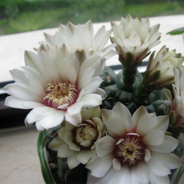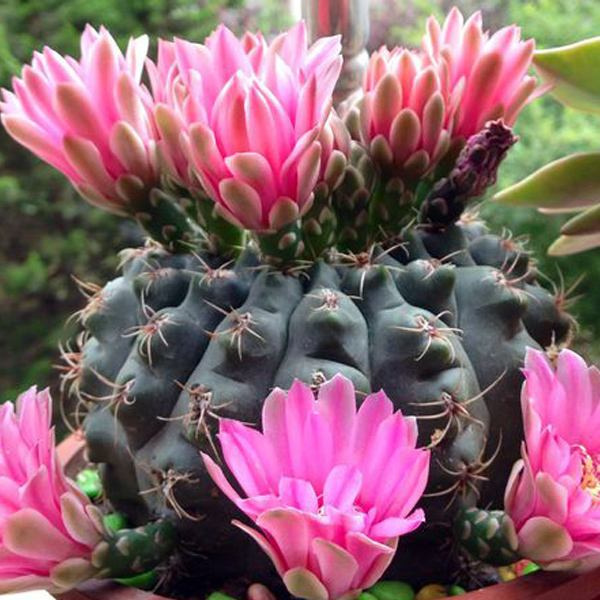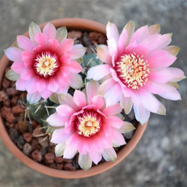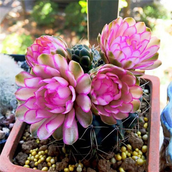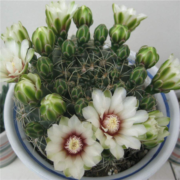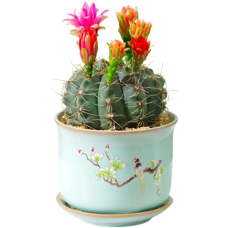 Цветущий кактус в горшке, суккулент для украшения офиса и дома, балконный цветок.