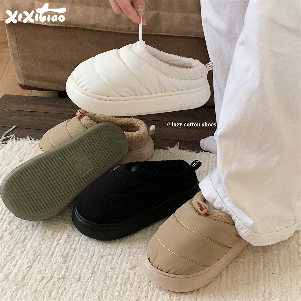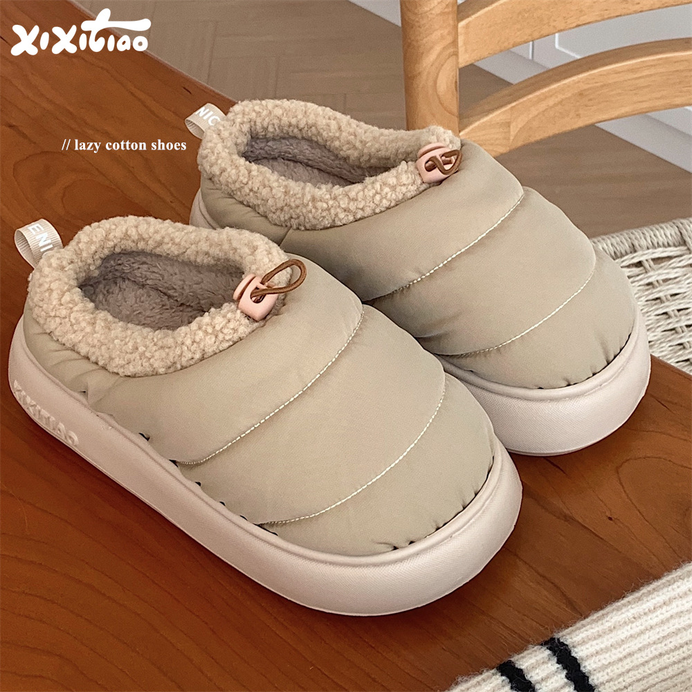 Модные домашние тапочки унисекс с мехом для пар, новая модель 2025 года, теплые зимние хлопковые тапочки для студентов.