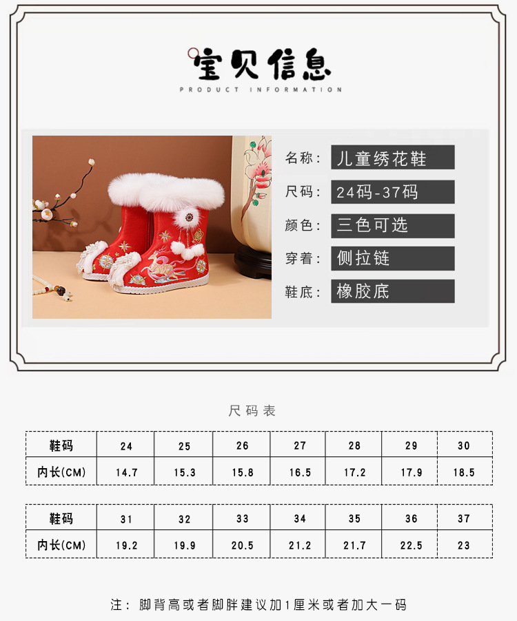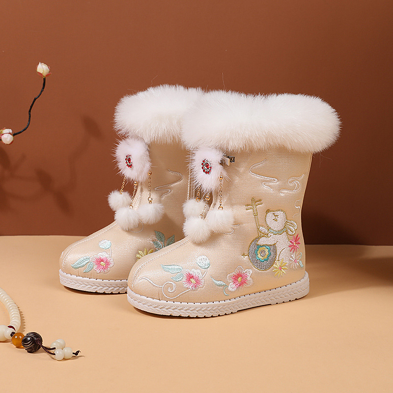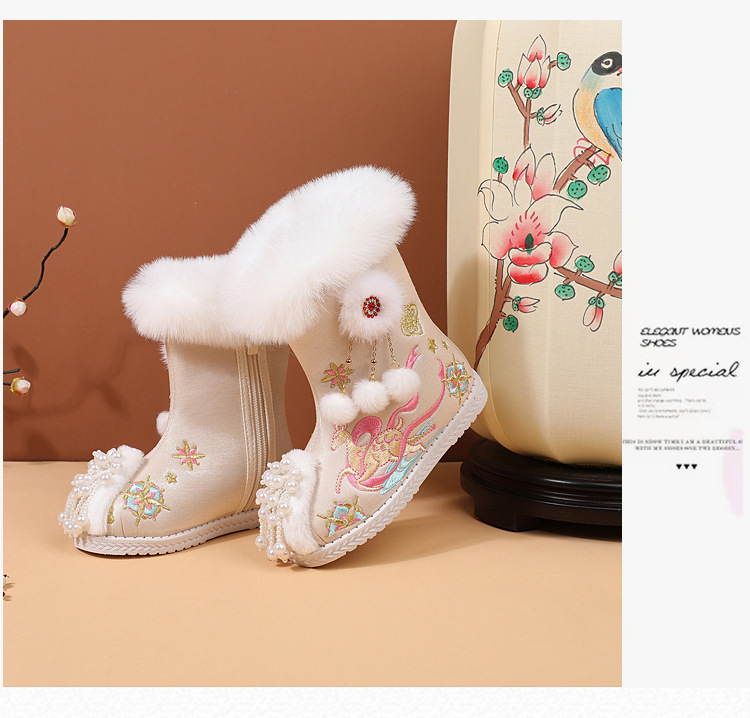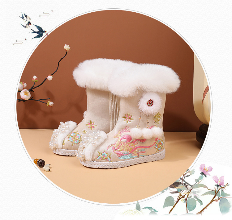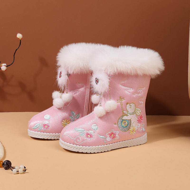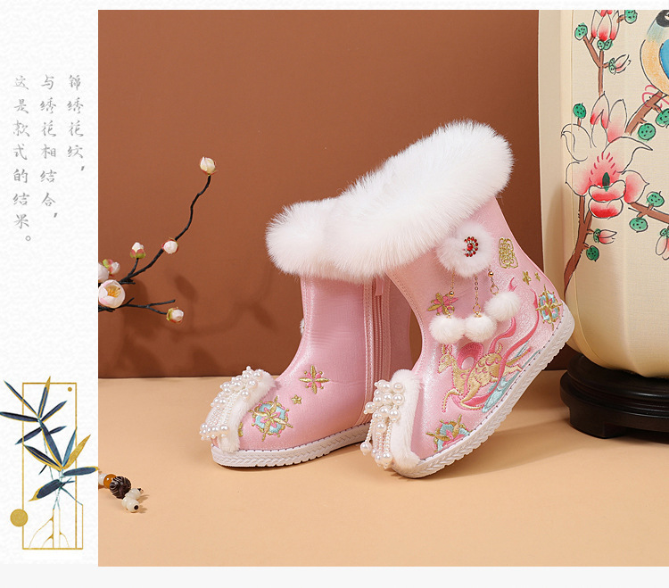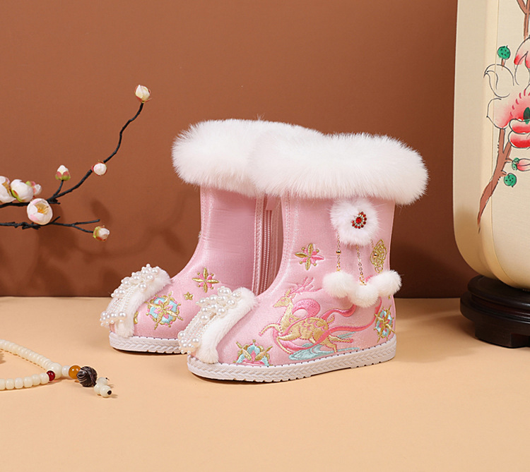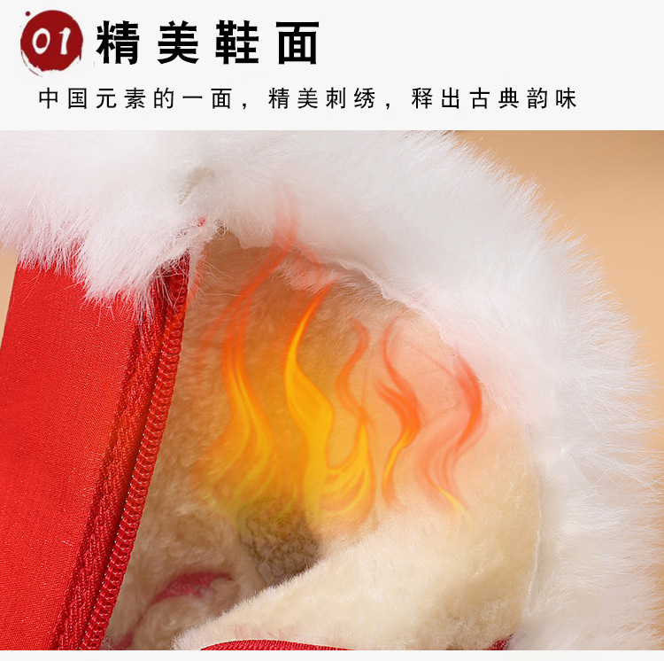 Зимняя утолщение обуви для девочек Hanfu с новогодней обувью для девочек в китайском стиле красная детская вышитая обувь теплая хлопчатобумажная обувь