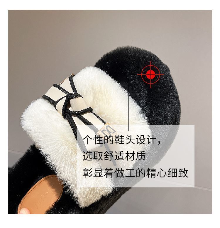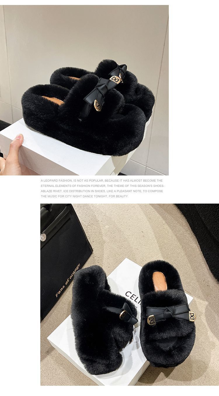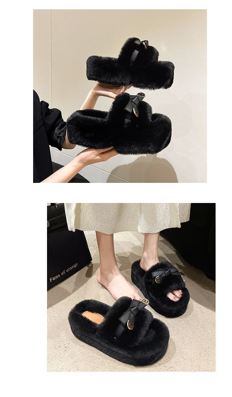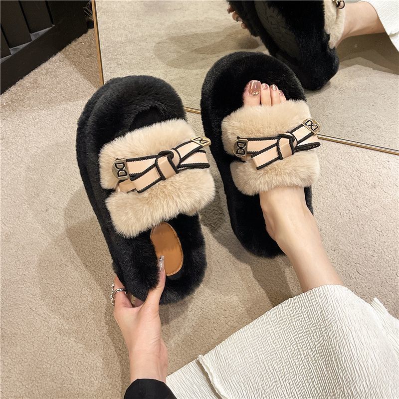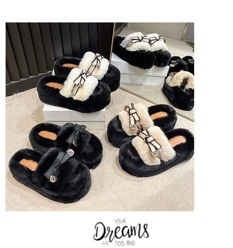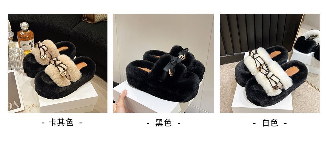 Модные и универсальные меховые тапочки для женщин, подходящие для ношения на улице, новая модель 2025 года, на толстой подошве, увеличивающие рост, милые плюшевые, осенне-зимние домашние хлопковые тапочки, трендовые.