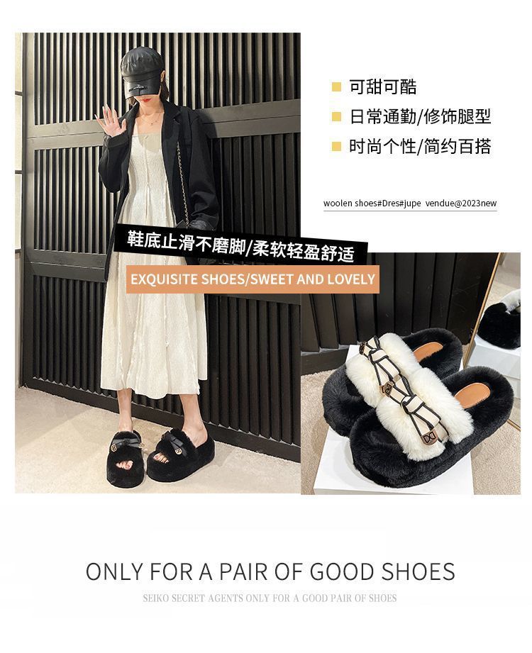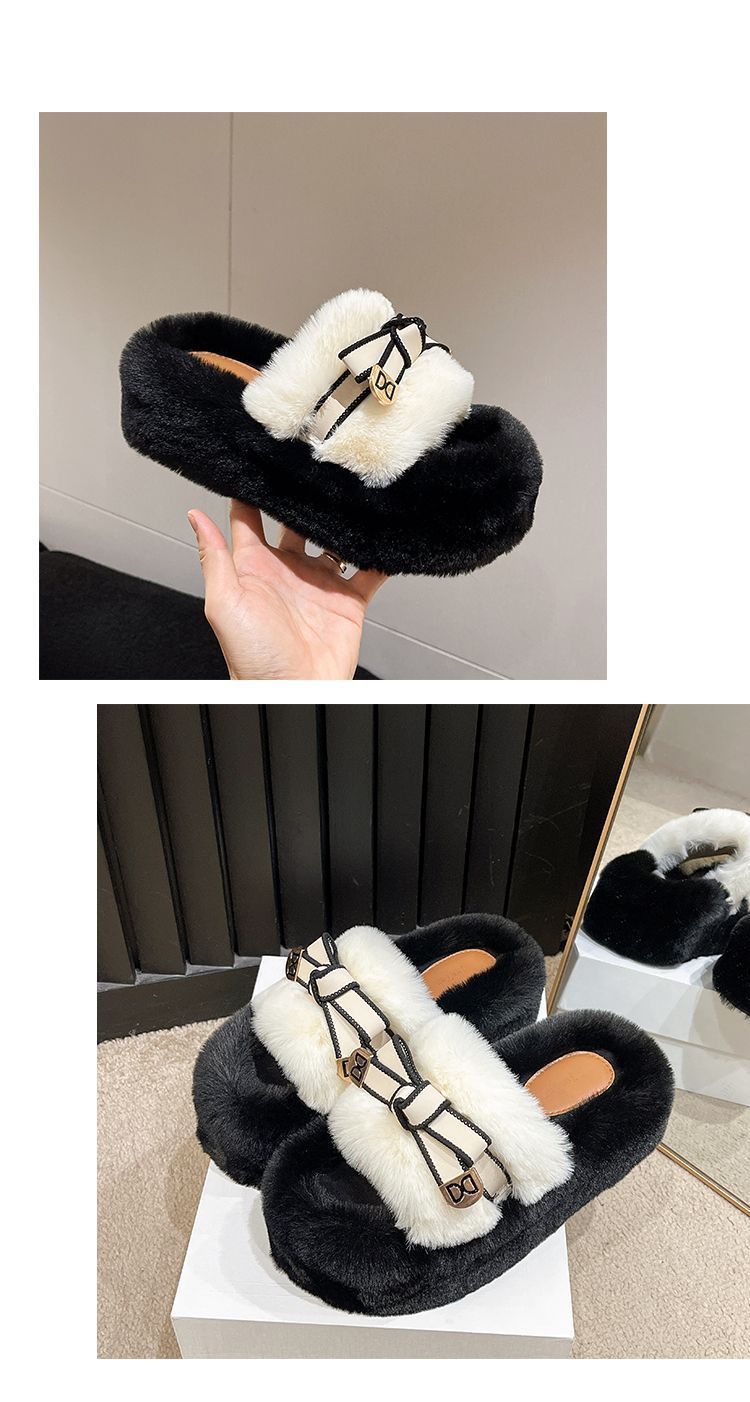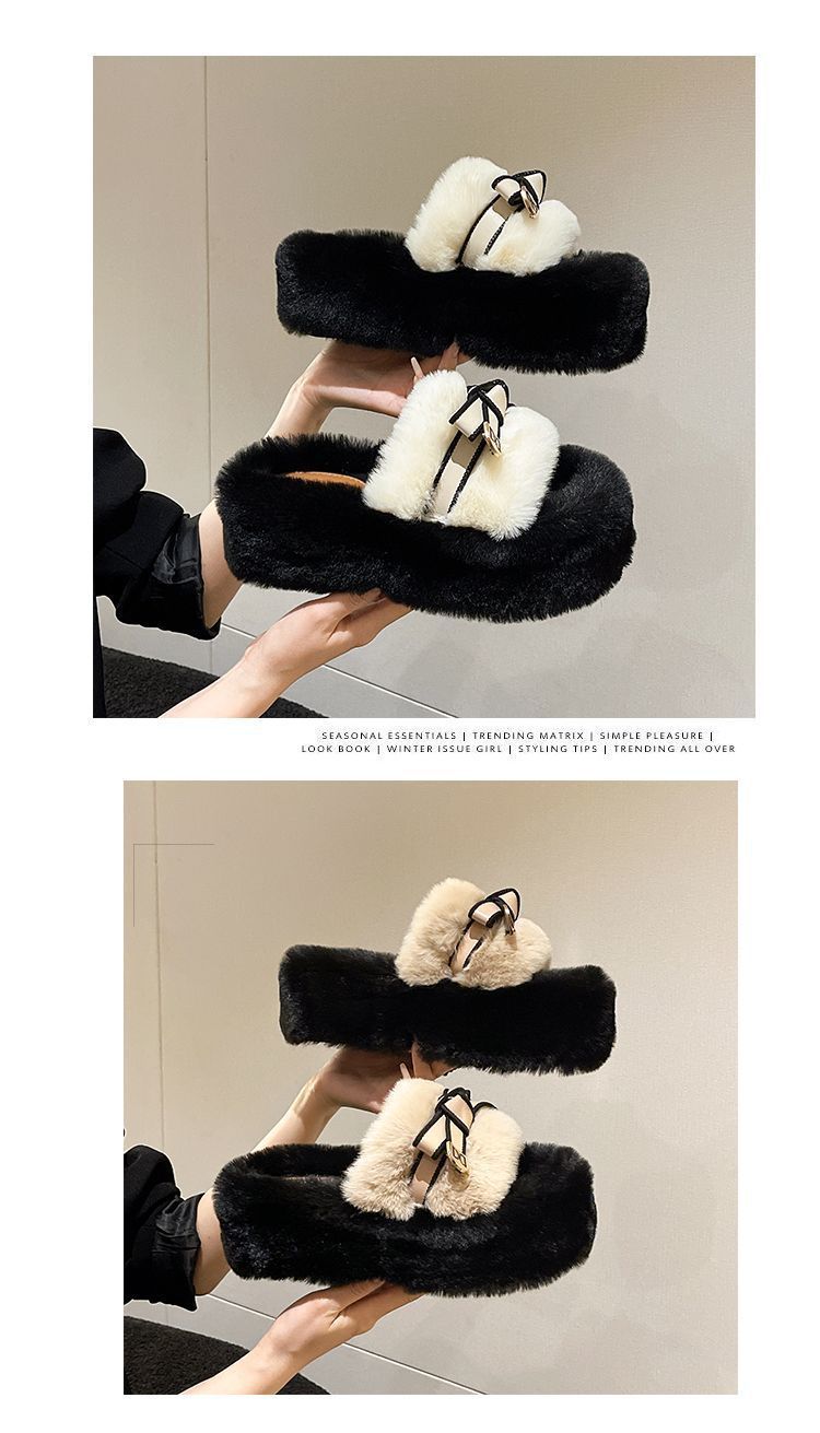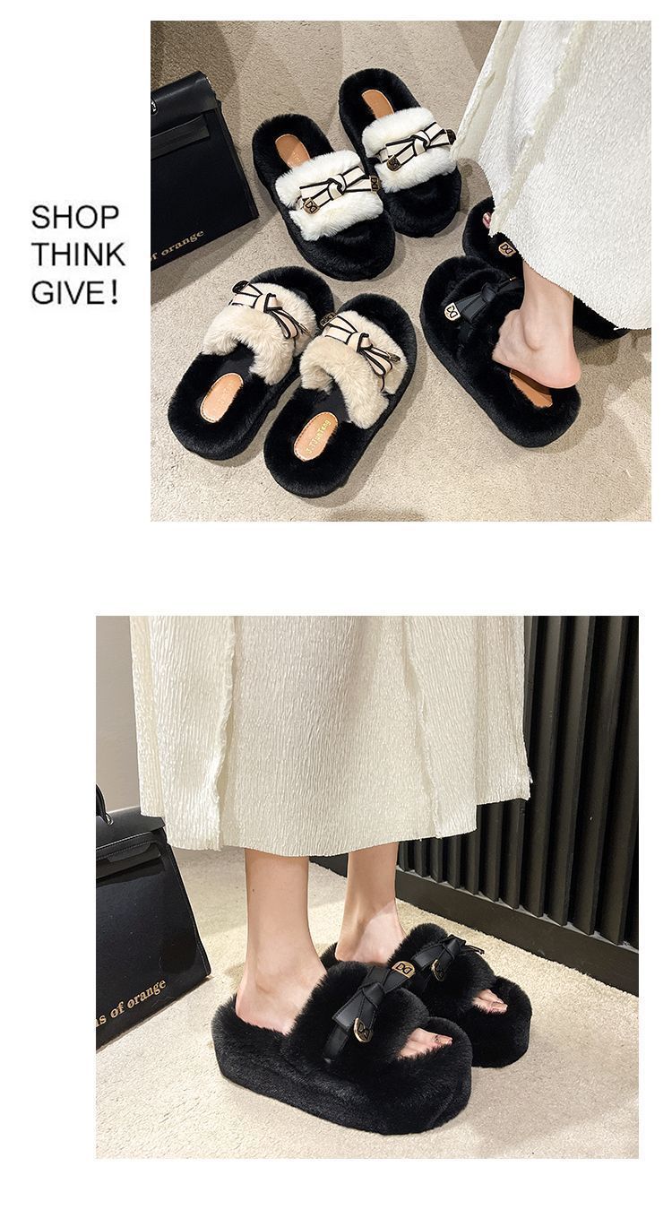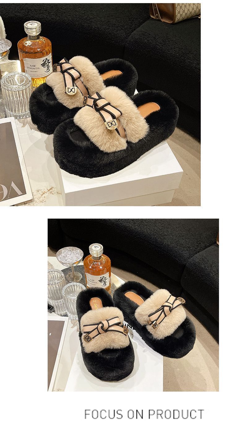 Модные и универсальные меховые тапочки для женщин, подходящие для ношения на улице, новая модель 2025 года, на толстой подошве, увеличивающие рост, милые плюшевые, осенне-зимние домашние хлопковые тапочки, трендовые.