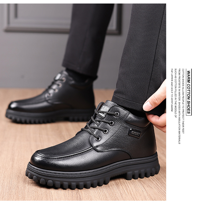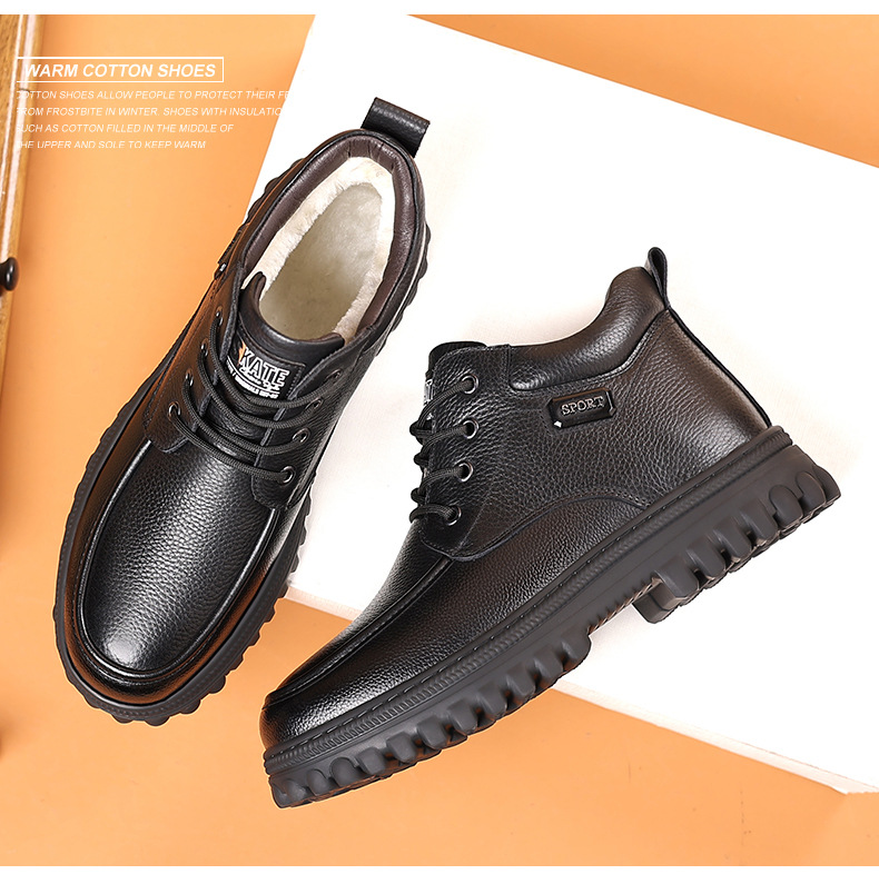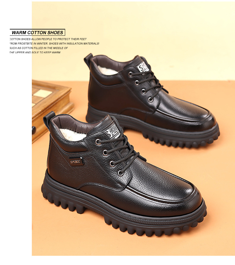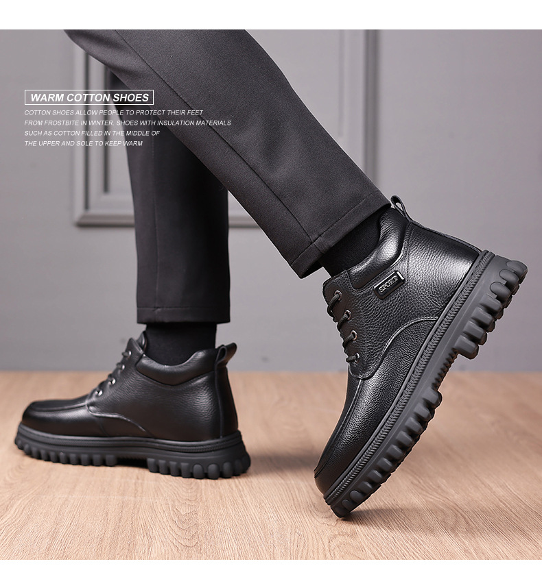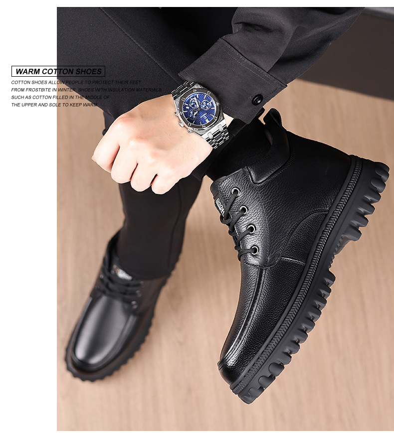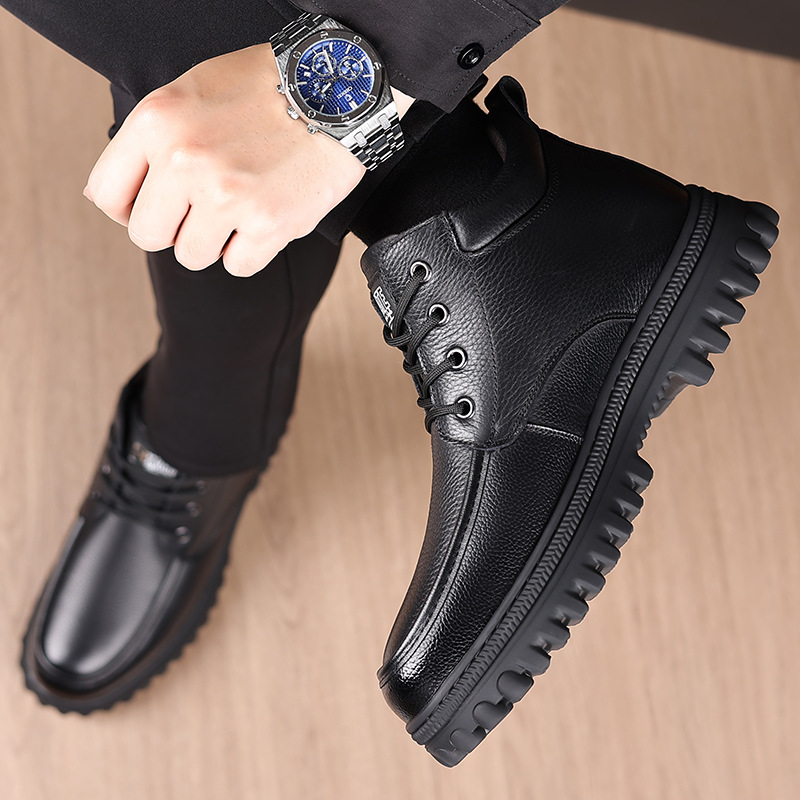 Зимние 2024 новые мужские кожаные сапоги мужские высокие багги с толстым дном хлопчатобумажные ботинки плюс бархат теплые снежные сапоги Мартин сапоги оптом