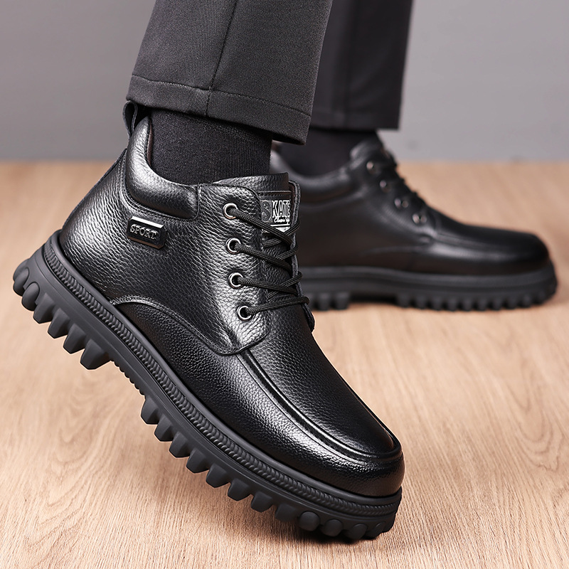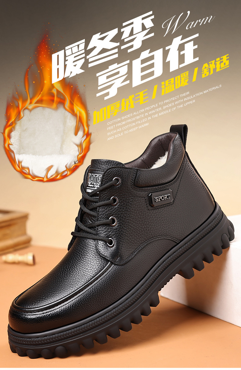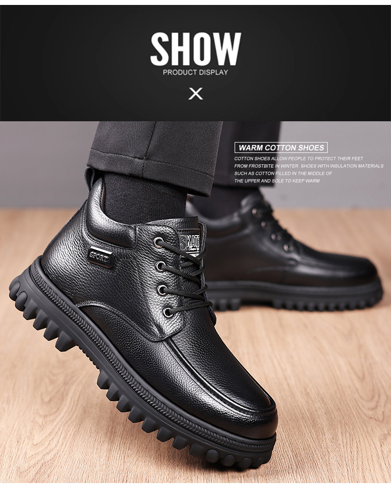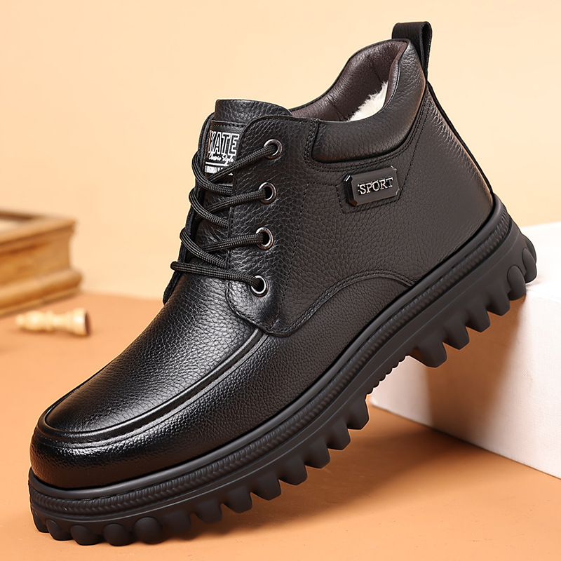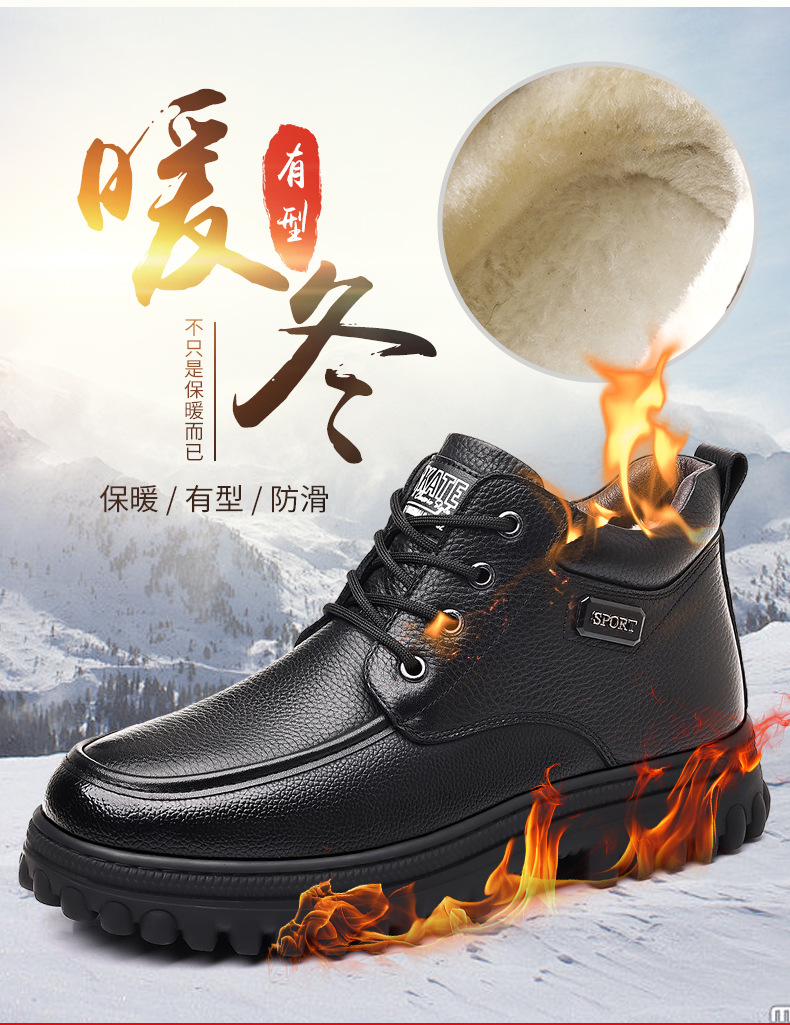 Зимние 2024 новые мужские кожаные сапоги мужские высокие багги с толстым дном хлопчатобумажные ботинки плюс бархат теплые снежные сапоги Мартин сапоги оптом
