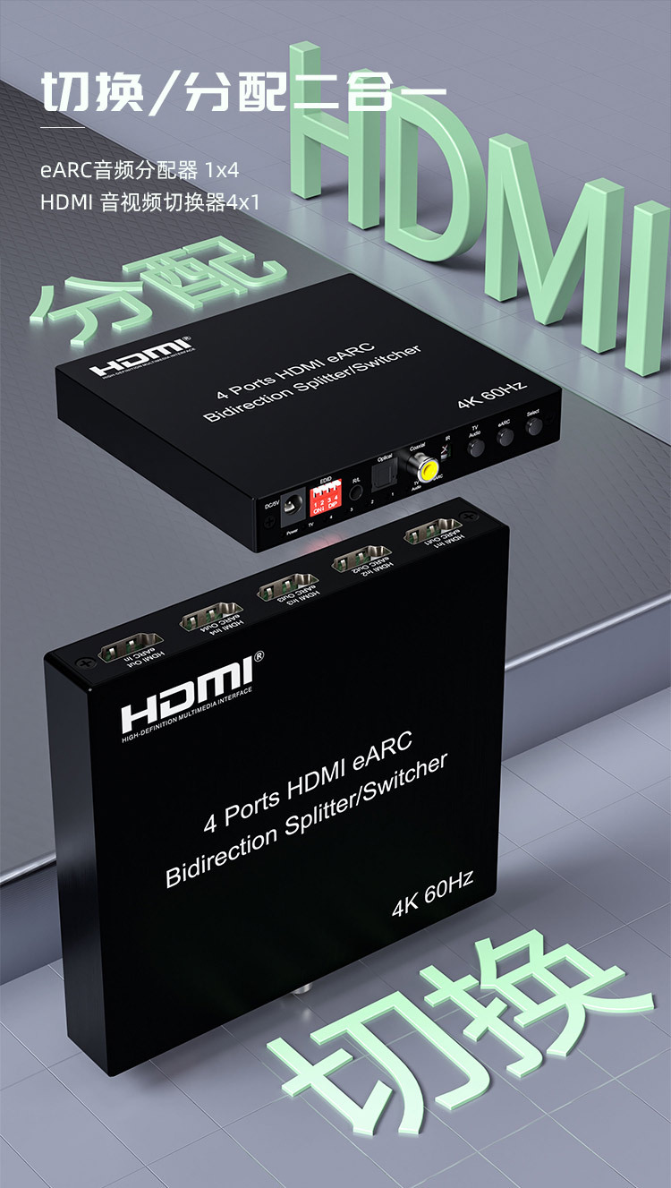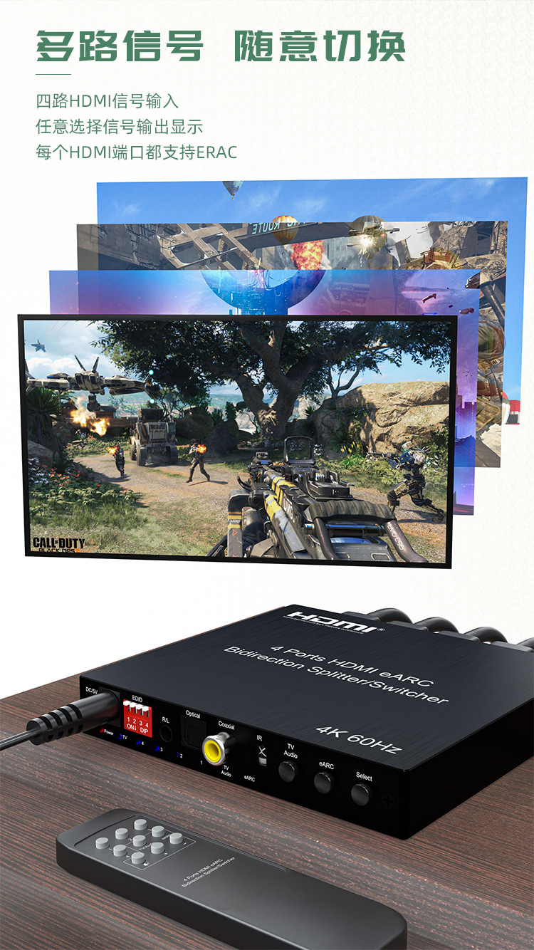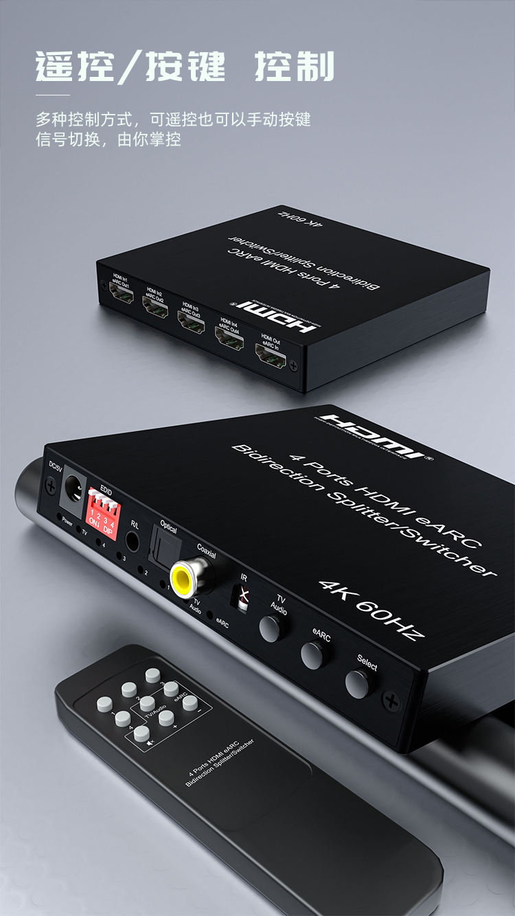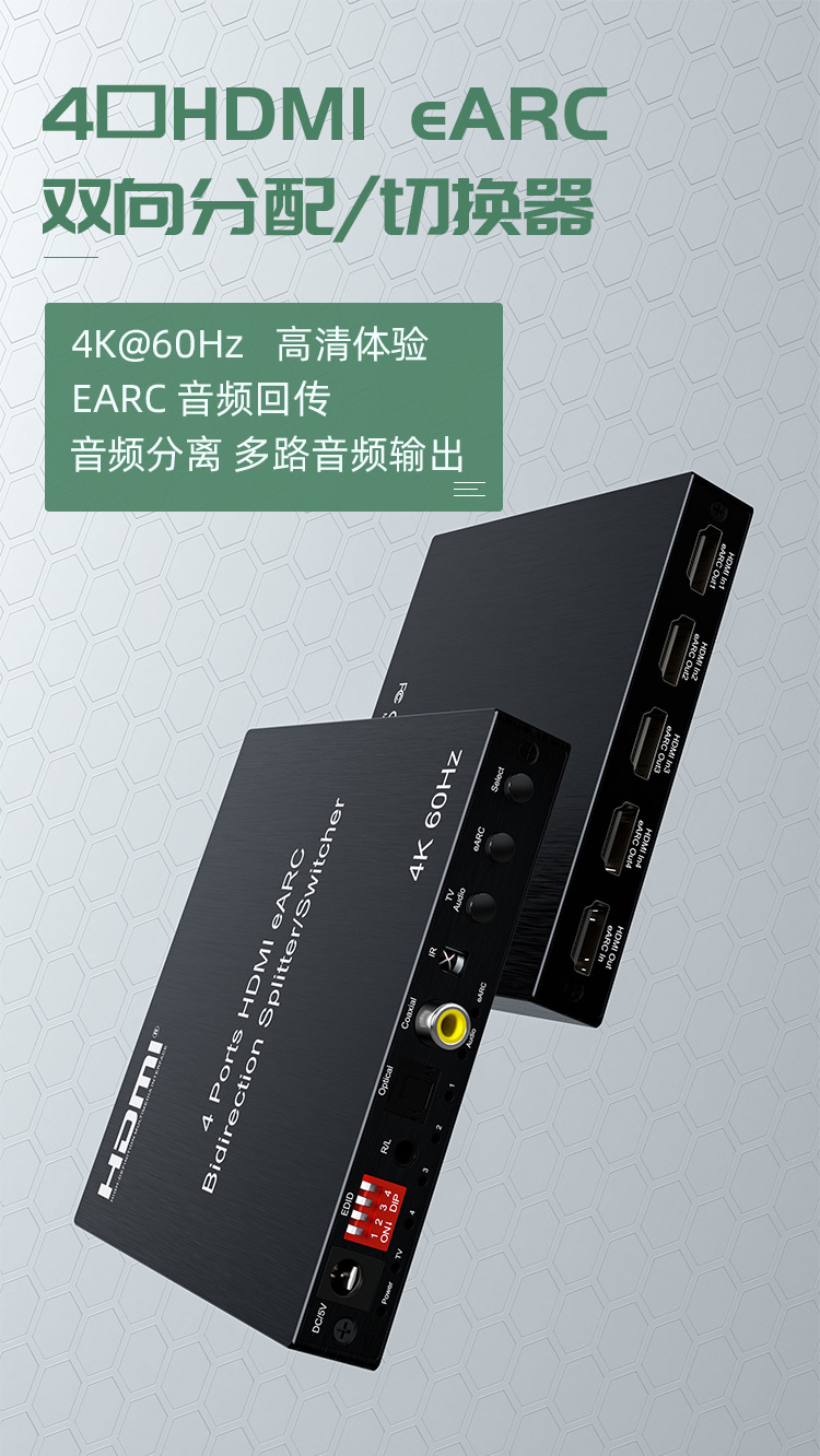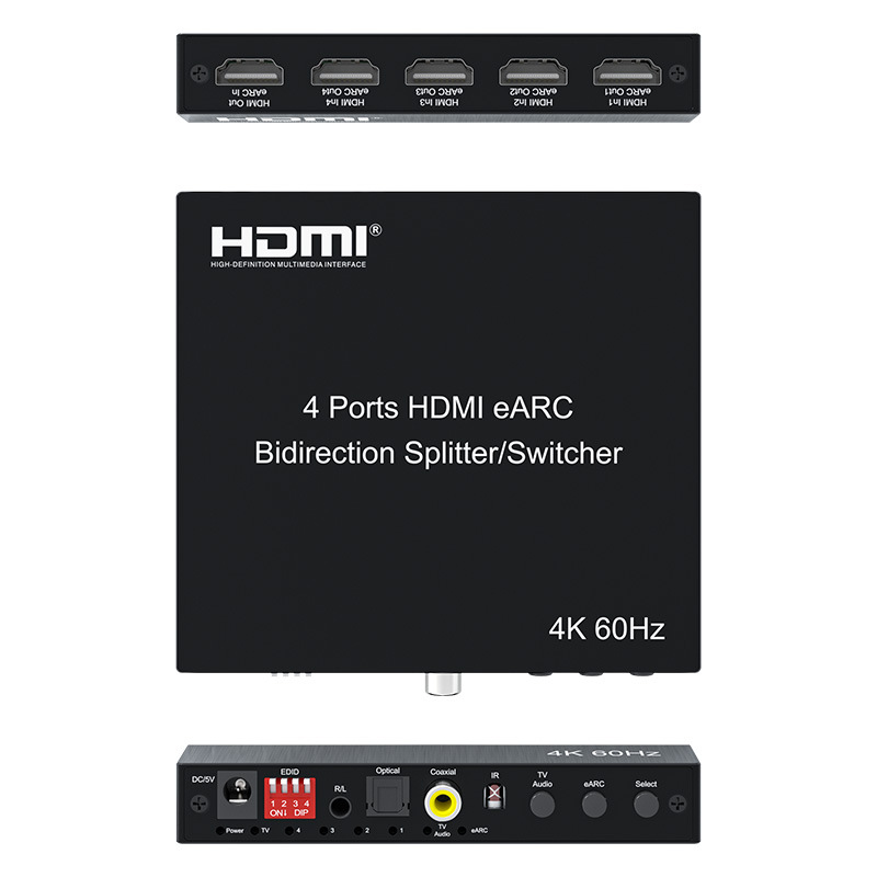 Производитель версии 2.0 4K @ 60Hz 4-ходовой HDMI eARC двухсторонний распределительный переключатель 4-канальный распределитель eARC коаксиальный