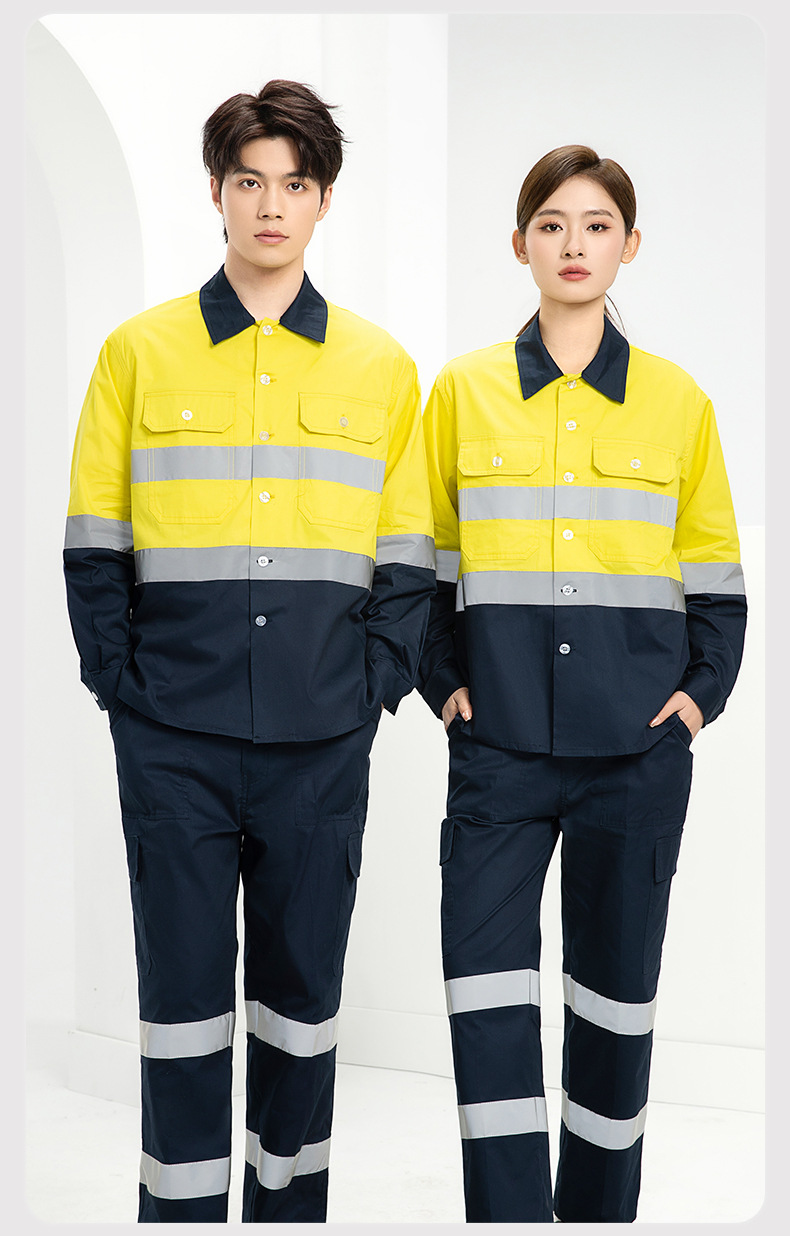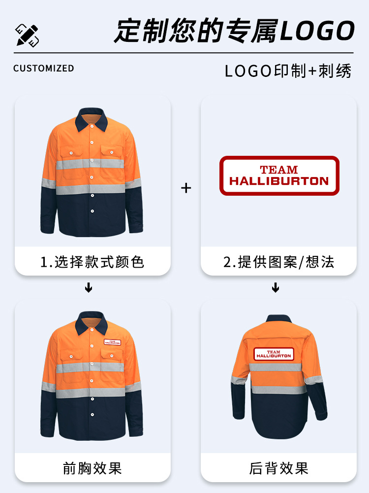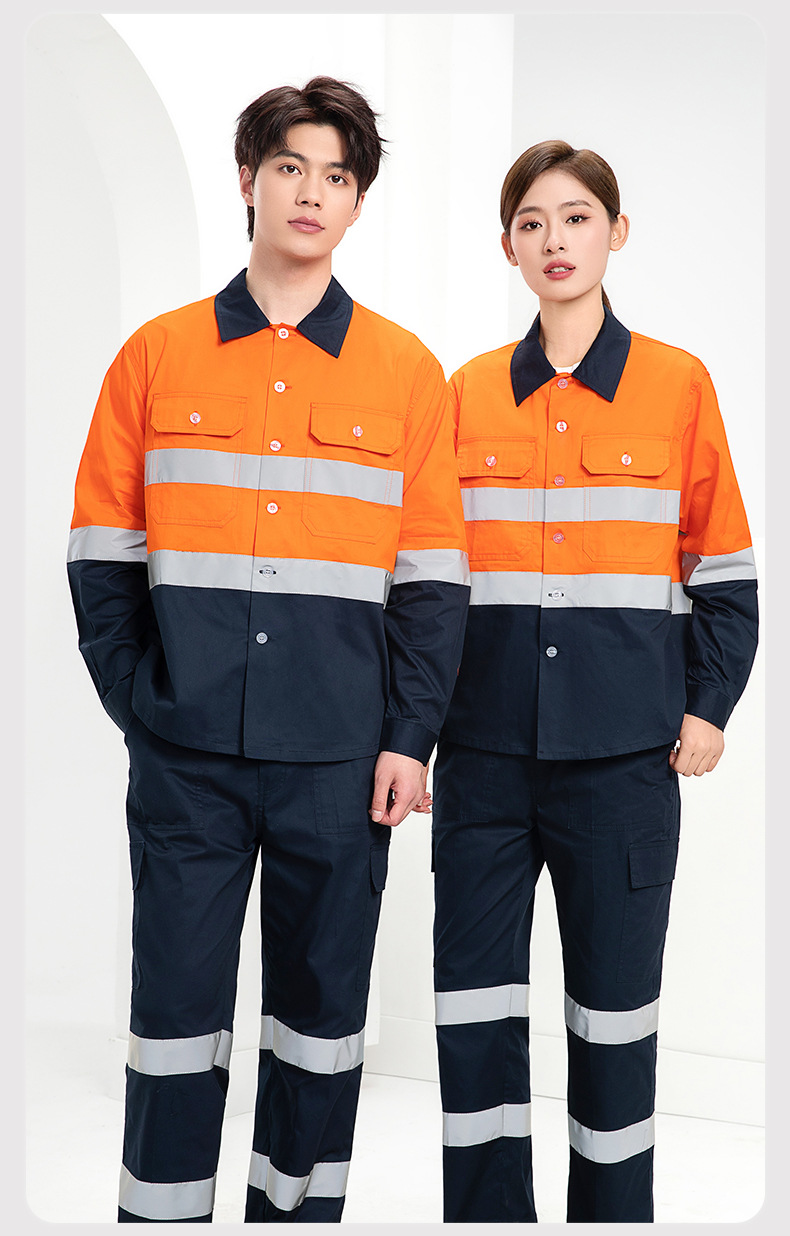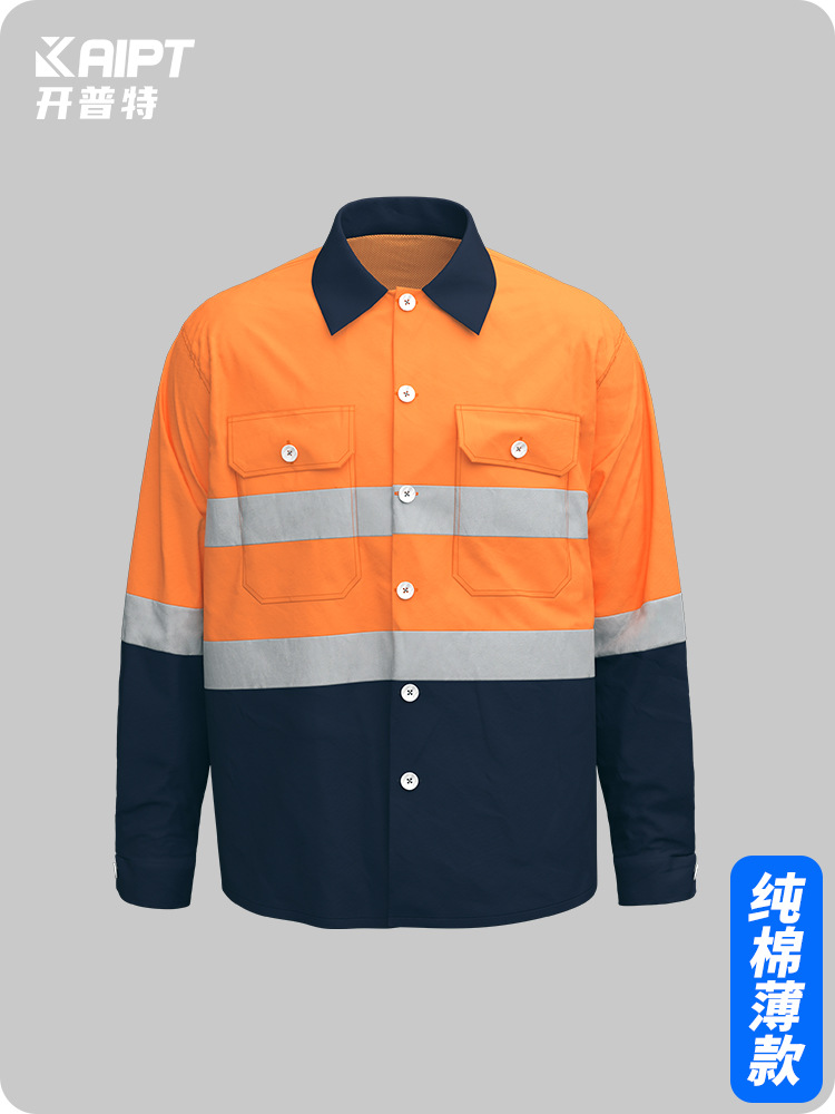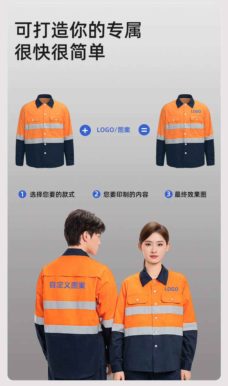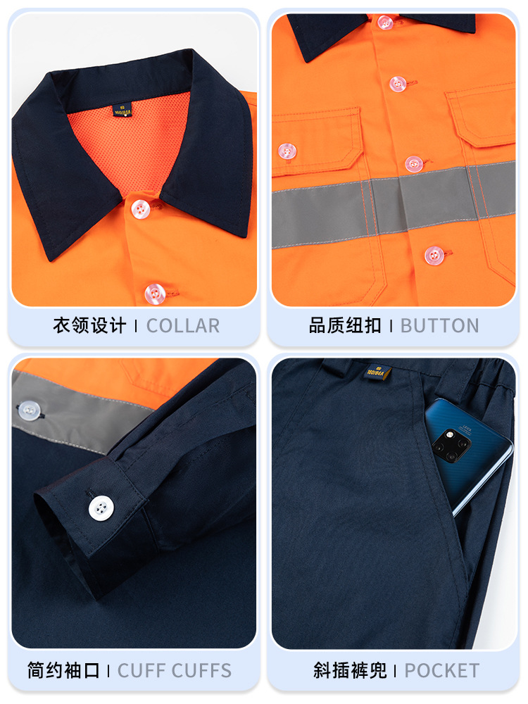 Трансграничная летняя тонкая рабочая одежда с длинными рукавами, флуоресцентная светоотражающая полоска, рабочая одежда, мужская печатная молния, воротник-стойка, заводская одежда по индивидуальному заказу