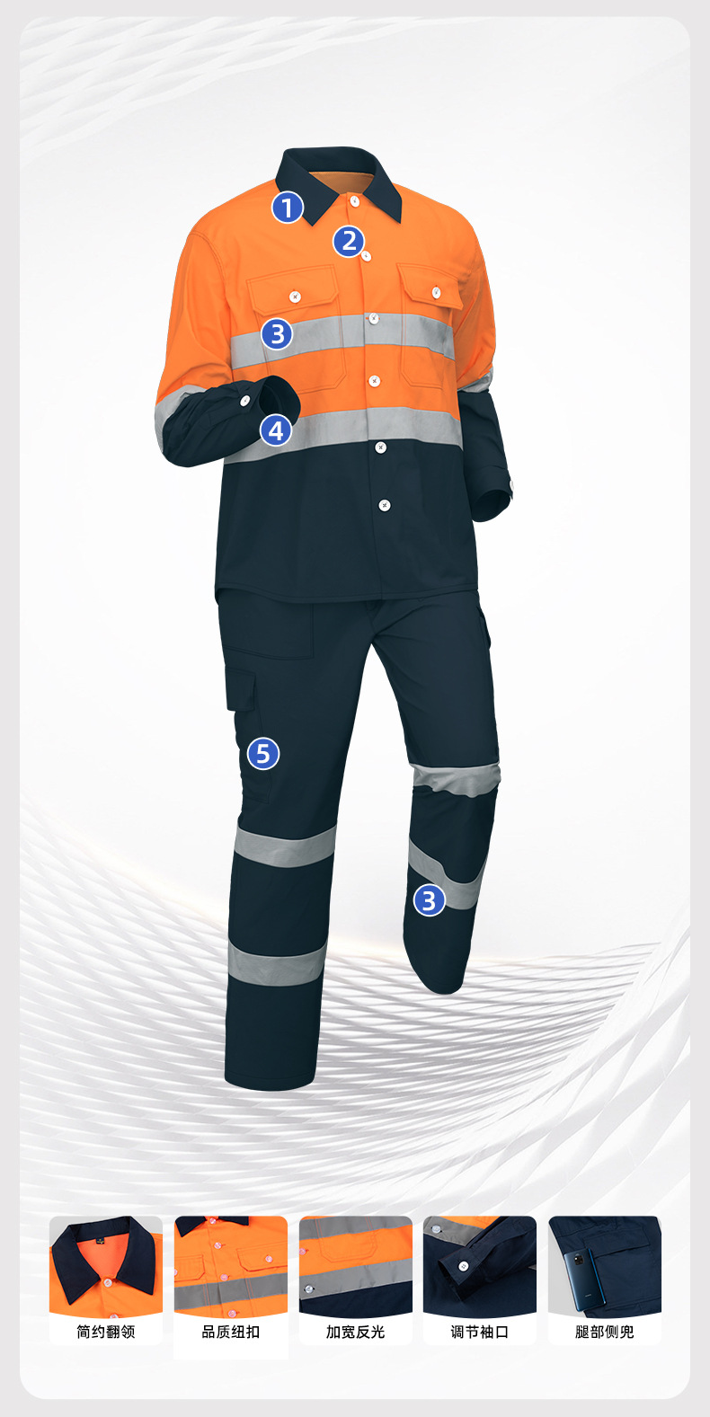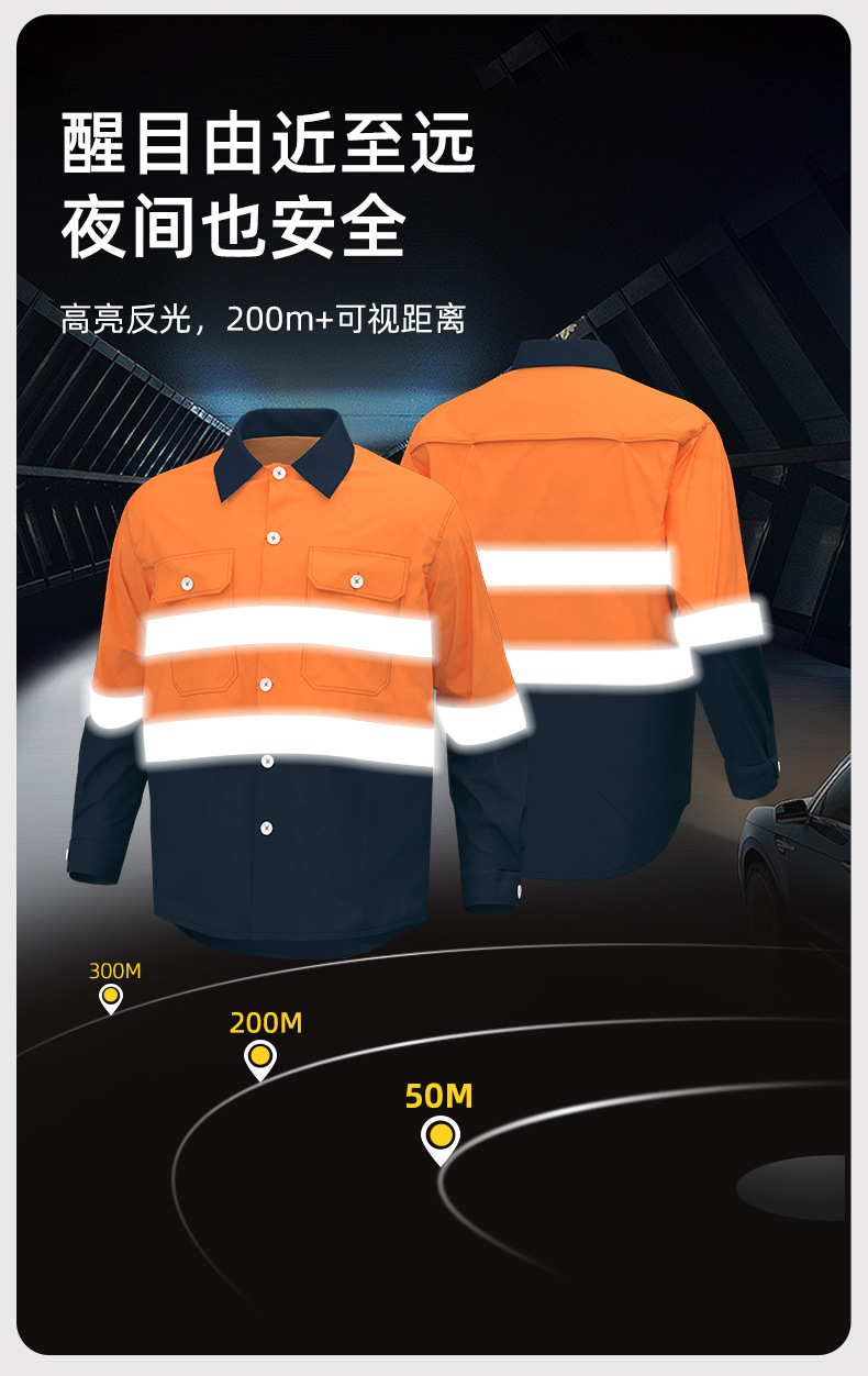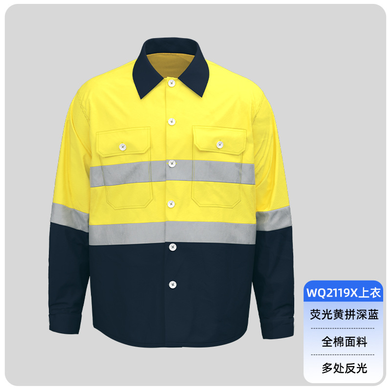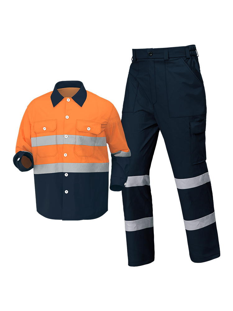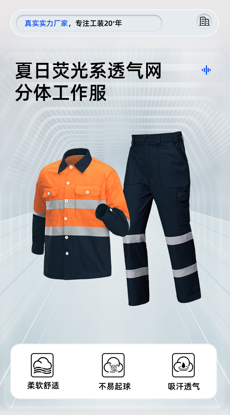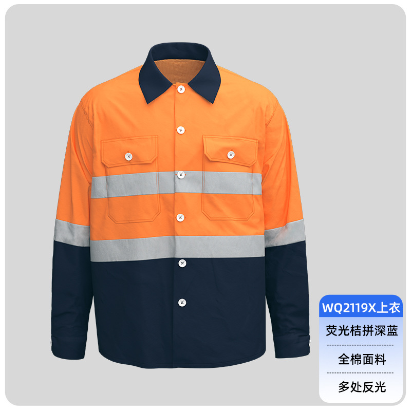 Трансграничная летняя тонкая рабочая одежда с длинными рукавами, флуоресцентная светоотражающая полоска, рабочая одежда, мужская печатная молния, воротник-стойка, заводская одежда по индивидуальному заказу