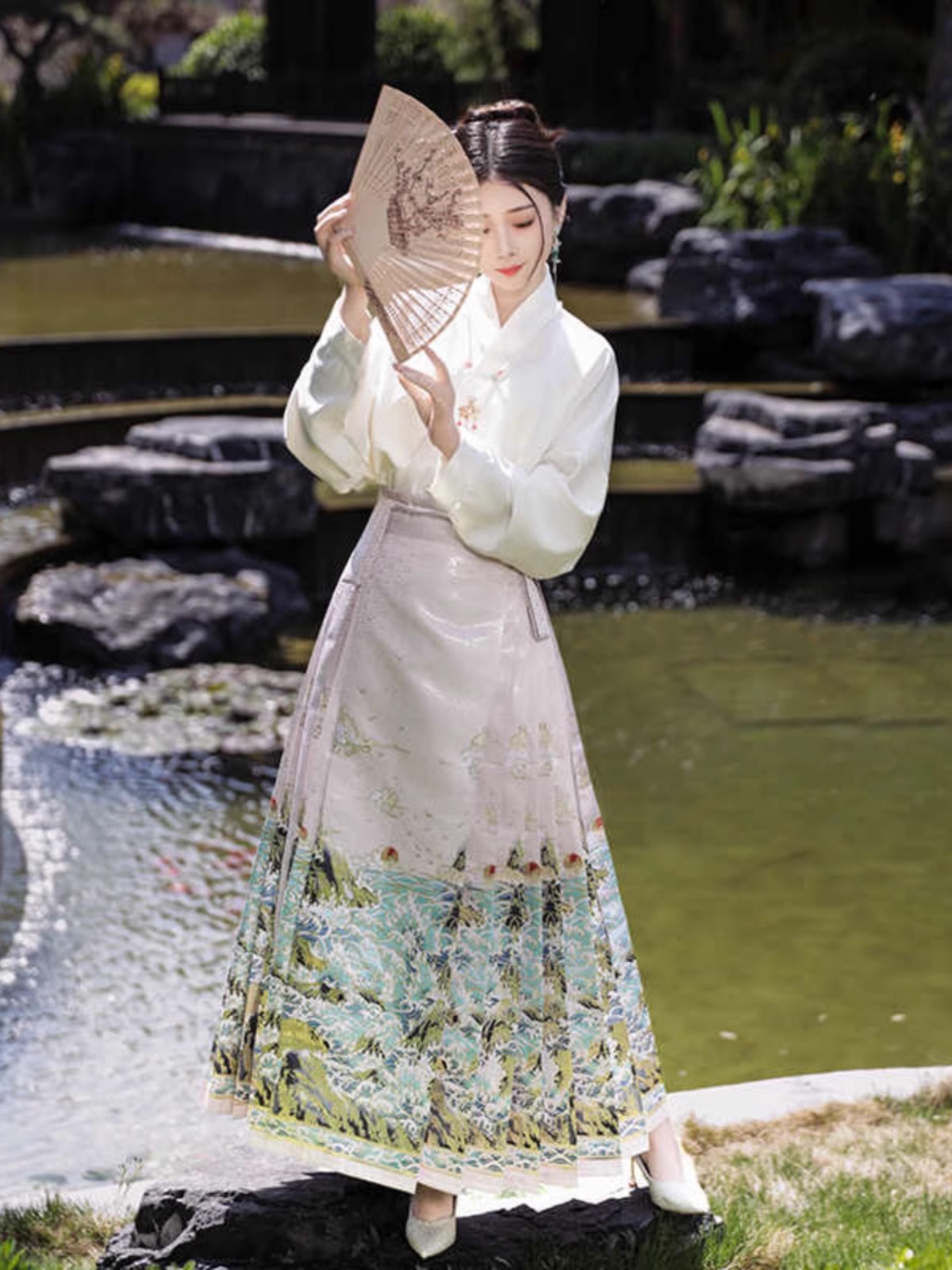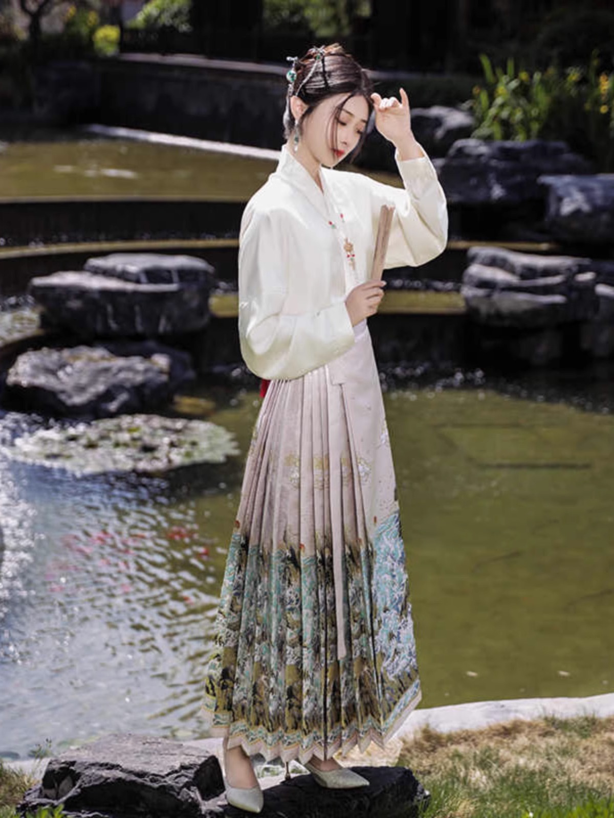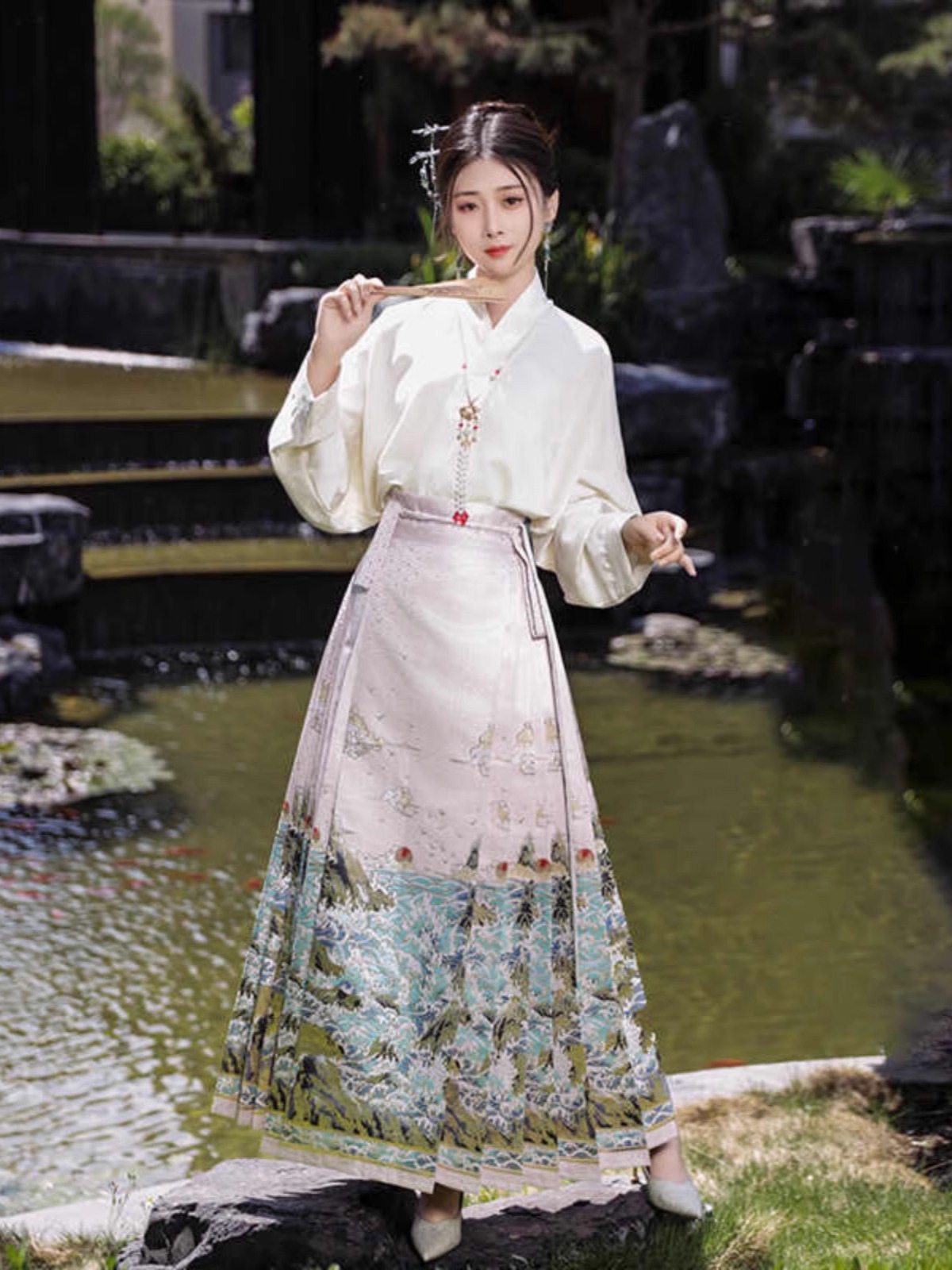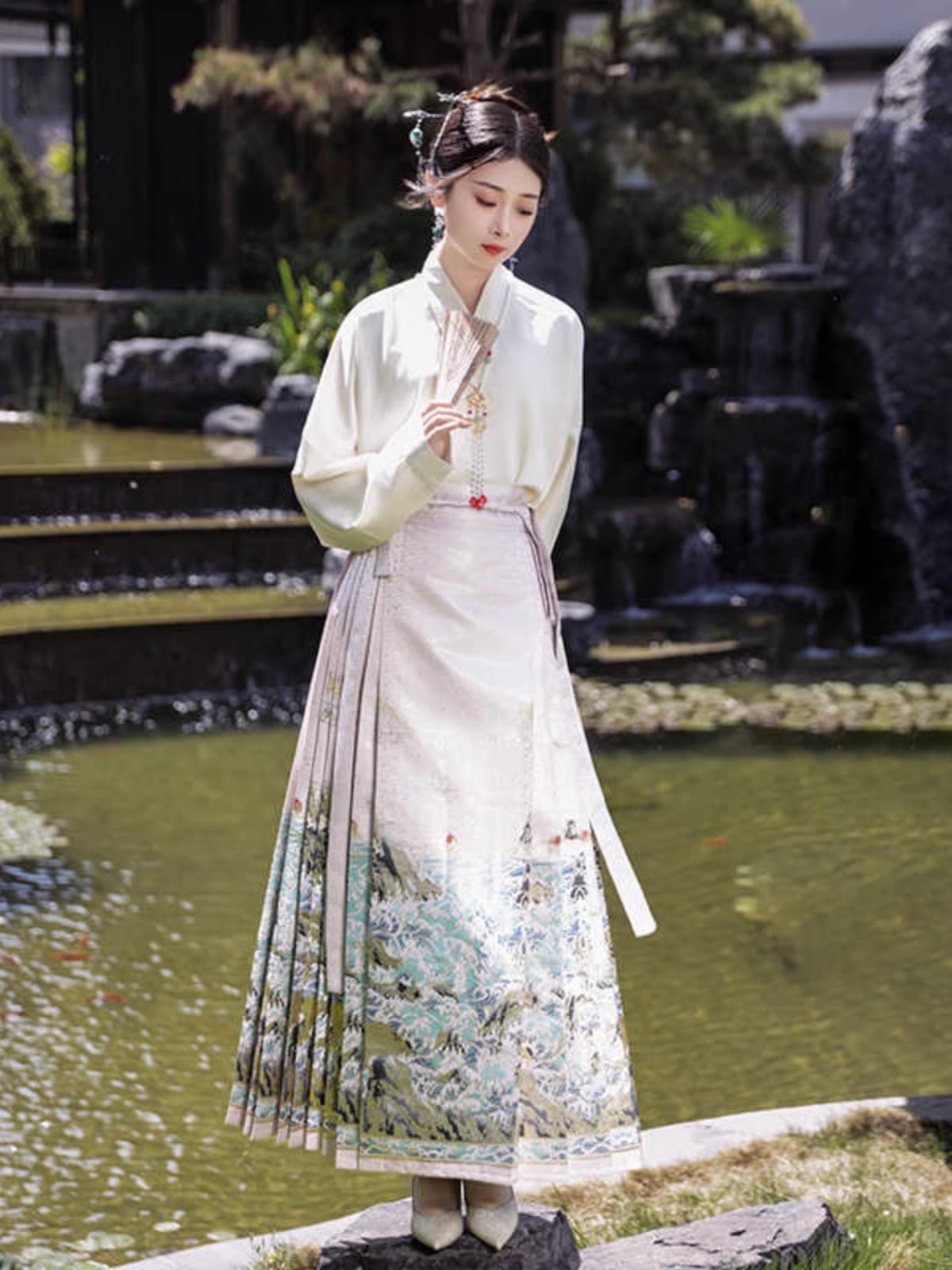 Новая китайская оригинальная юбка с конским лапшой [Haina Baichuan] Ткацкая золотая юбка с конским лапшой может носить новый китайский костюм 2024