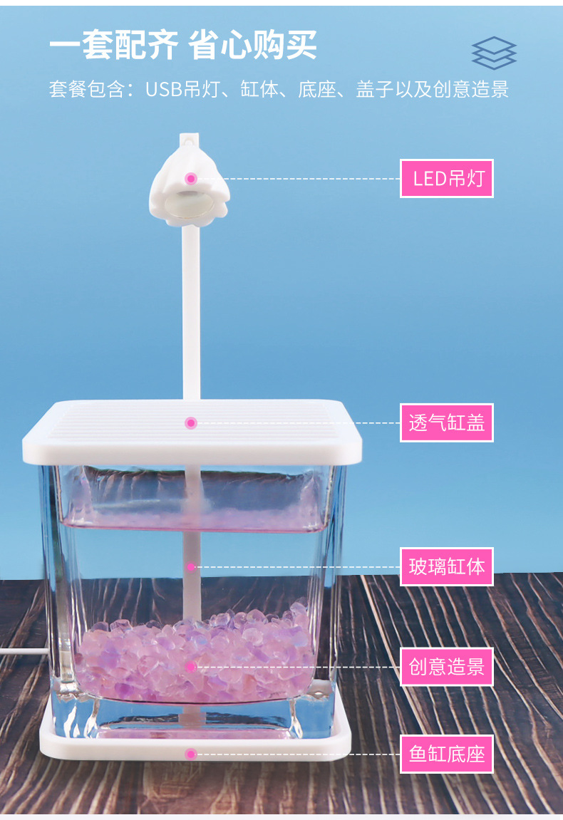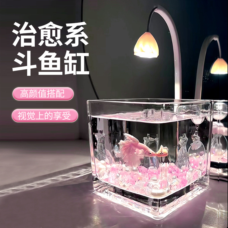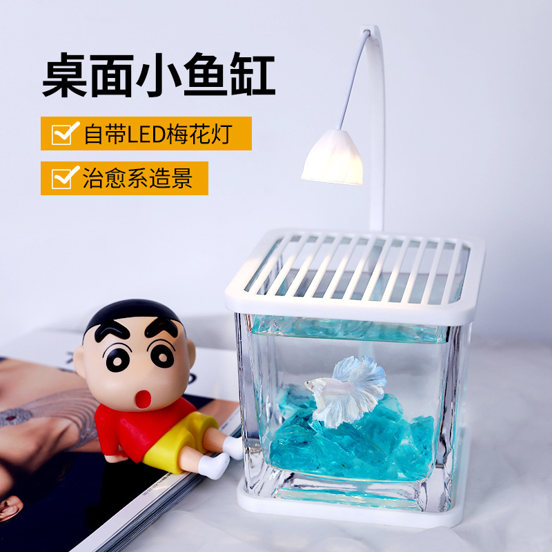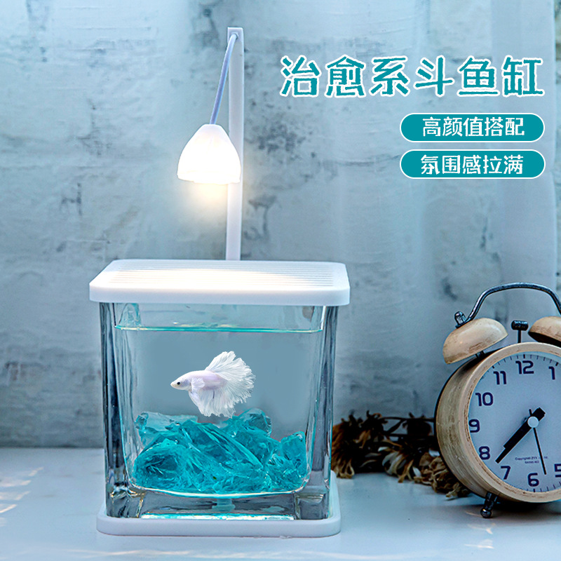 Специальный аквариум для бетты маленький аквариум настольный аквариум маленький ленивый стеклянный пейзажный столовый обеденный стол бытовой ночной светильник