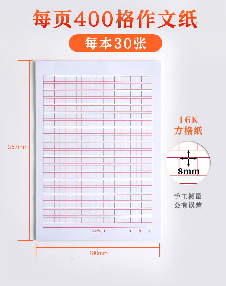 Толстая красная квадратная сетка 400 слов 400 сеток оригинальной бумаги канцелярской бумаги