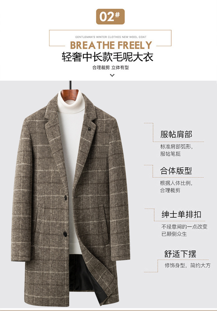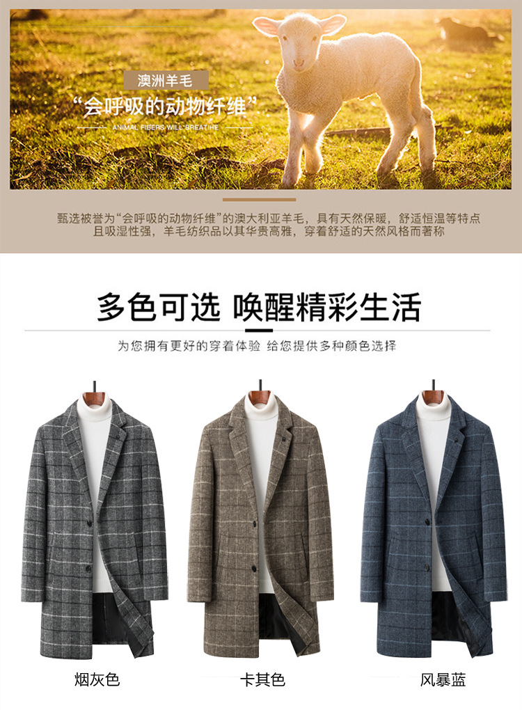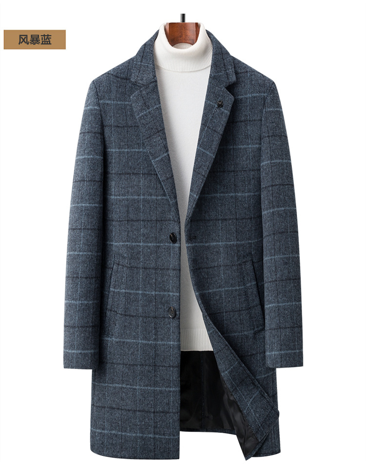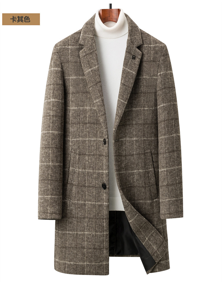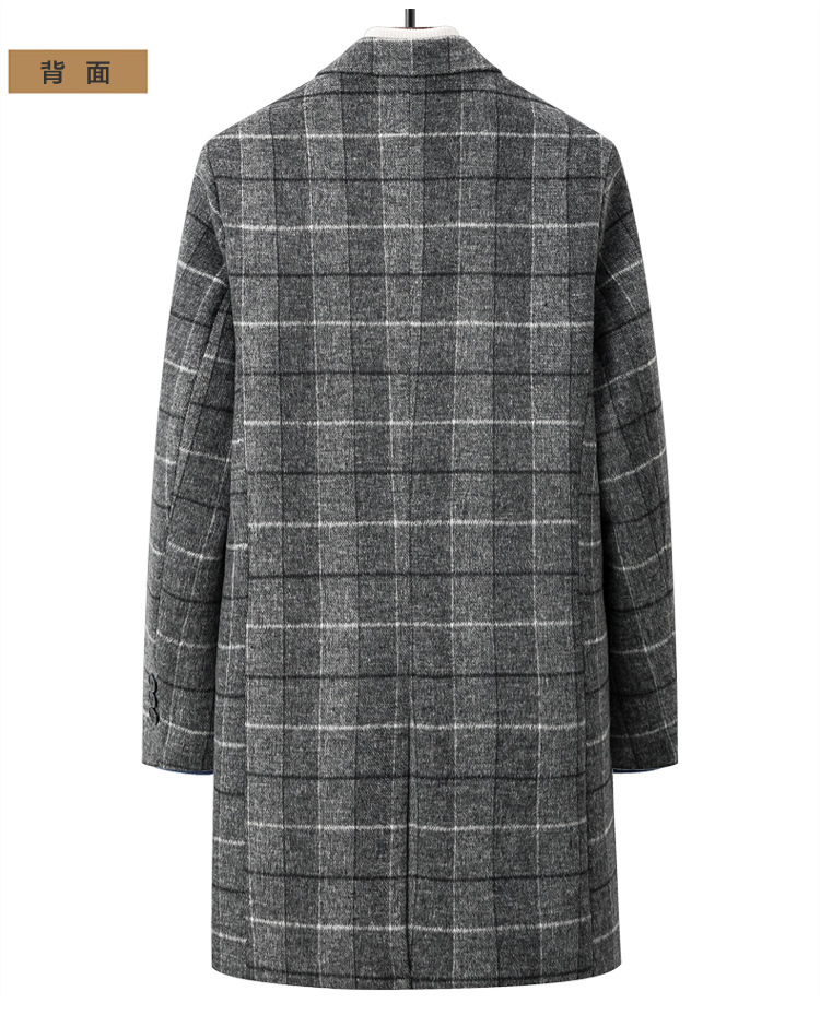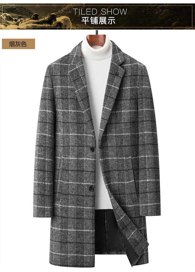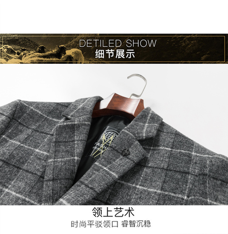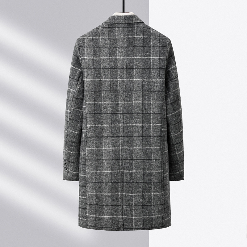 Осенняя и зимняя новая мужская шерстяная шерстяная шерстяная куртка средней длинности с воротником шерстяная ветровка модная повседневная клетчатая куртка
