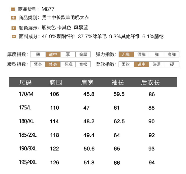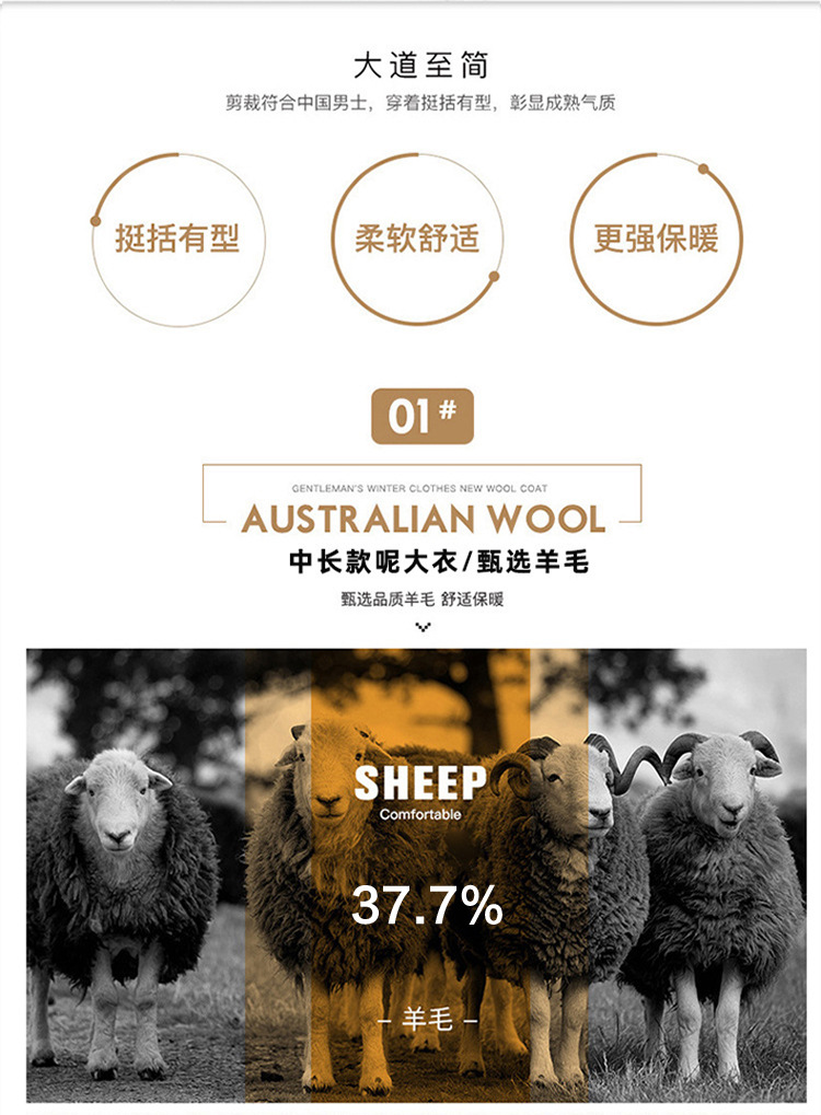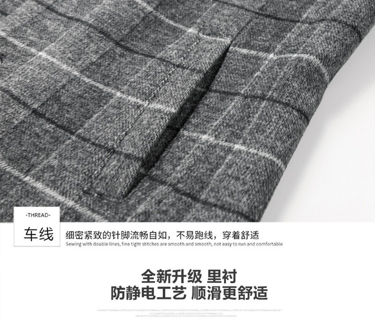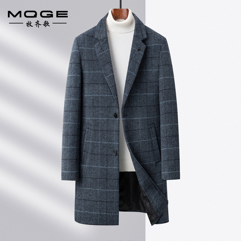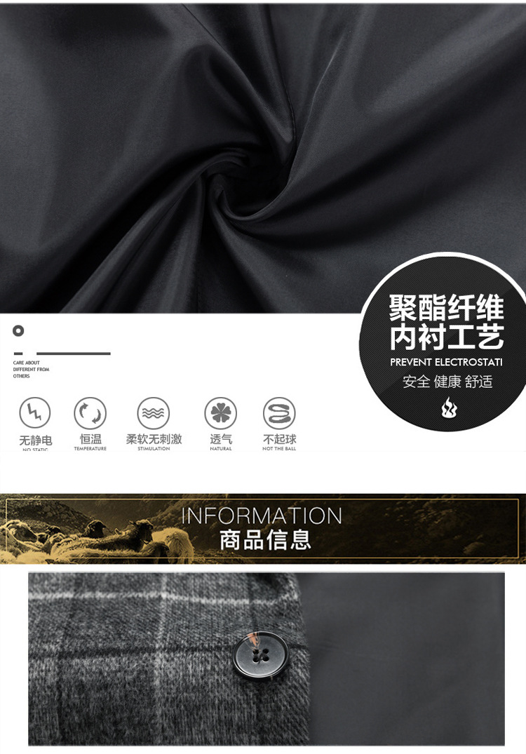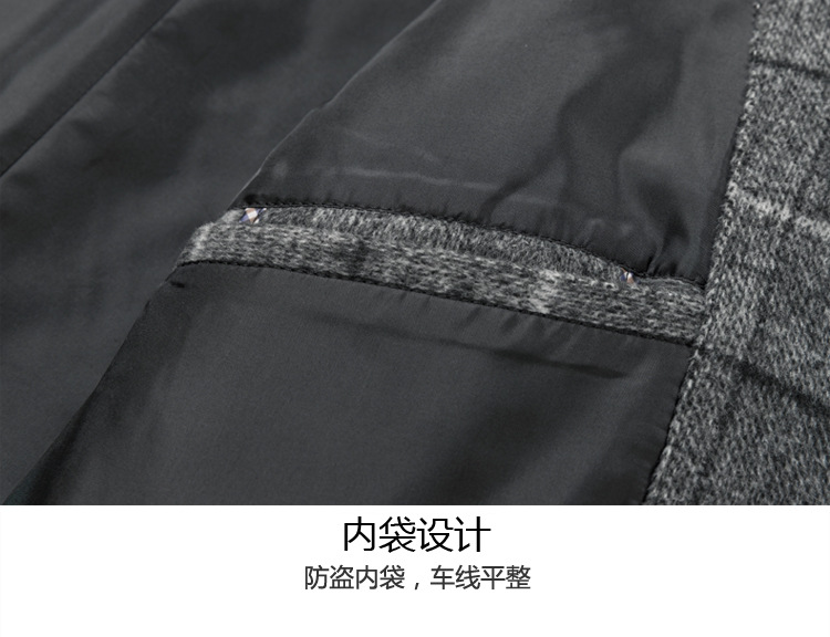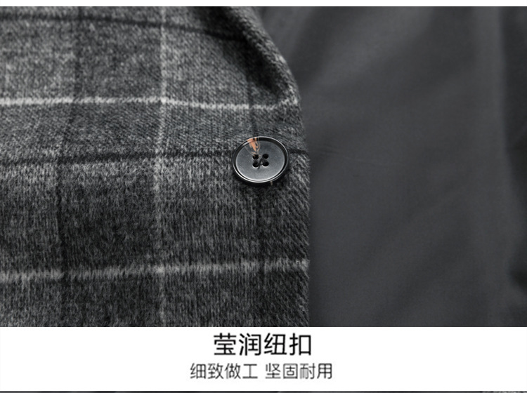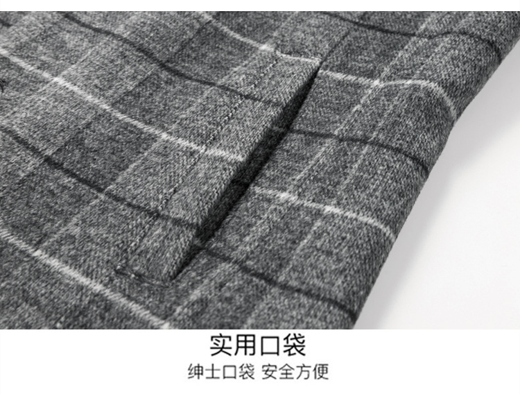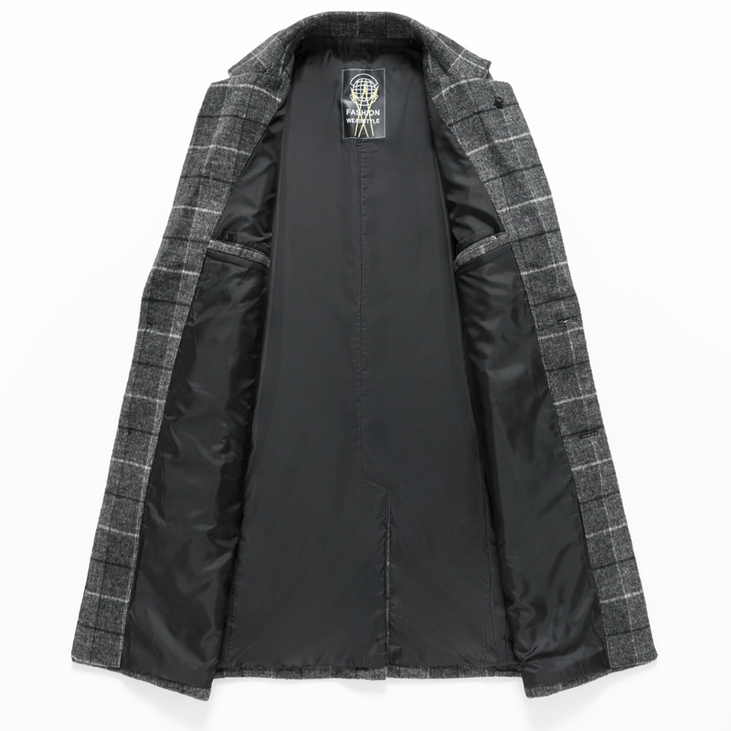 Осенняя и зимняя новая мужская шерстяная шерстяная шерстяная куртка средней длинности с воротником шерстяная ветровка модная повседневная клетчатая куртка