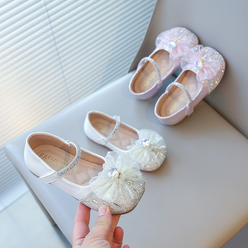 Новые осенние детские туфли для девочек с бантом и стразами 2025 года