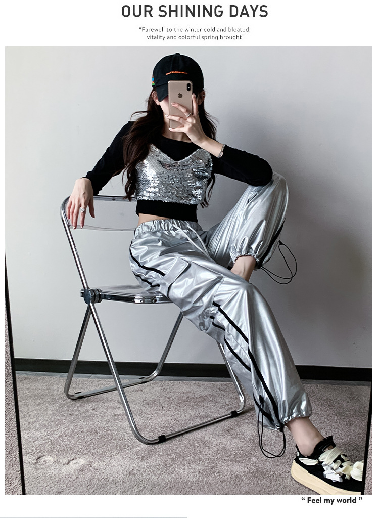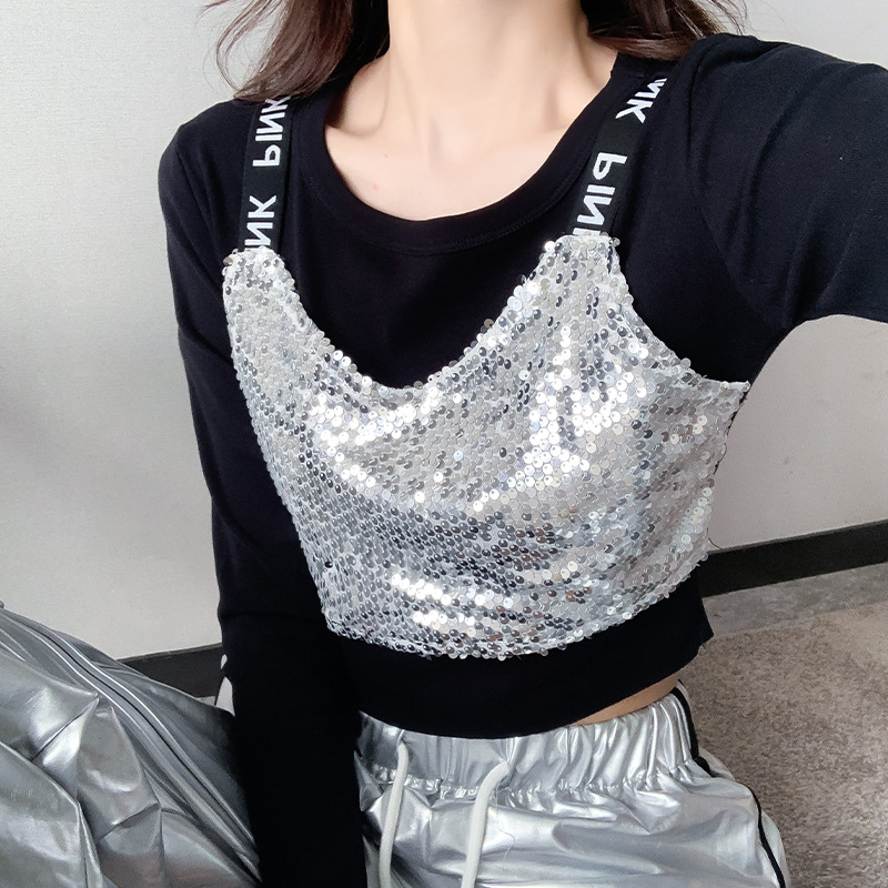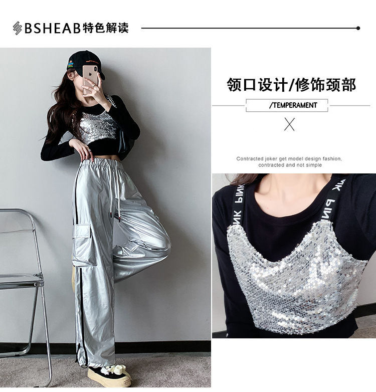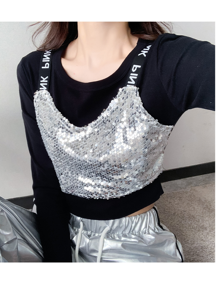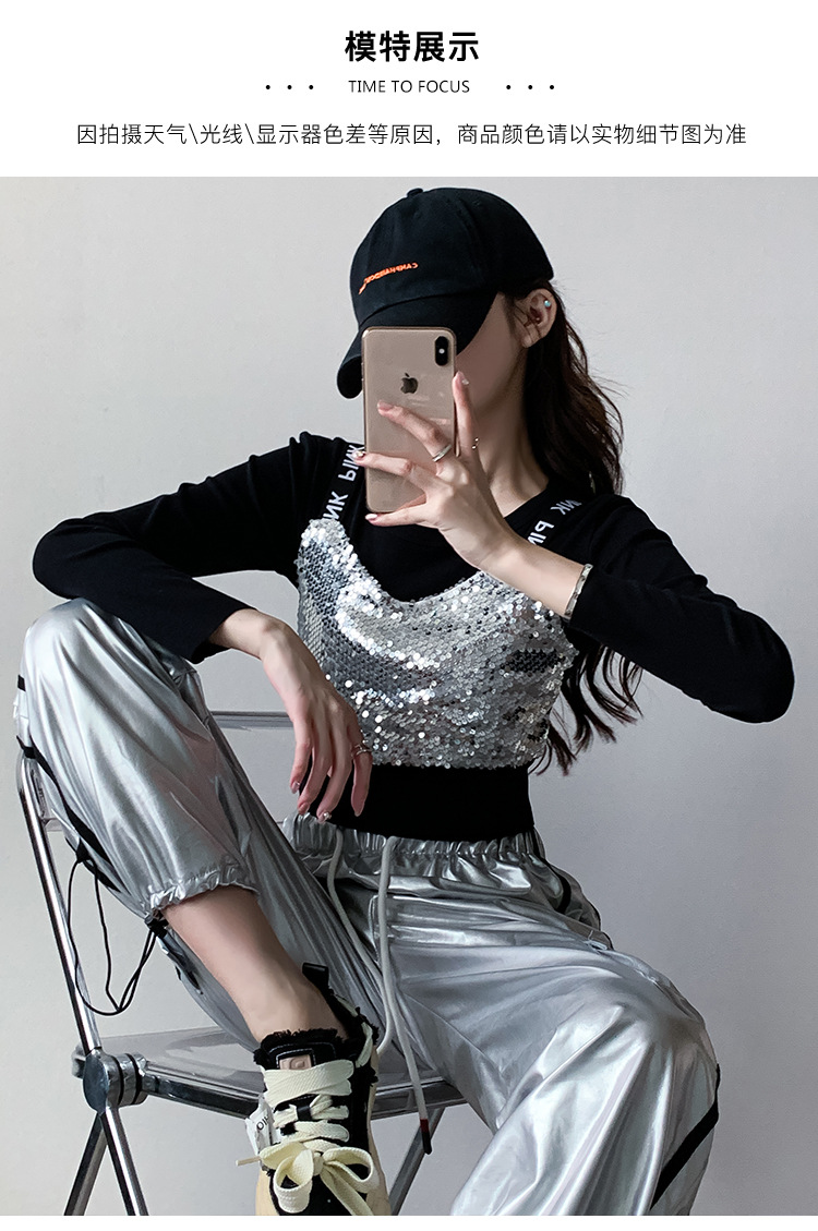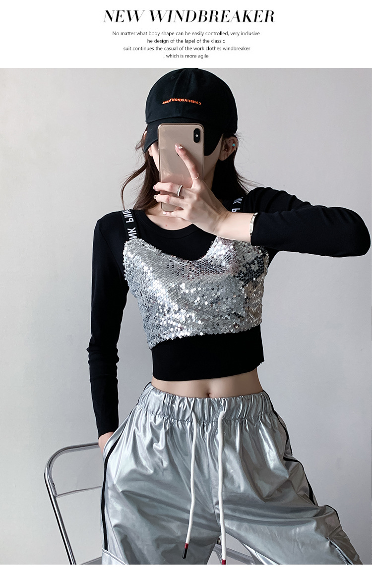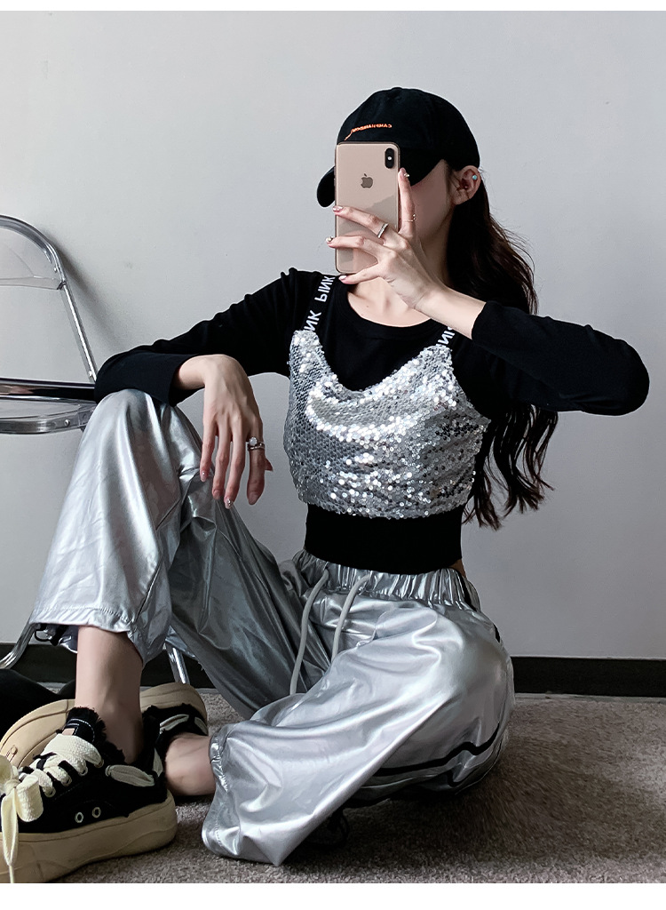 Рекордная съемка 2024 осеннего и зимнего уличного танца бренда Jazz Dance Короткий женский европейский и американский хип-хоп танцы с блестками костюм
