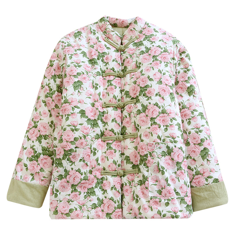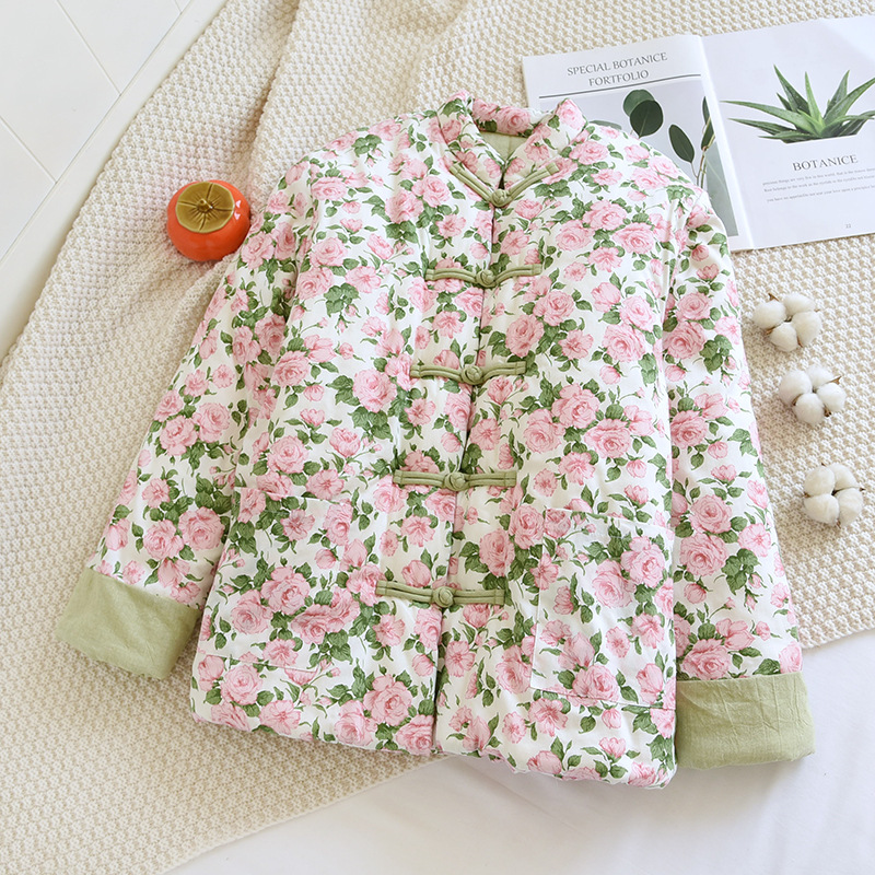40 зимние женские утолщенные хлопчатобумажные пальто в китайском стиле ретро хлопчатобумажные костюмы теплые цветы