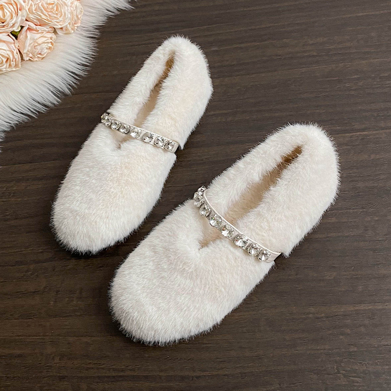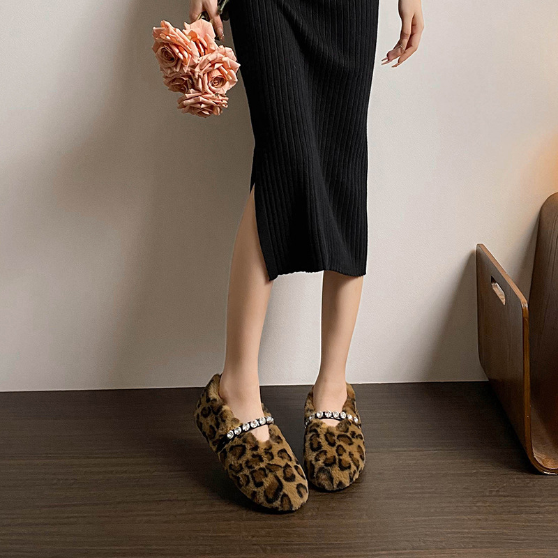 Один размер больше, женские зимние туфли-мэри-джейн без застежек с плюшевой подкладкой, новый стиль, женская обувь больших размеров 41–43.