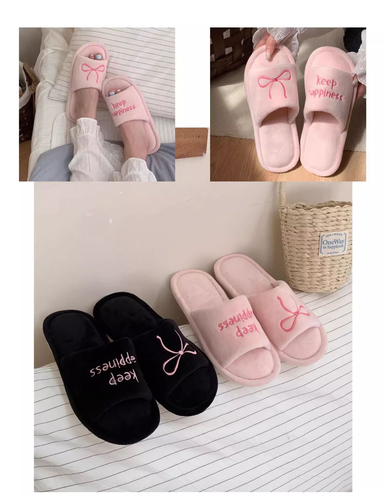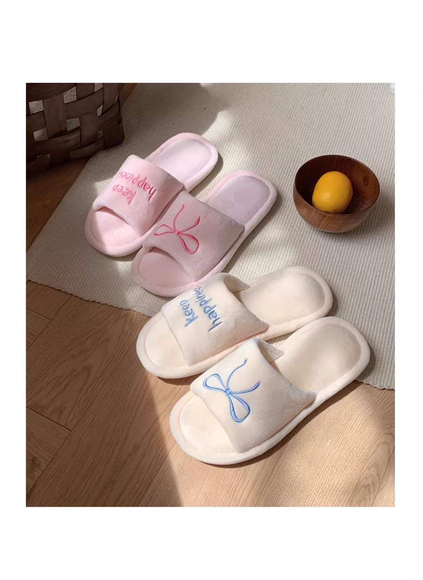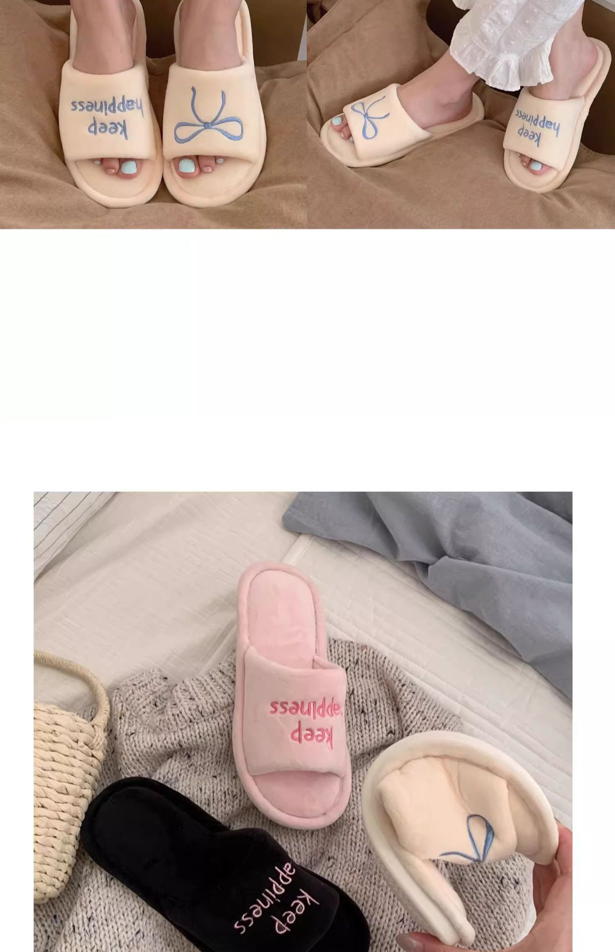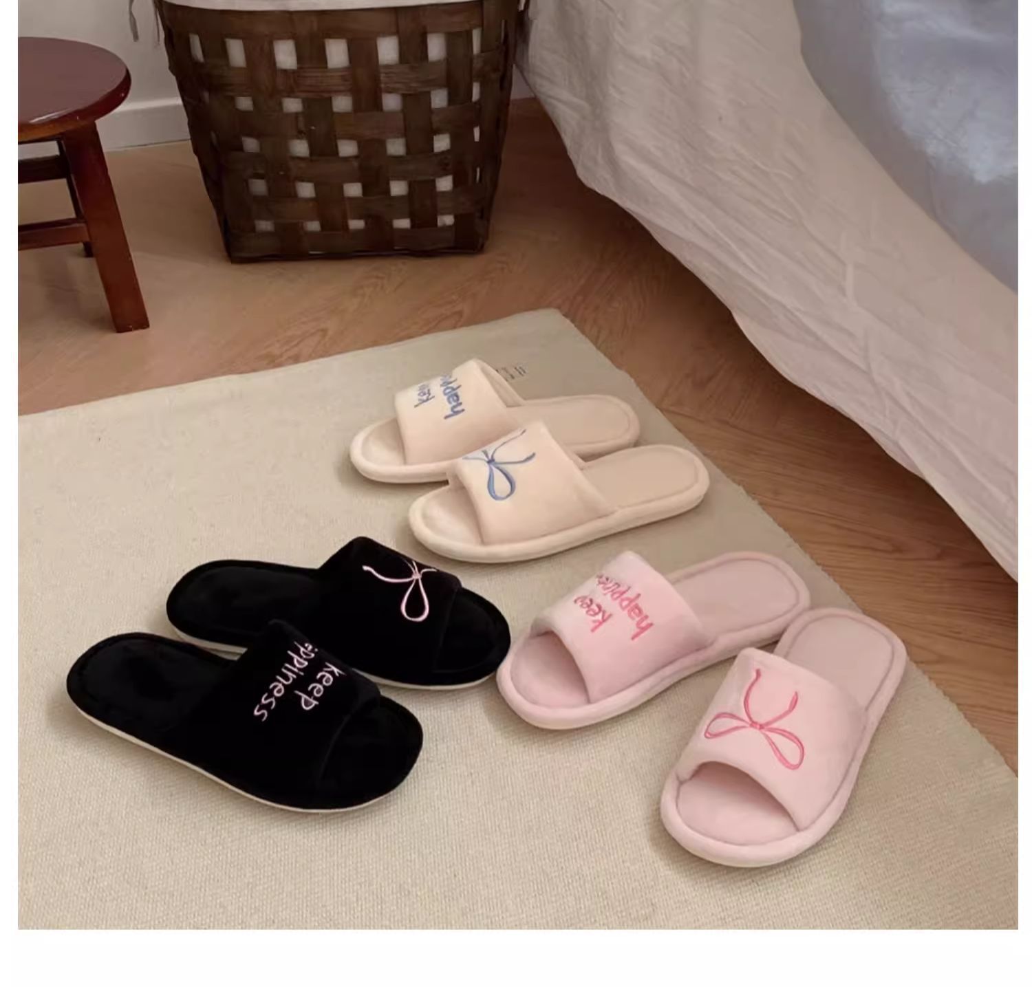 Тонкие полоски корейских букв бант туфли для пола женские повседневные спальни осенью и зимой удобные хлопковые тапочки