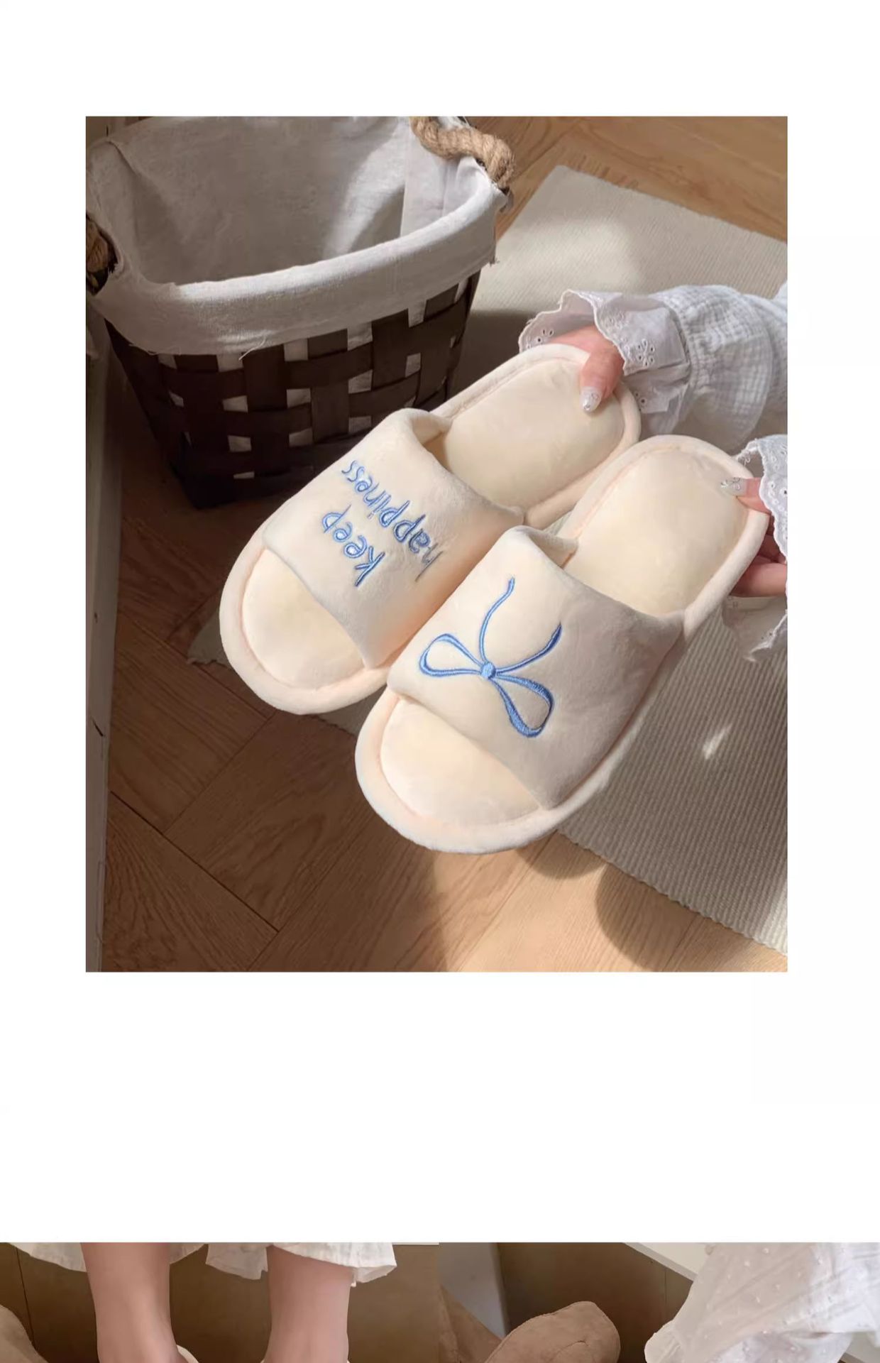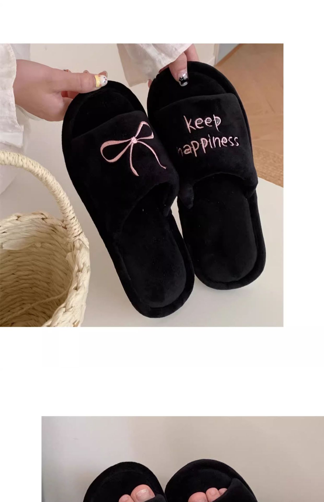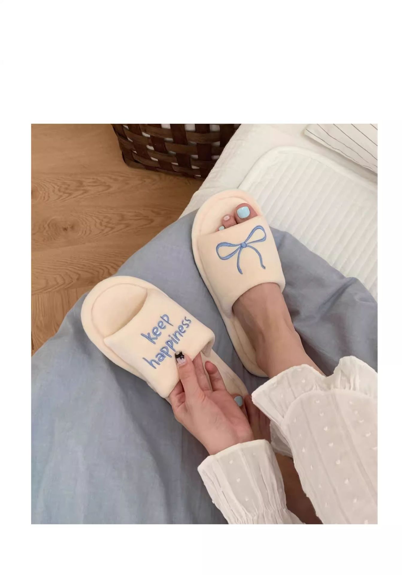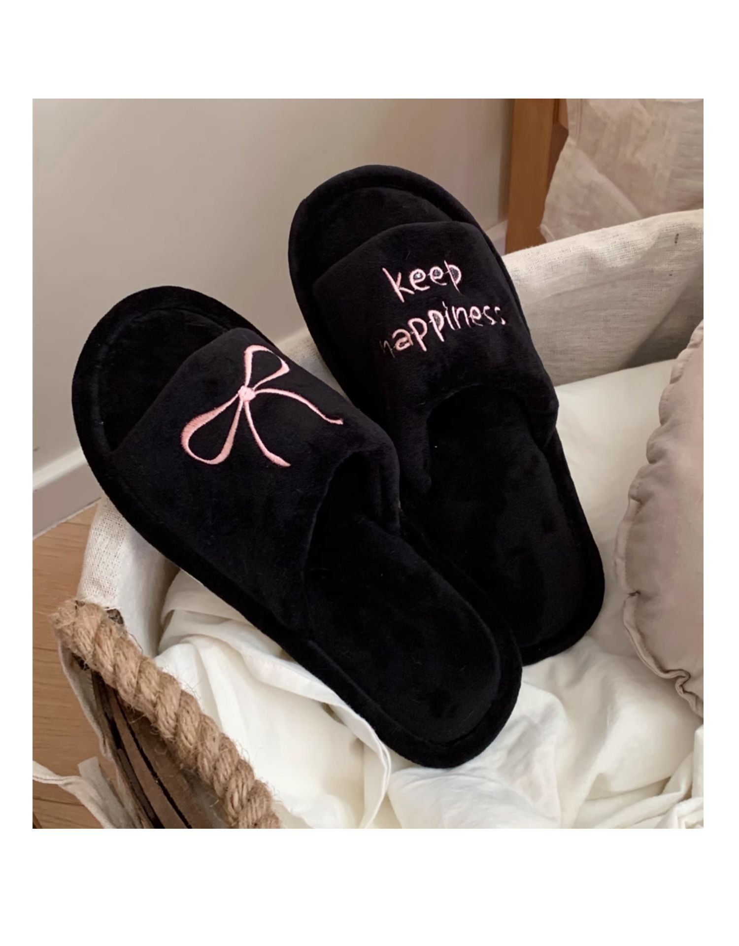 Тонкие полоски корейских букв бант туфли для пола женские повседневные спальни осенью и зимой удобные хлопковые тапочки