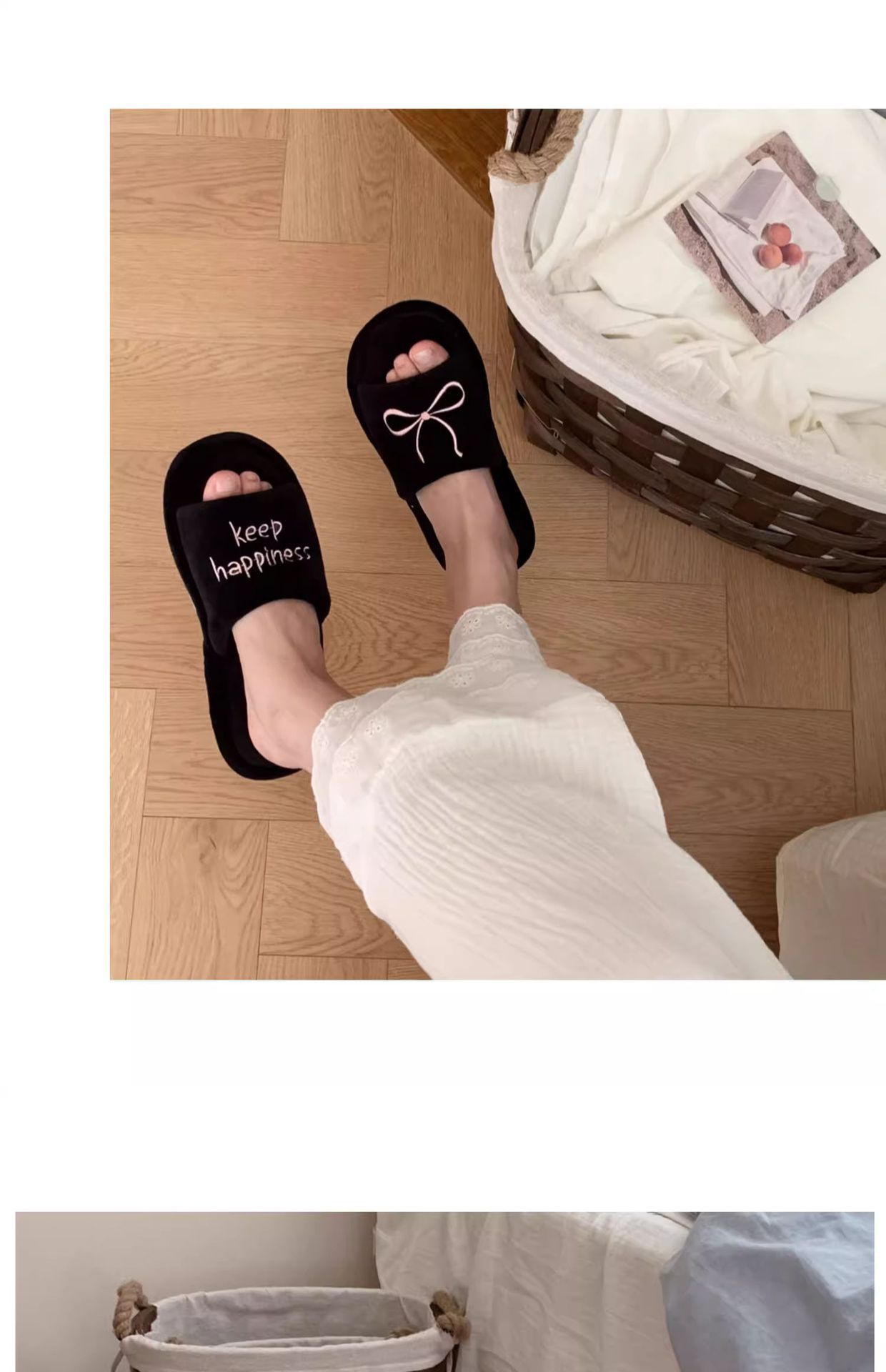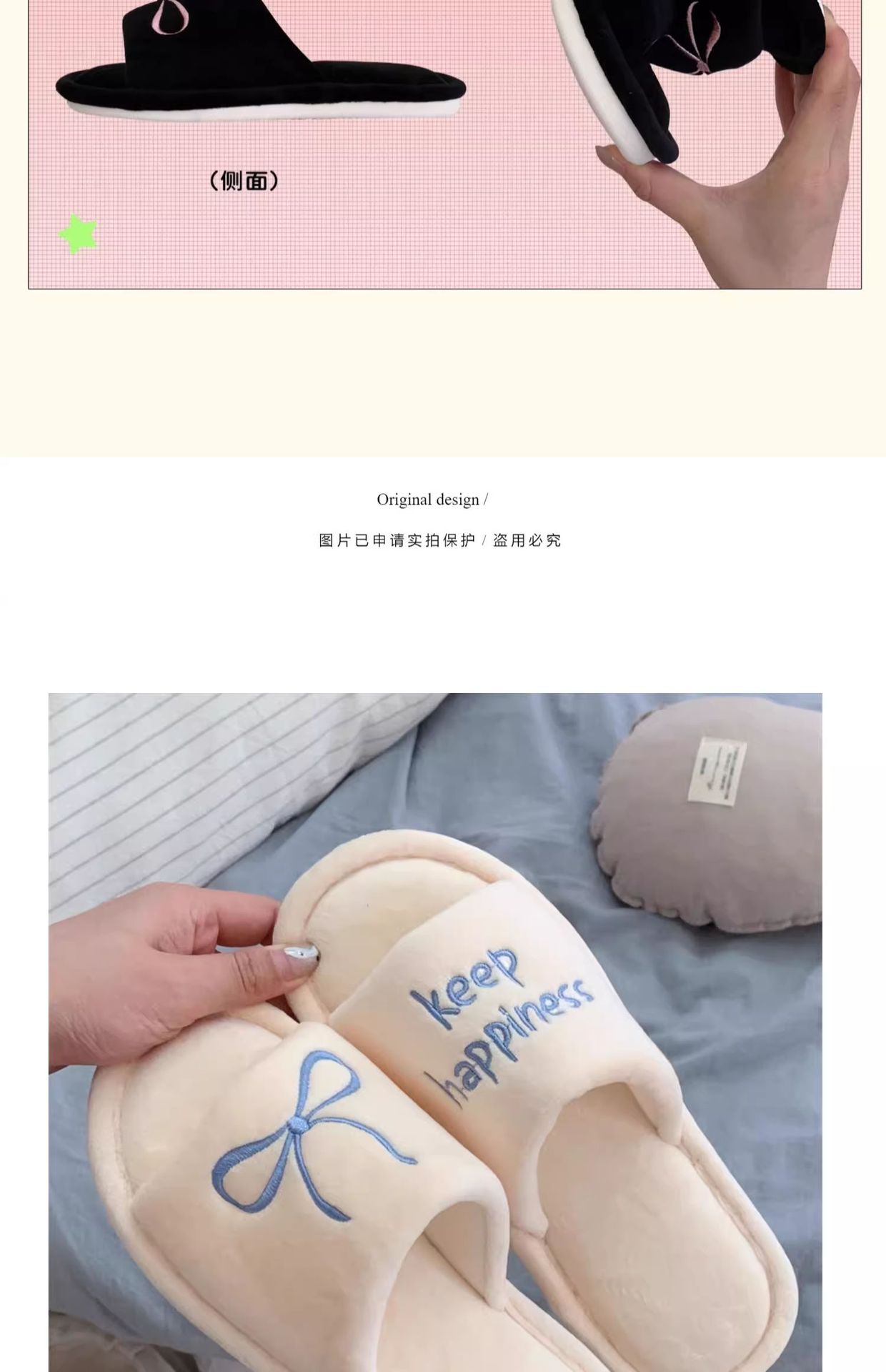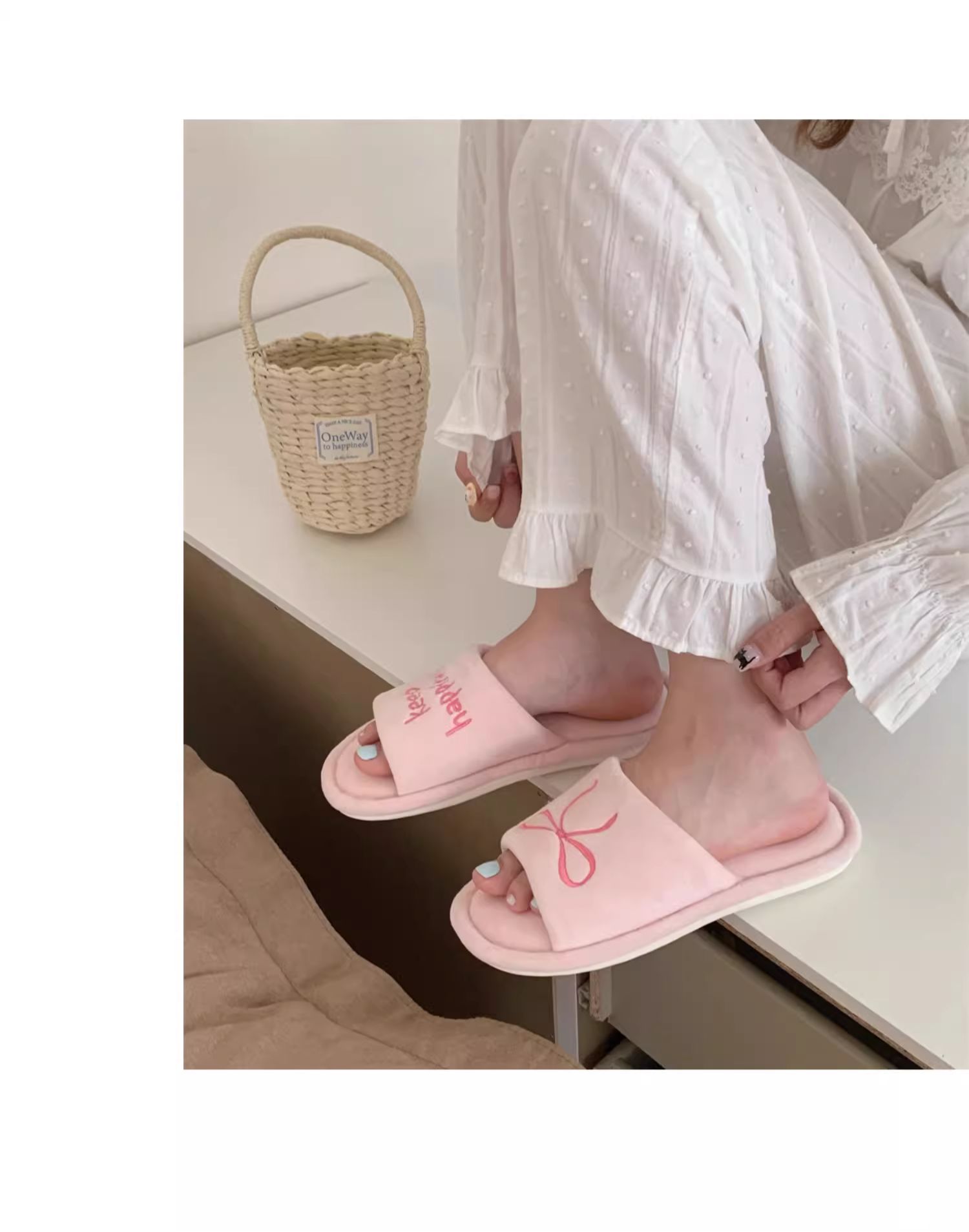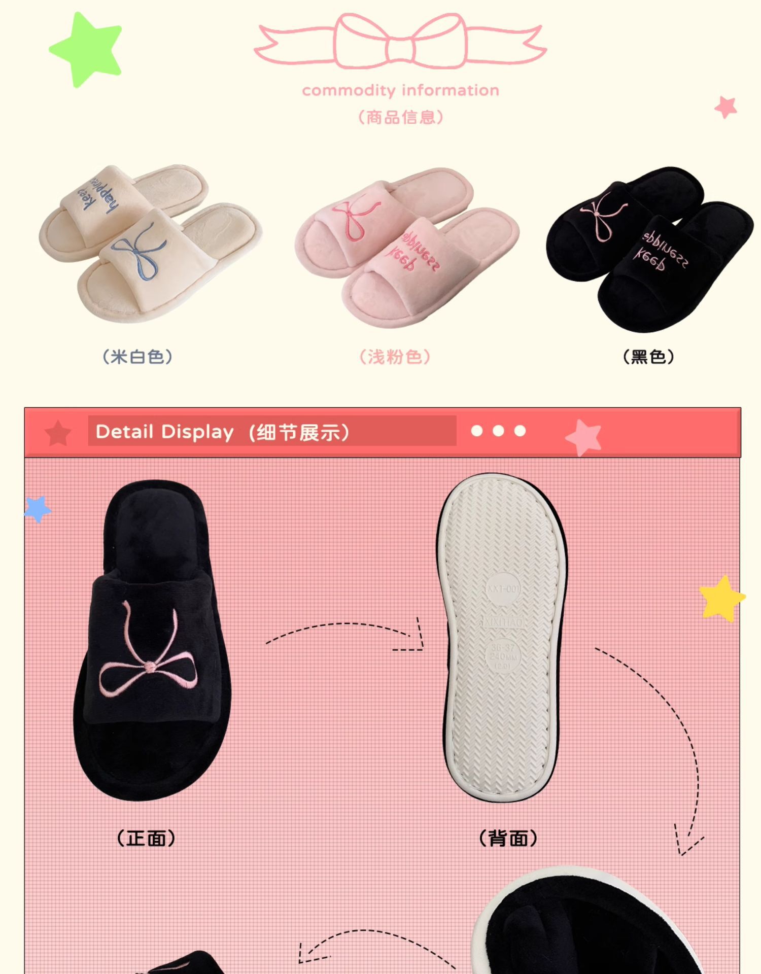 Тонкие полоски корейских букв бант туфли для пола женские повседневные спальни осенью и зимой удобные хлопковые тапочки