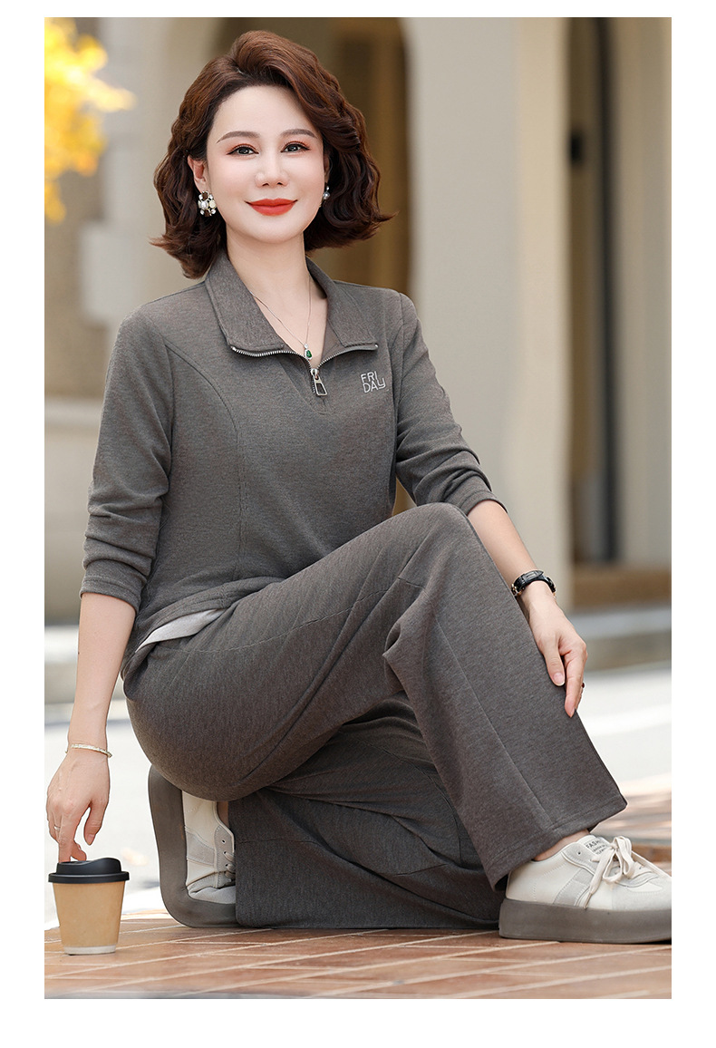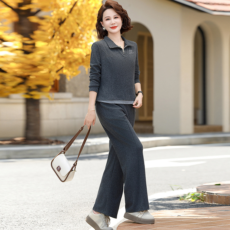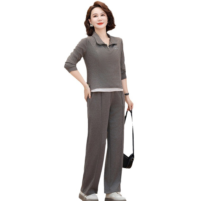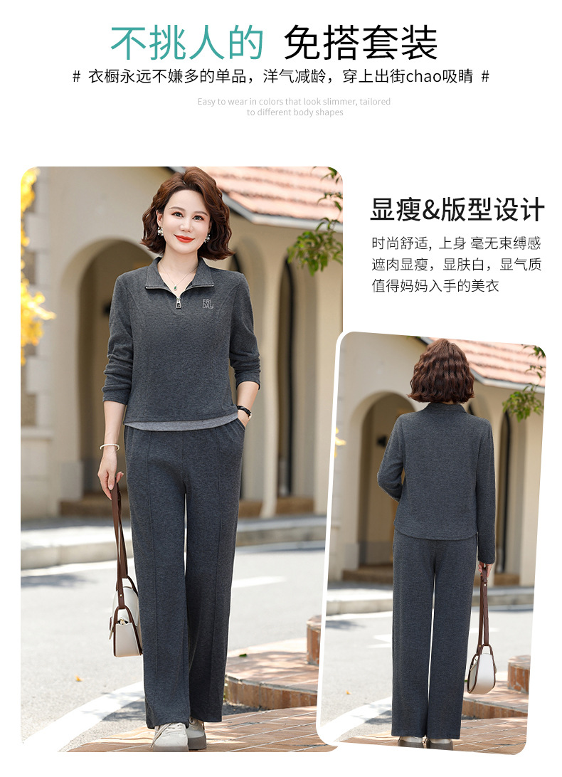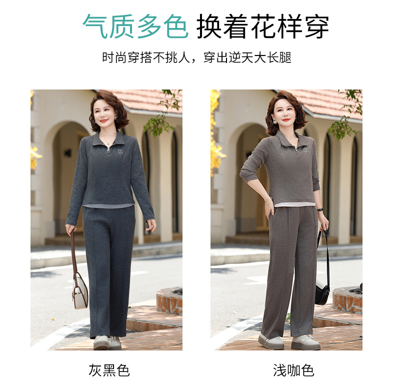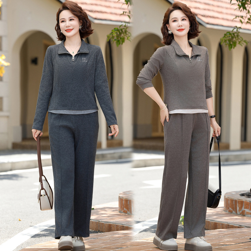 Сплошной цвет мама одежда для женщин среднего возраста повседневный костюм осенняя одежда женский большой размер сплошной цвет одежда для пожилых людей среднего и пожилого возраста осенняя одежда
