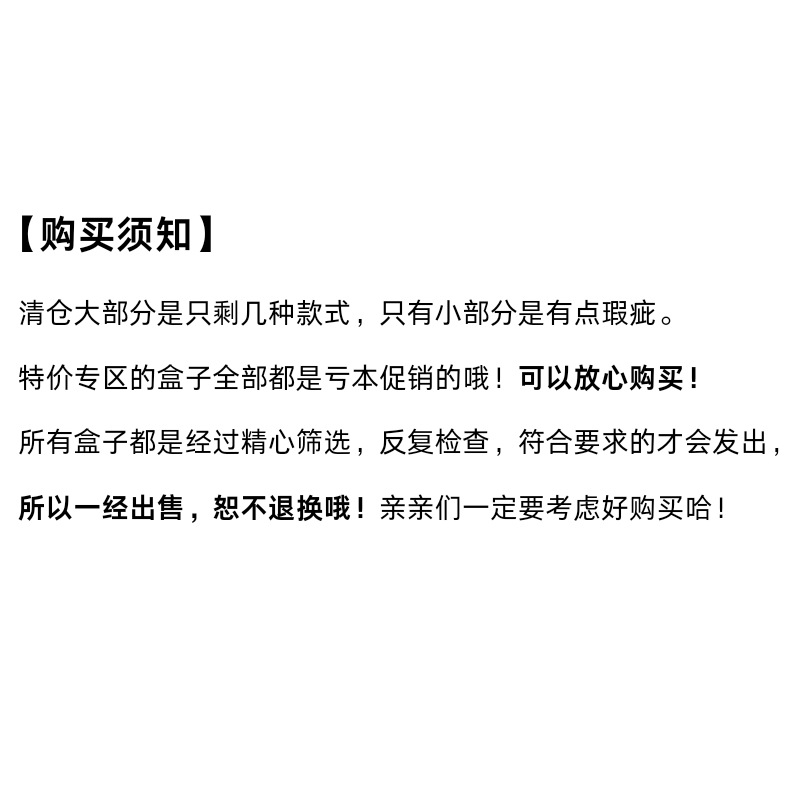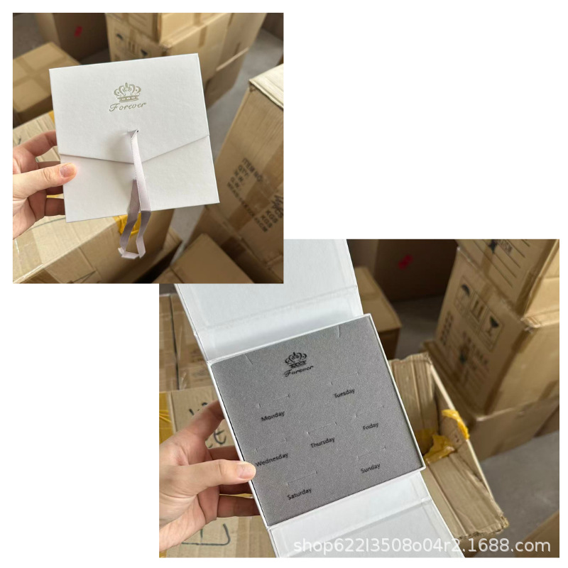 Еженедельная подарочная коробка (красная); Подарочная коробка «Семь дней» (белая); Коробка для хранения колец; Ящик для хранения с двойным кольцом; Коробка для хранения сережек с двойным отверстием; Жемчужные экспонаты (3 штуки за 5 юаней); Шкатулка для хранения украшений-темно-зеленая; Деревянная коробка из суперволокна (обратите внимание на цвет и стиль); Коробка для клипов-темно-зеленая; Коробка 9×9-синяя; Двойная открытая внутренняя овальная коробочка (синий павлин); Подвеска-коробочка с логотипом-красный комплект