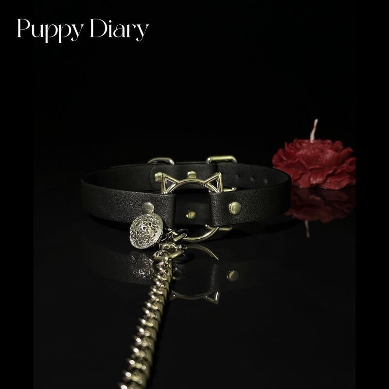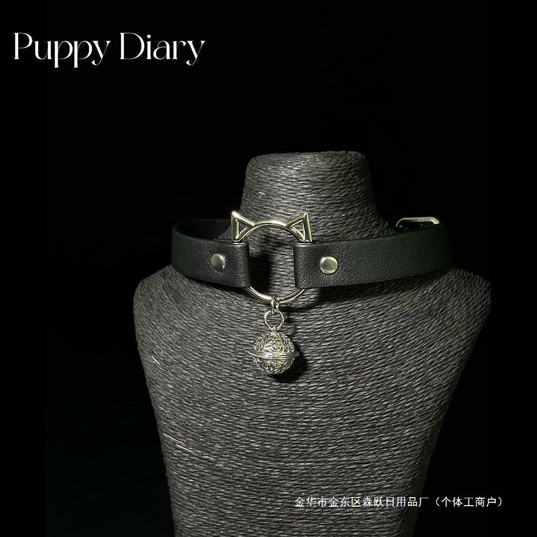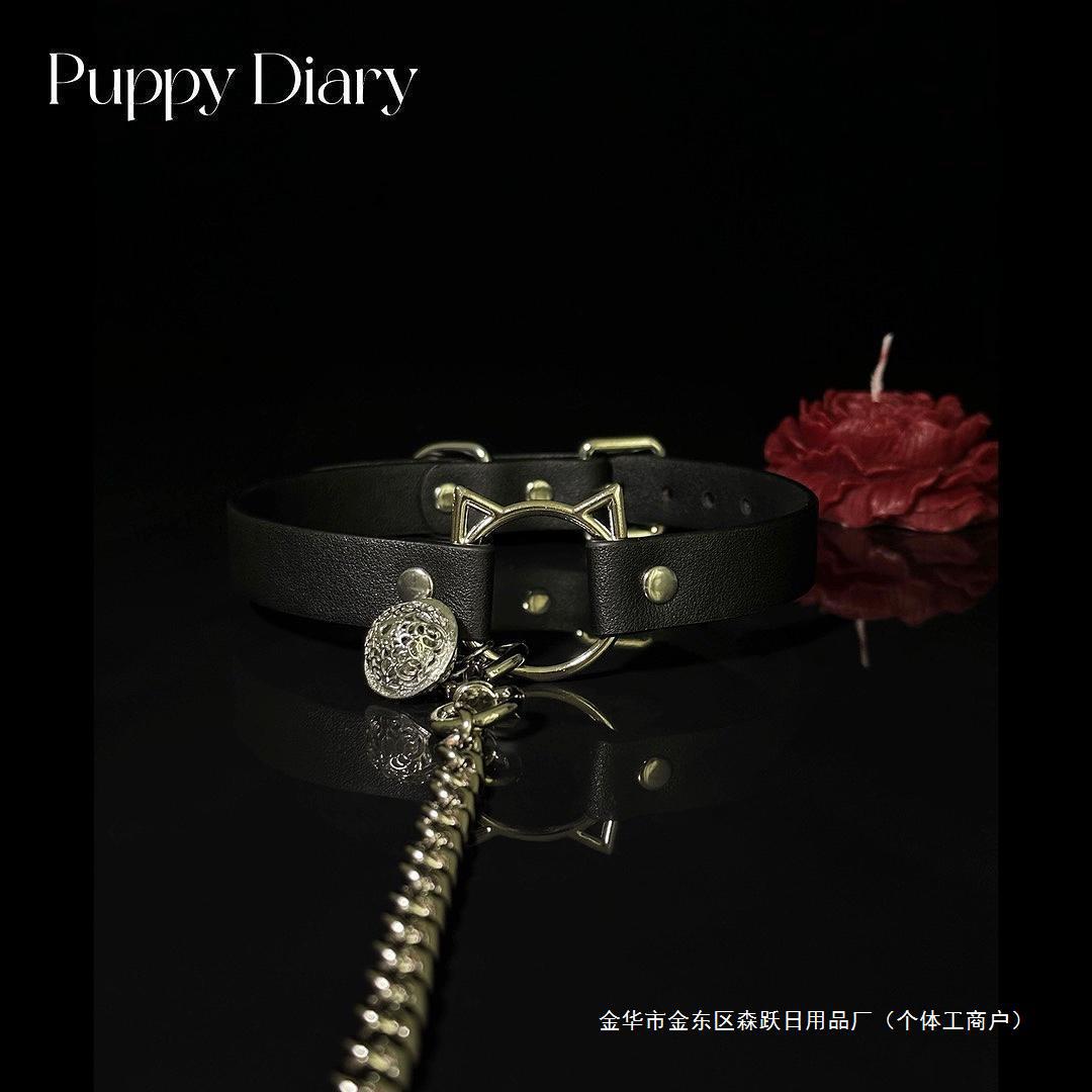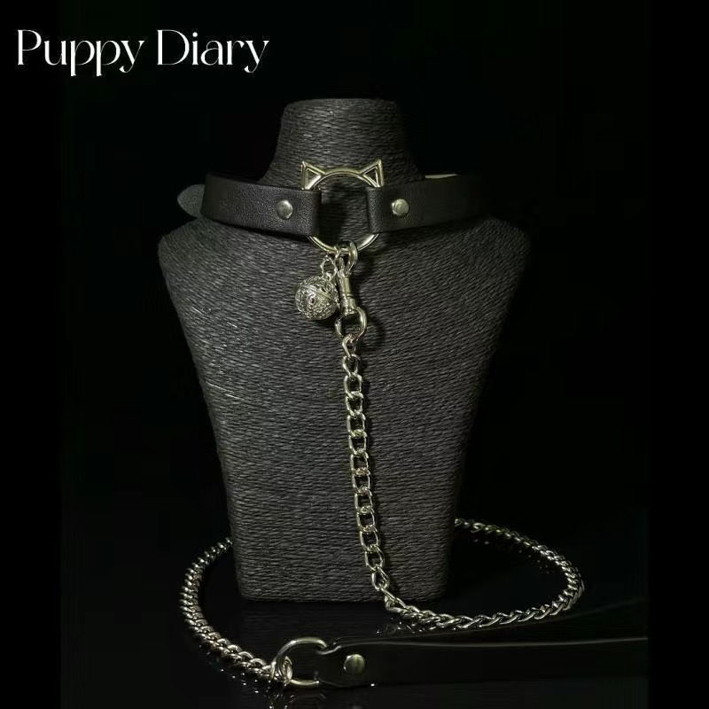Комплект для косплея: ошейник и поводок из ПУ с колокольчиком, черный, для кошек (модель K9)