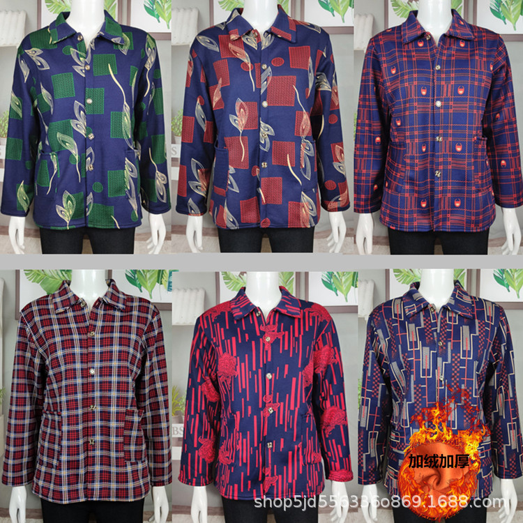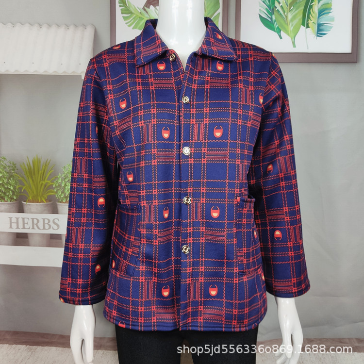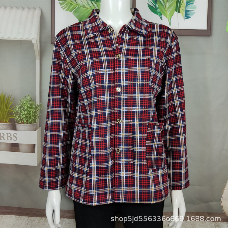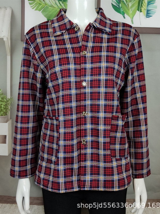 Распродажа недорогих теплых рубашек с длинным рукавом из флиса для женщин среднего и старшего возраста, повседневные женские топы в клетку в стиле «мама».
