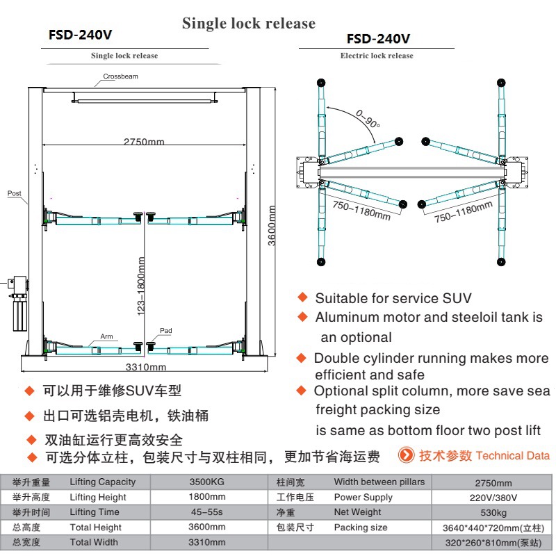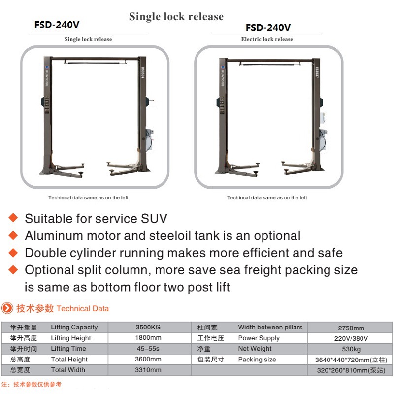 Автомобильная тестовая линия, экспортная специальная электролитическая блокировка Fusida Warxiong серии 240 В, ручной двусторонний разблокирующий подъемник