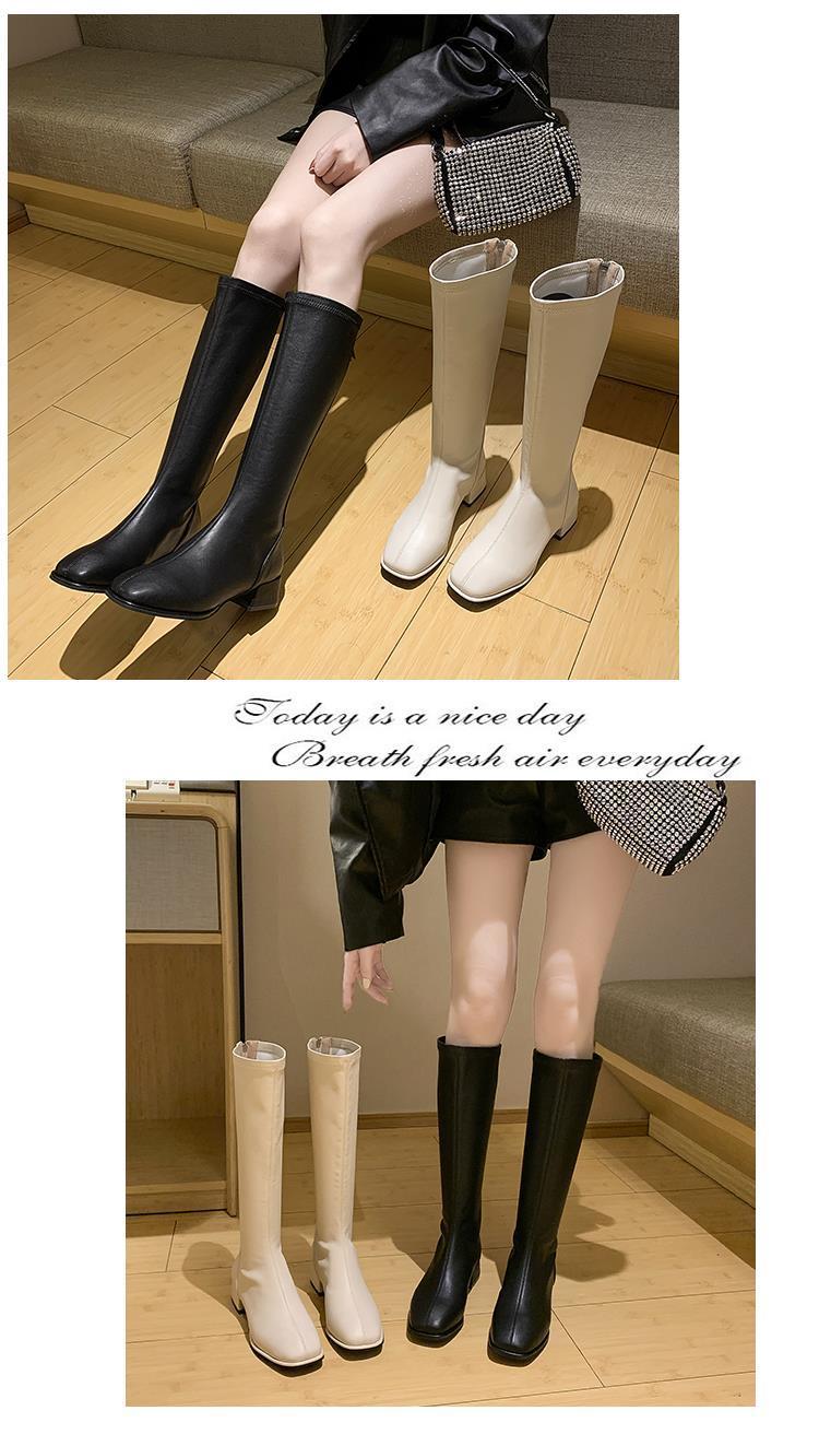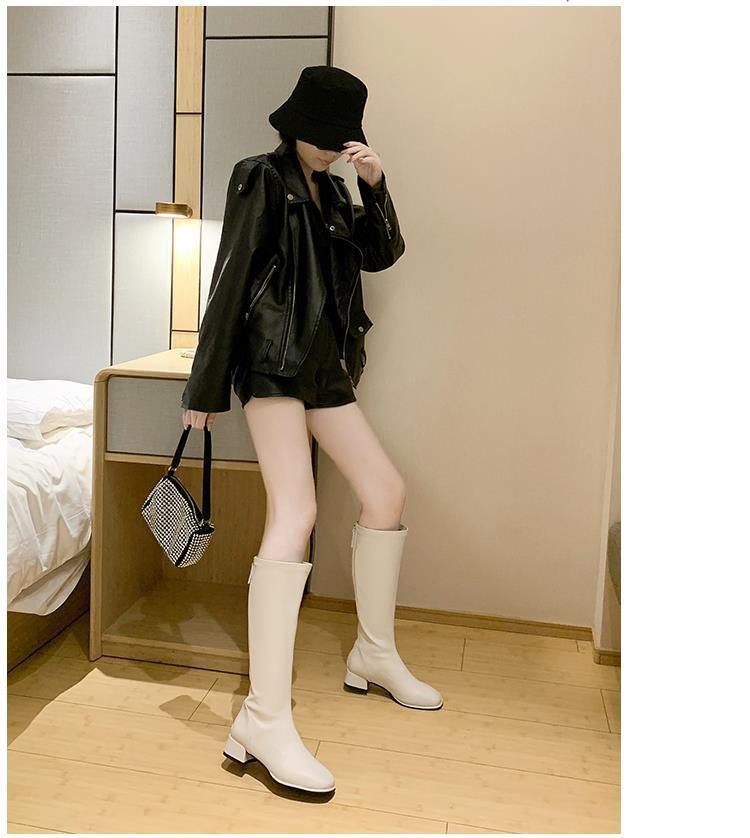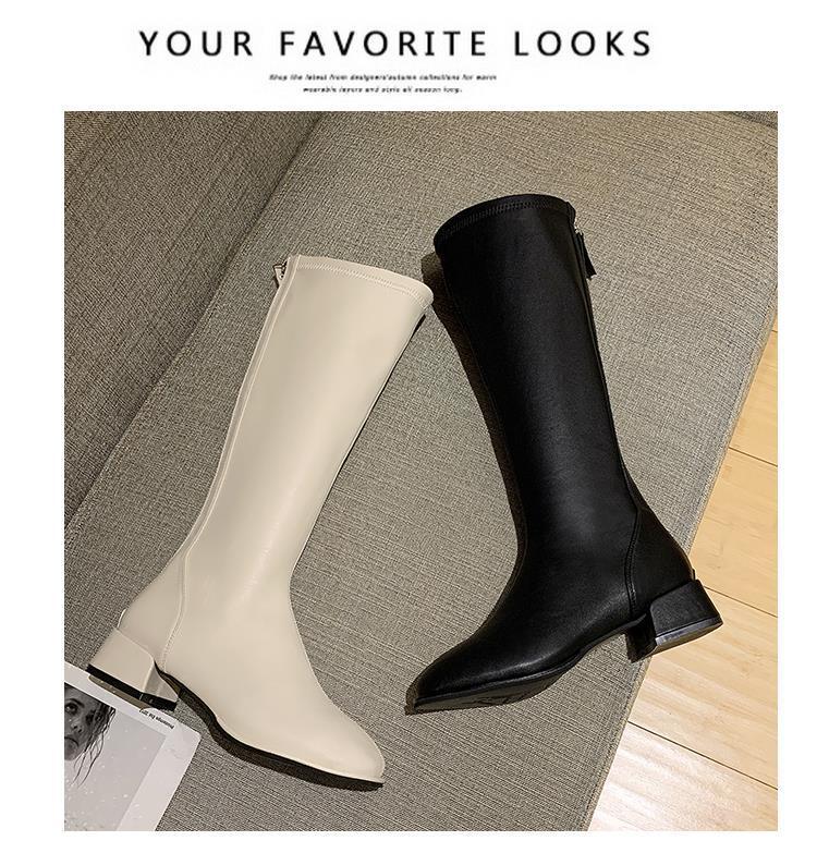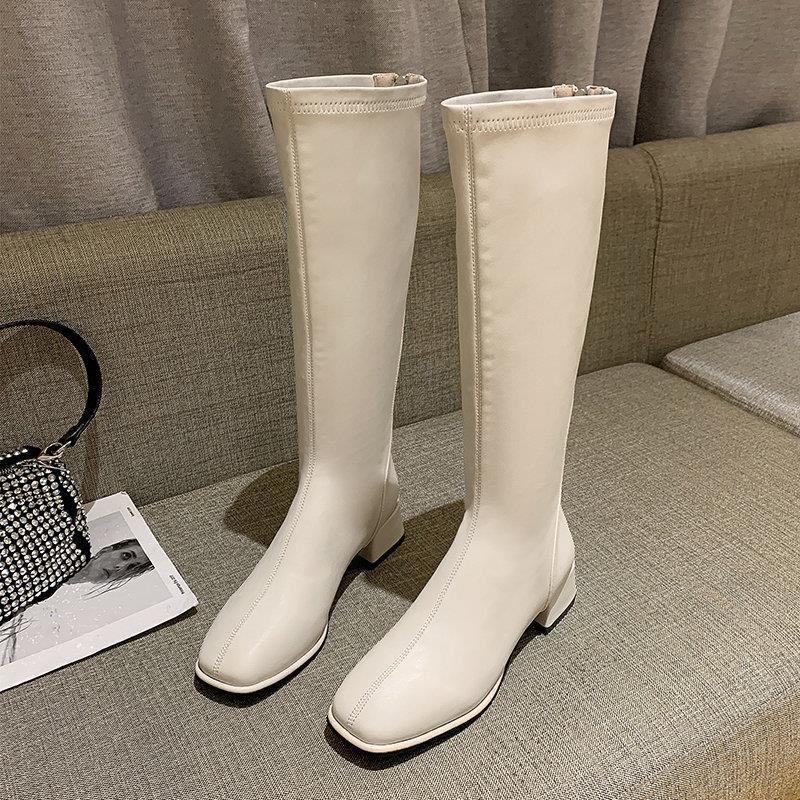 Женские высокие сапоги, весна-осень 2025, белые сапоги выше колена, узкие сапоги средней длины.
