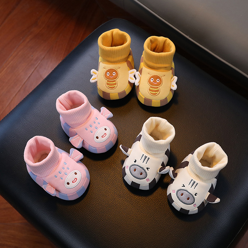 Осенние и зимние новорожденные носки туфли для маленьких детей теплые чехлы для ног мультфильмы плюшевые толстые и мягкие подошвы против скольжения