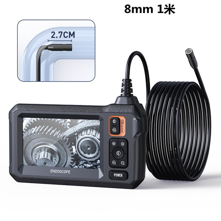 Camera diameter: 8mm Camera resolution: 1920*1080 Viewing angle: 70° Focusing range: 20-100mm Auxiliary lighting: 8 adjustable brightness LEDs Screen type: 4.3-inch color display Charge port: Type-C Battery: 2000mAh Battery life: 3.5 hours Battery charging time: 3 hours