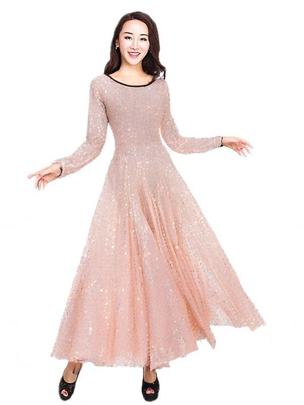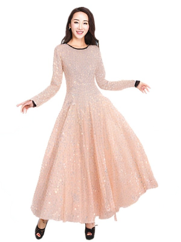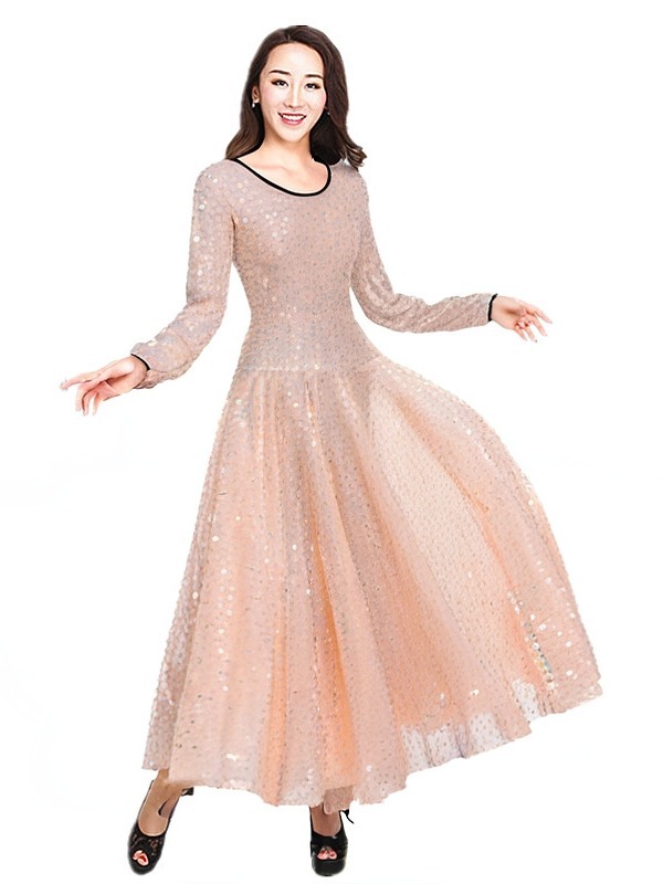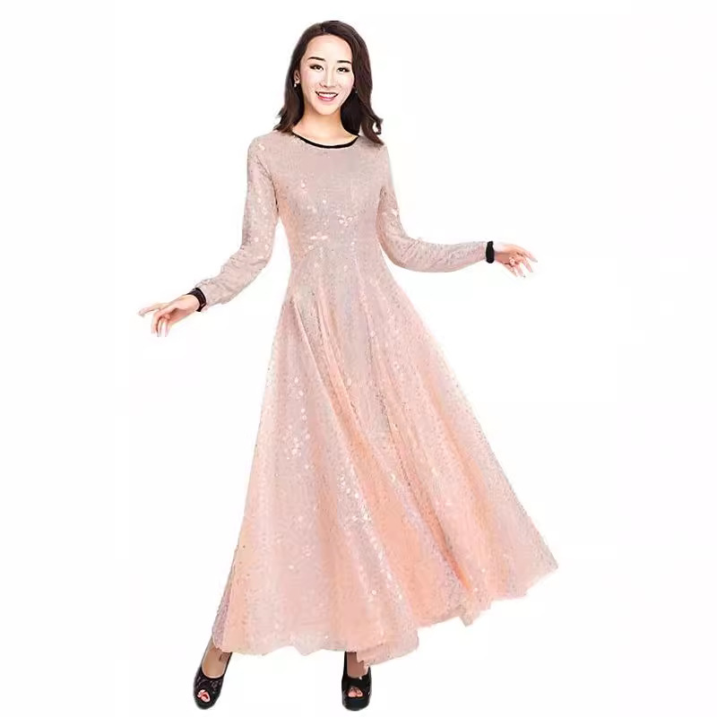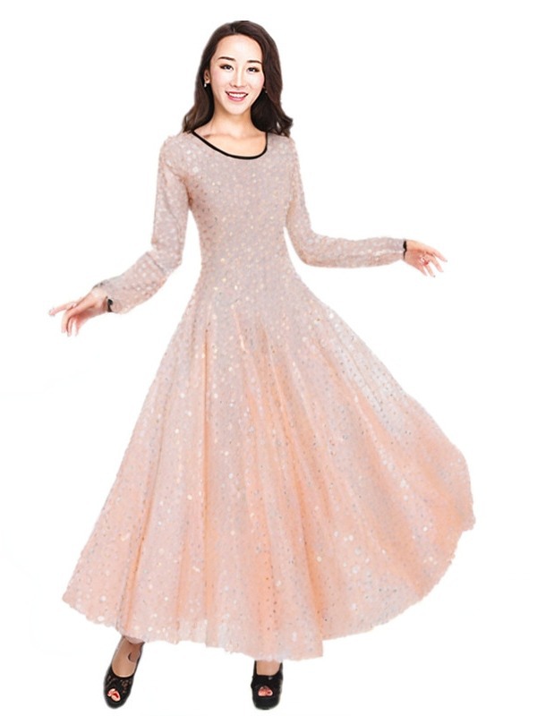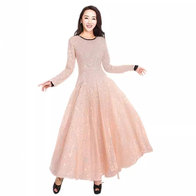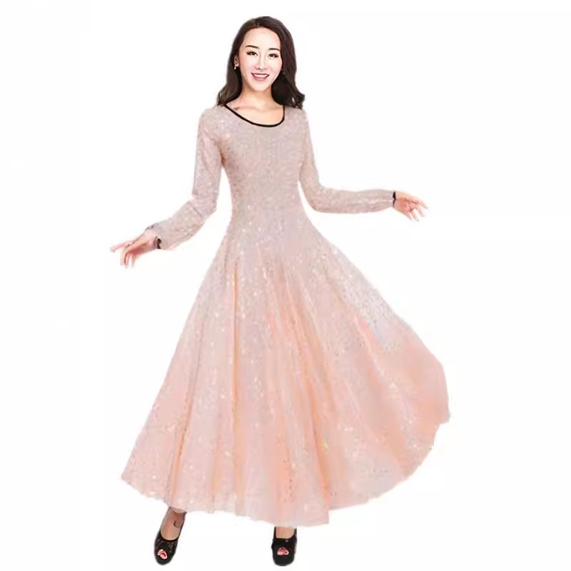 Новое платье современного танца платье платье большой качели платье с длинными рукавами