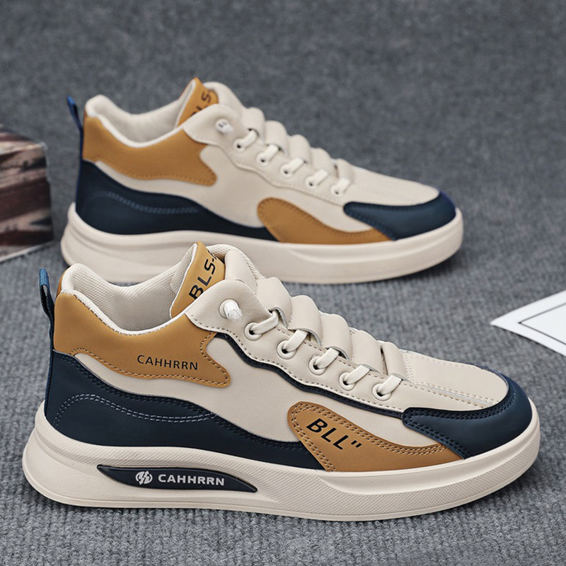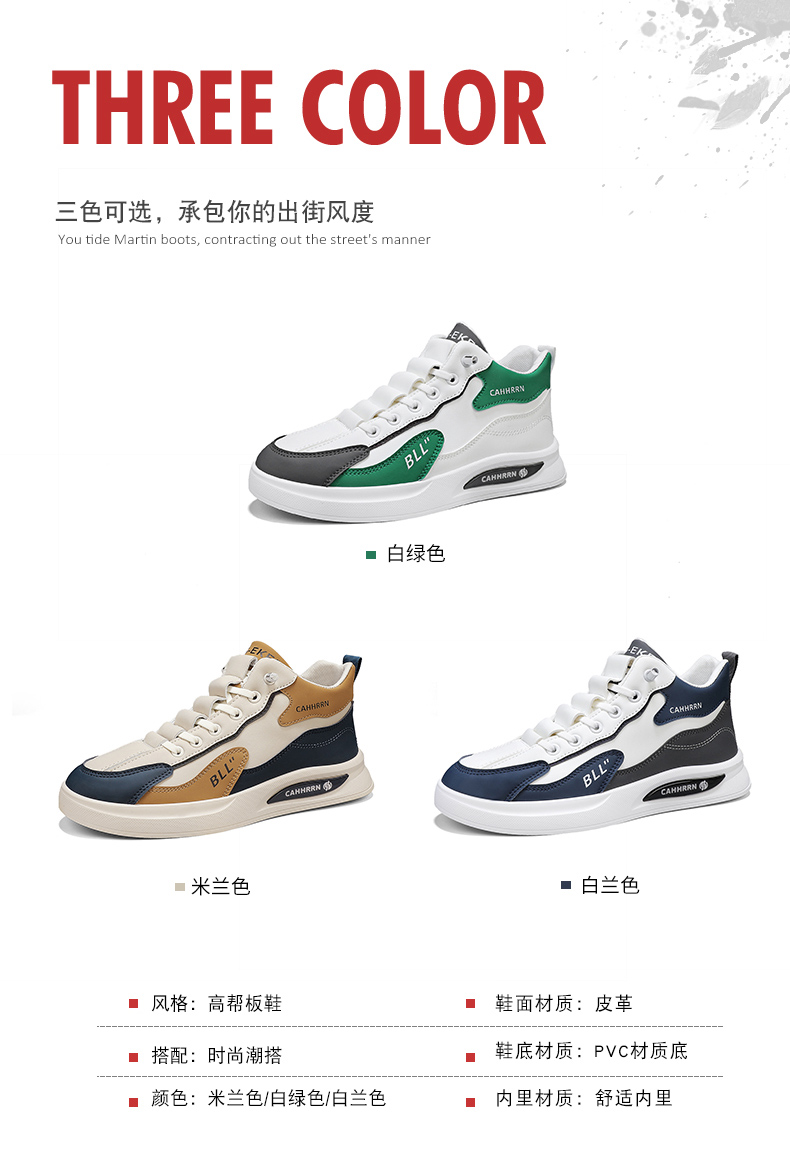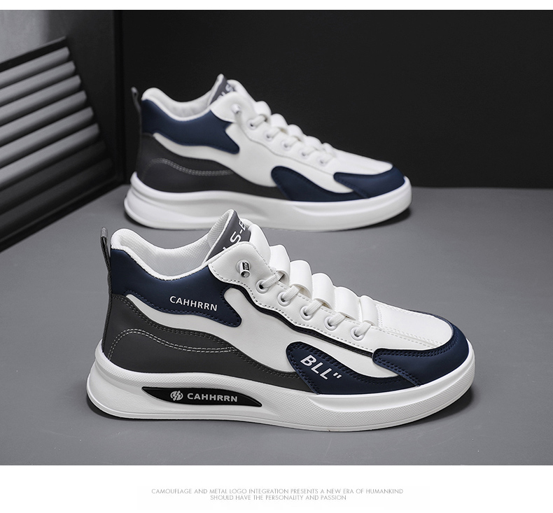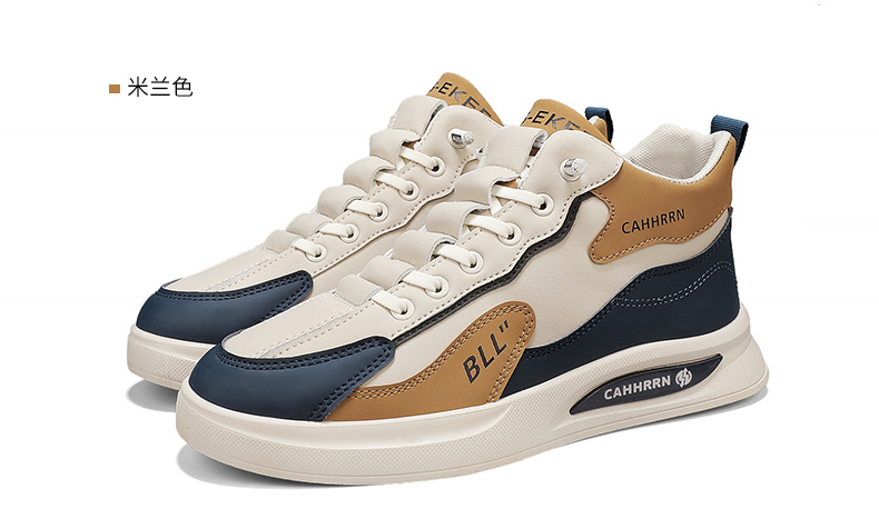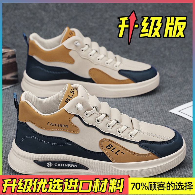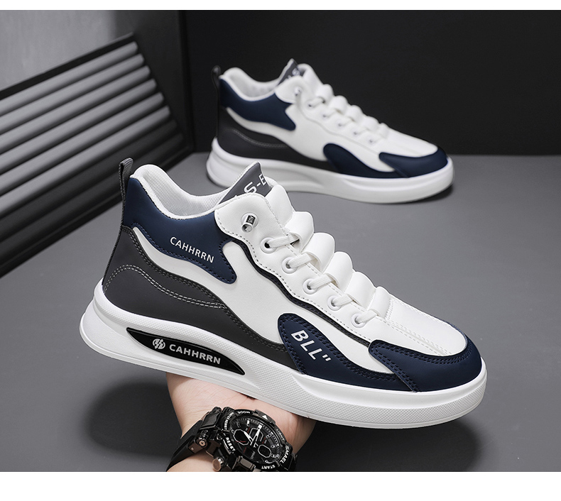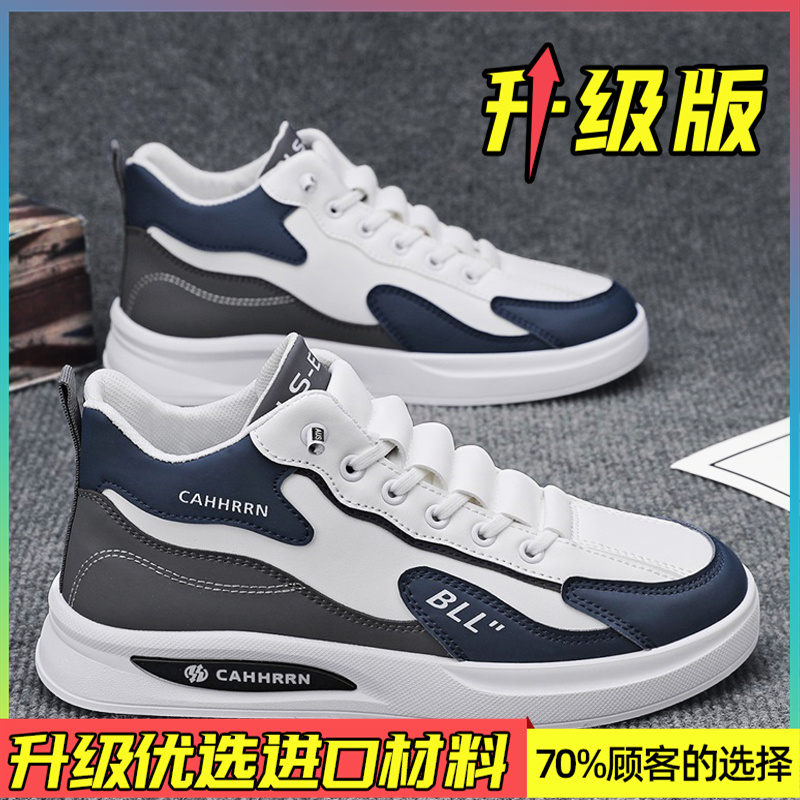 Мужская обувь, новинка 2024, осенние универсальные высокие повседневные кроссовки в корейском стиле, молодежная кожаная спортивная обувь без шнуровки