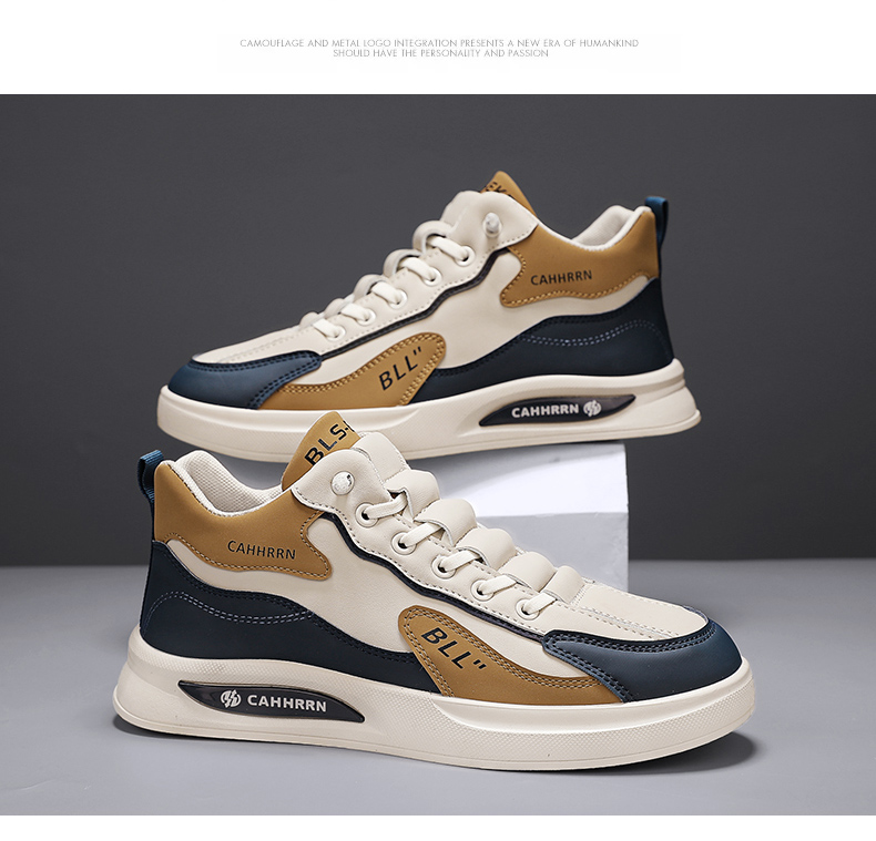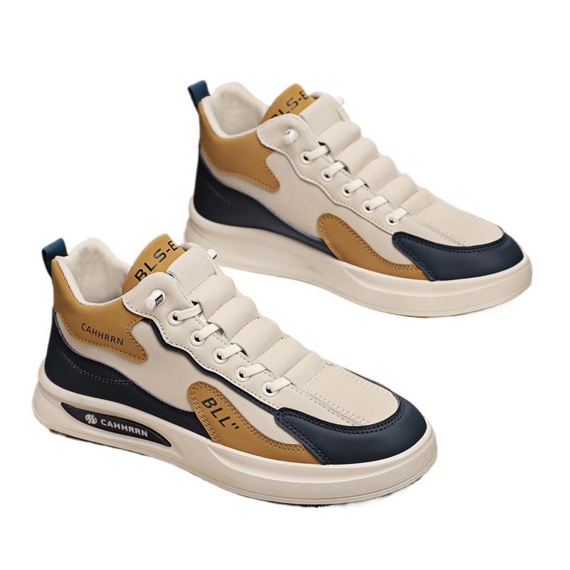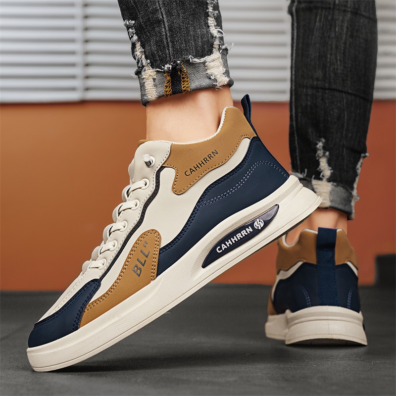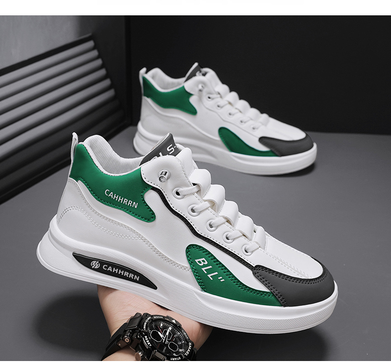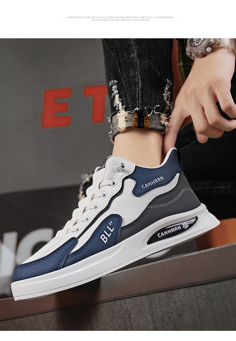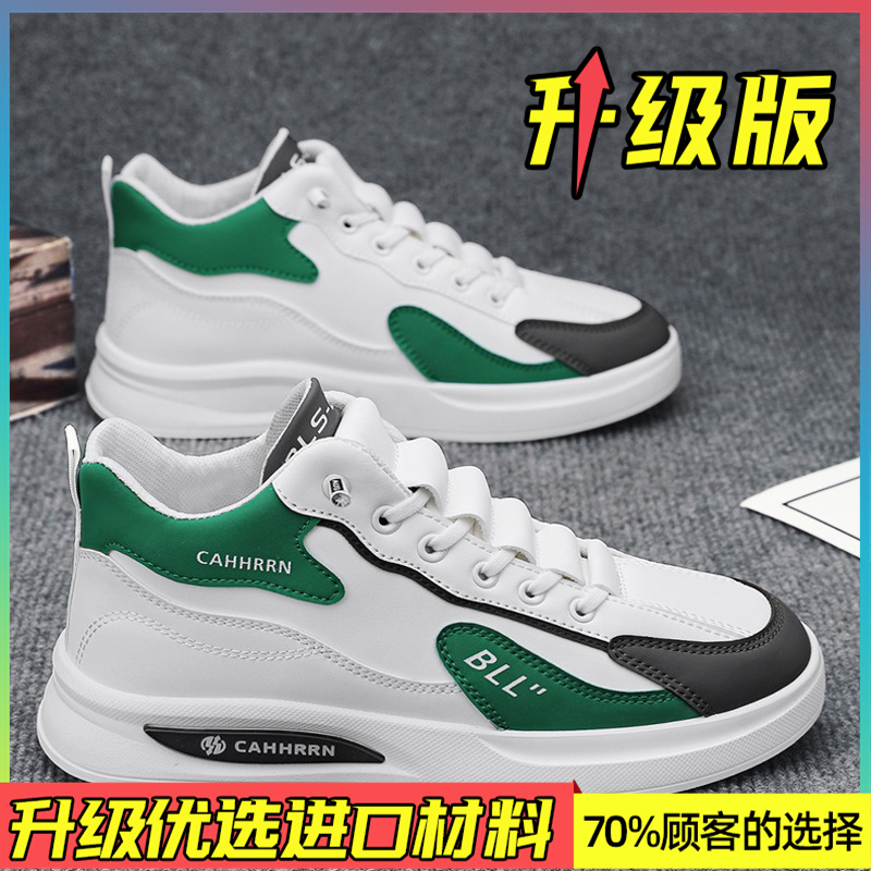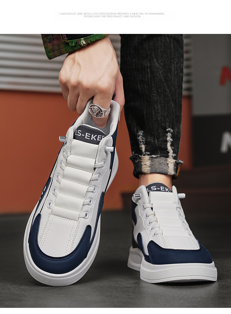 Мужская обувь, новинка 2024, осенние универсальные высокие повседневные кроссовки в корейском стиле, молодежная кожаная спортивная обувь без шнуровки