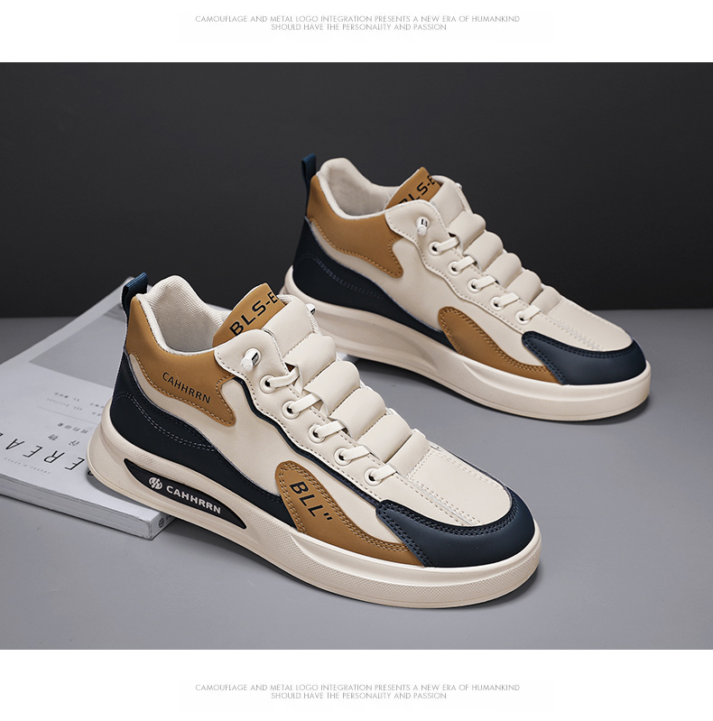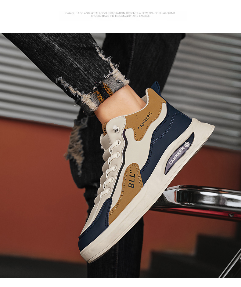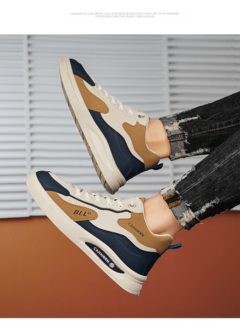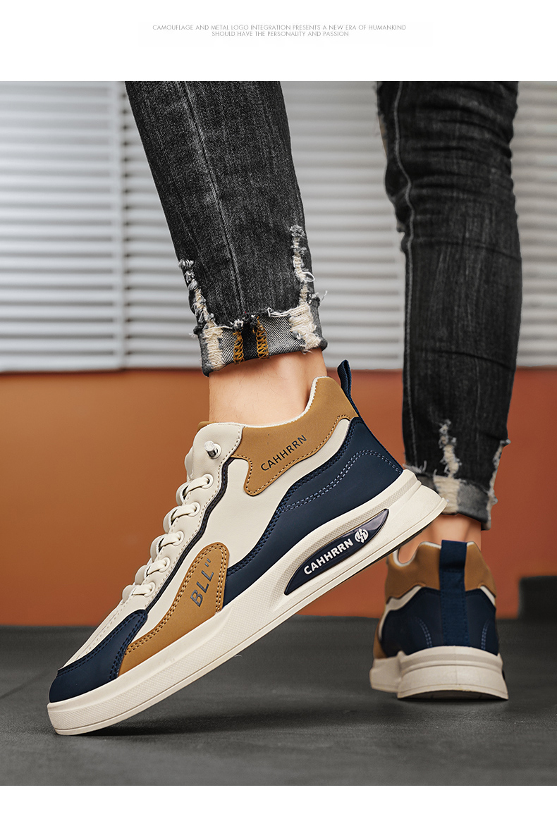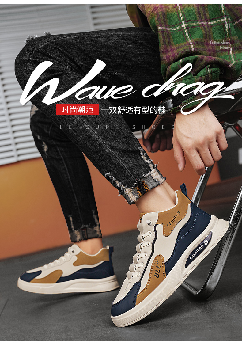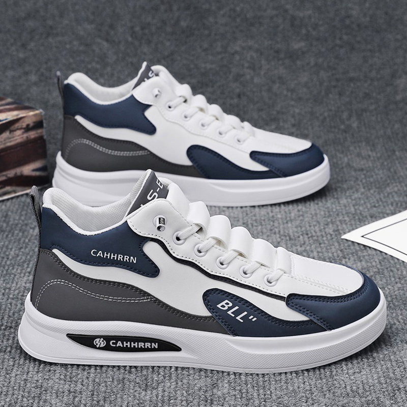 Мужская обувь, новинка 2024, осенние универсальные высокие повседневные кроссовки в корейском стиле, молодежная кожаная спортивная обувь без шнуровки