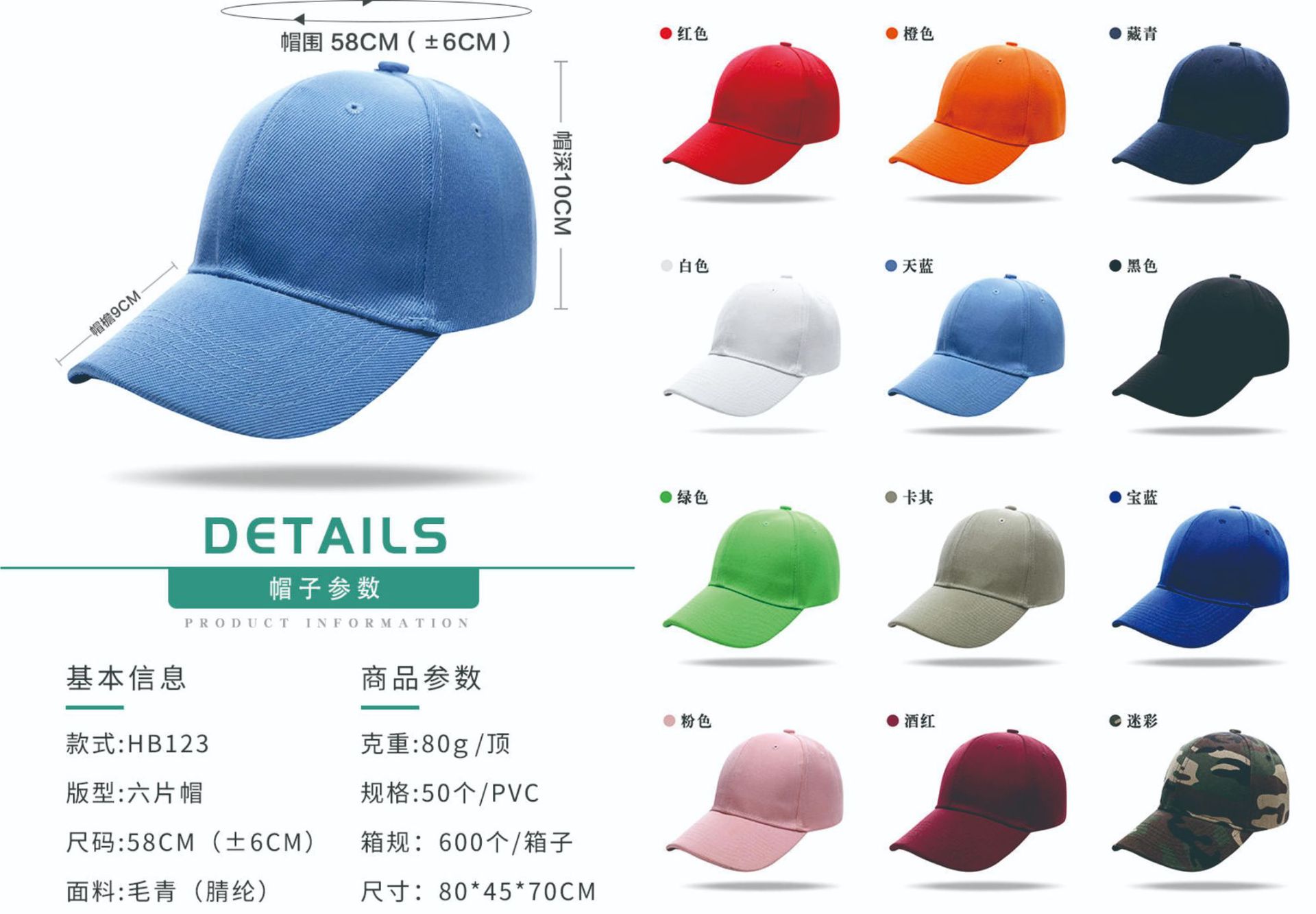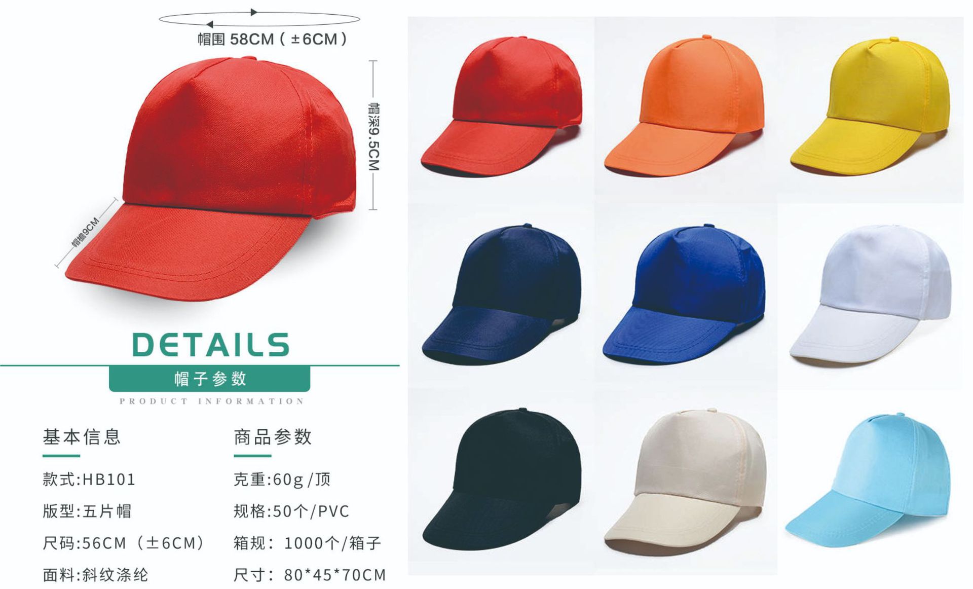 красный; черный; белый; светло-голубой; Темно-синий; молочно-белый; Шапка из шести частей из ткани Maoqing с изогнутым язычком (липучка); Саржевая пластиковая пуговица, пятисекционная крышка; Шапка Sanwenji из чистого хлопка из тонкого саржи, состоящая из пяти частей (липучка)