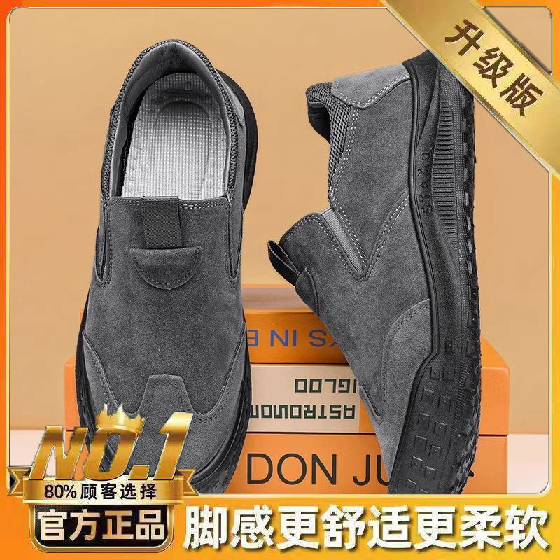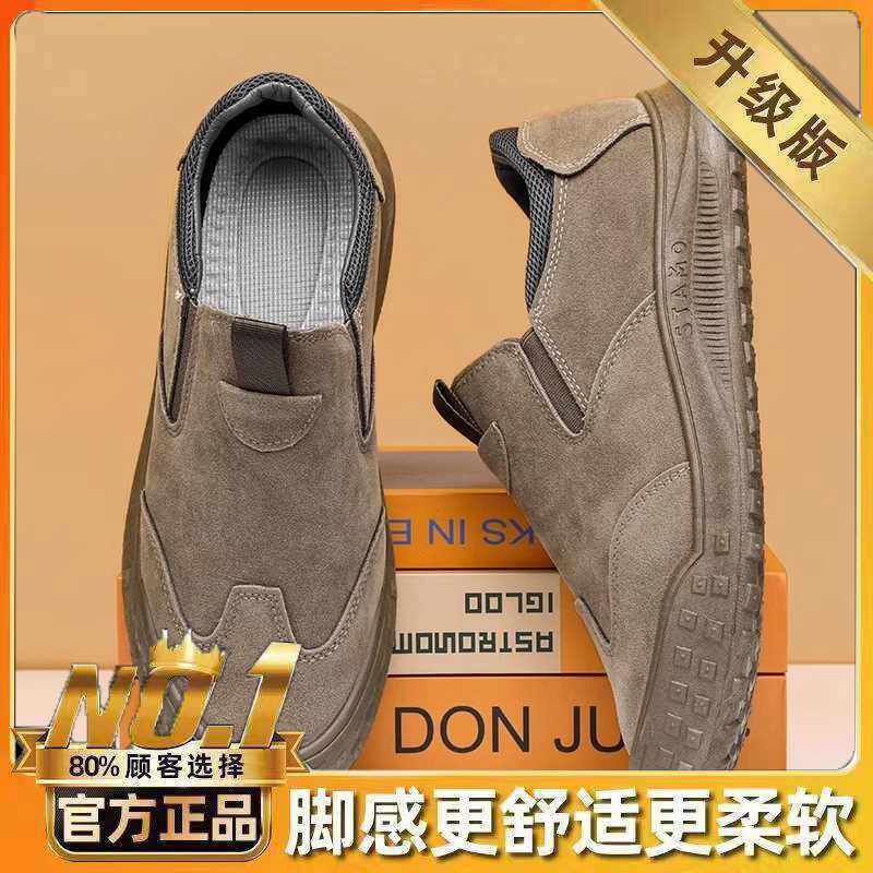 Холщовая обувь, мужская летняя дышащая рабочая мужская обувь без шнуровки, строительная площадка, защита труда, нескользящая мягкая подошва, мужская старая пекинская тканевая обувь