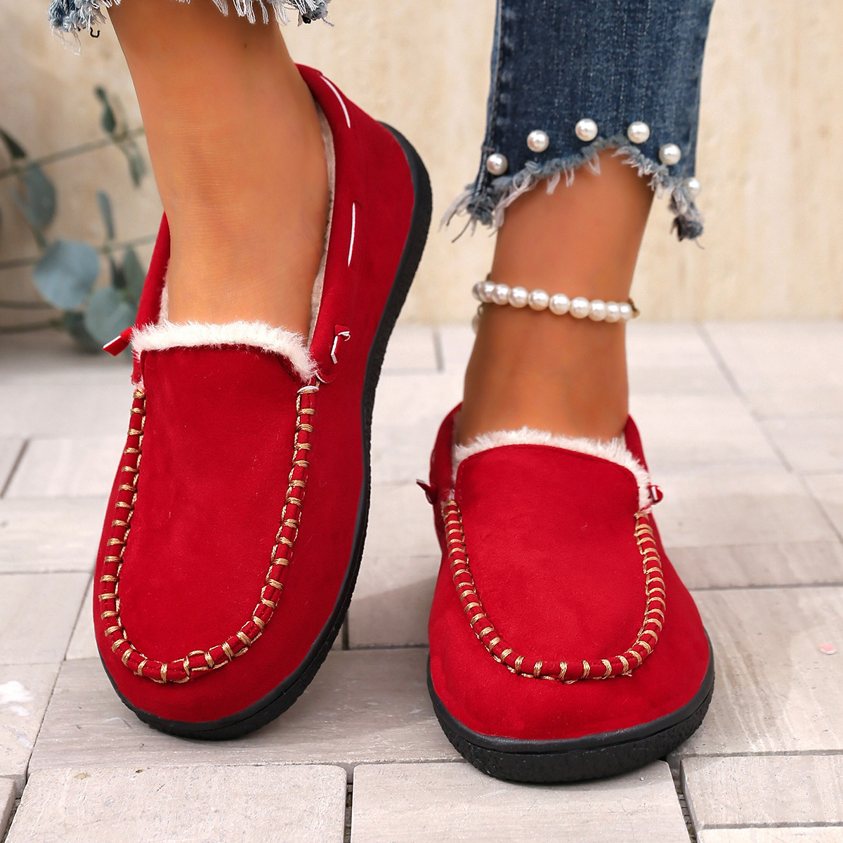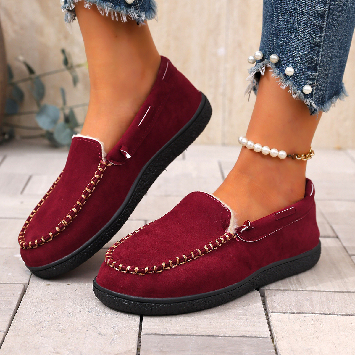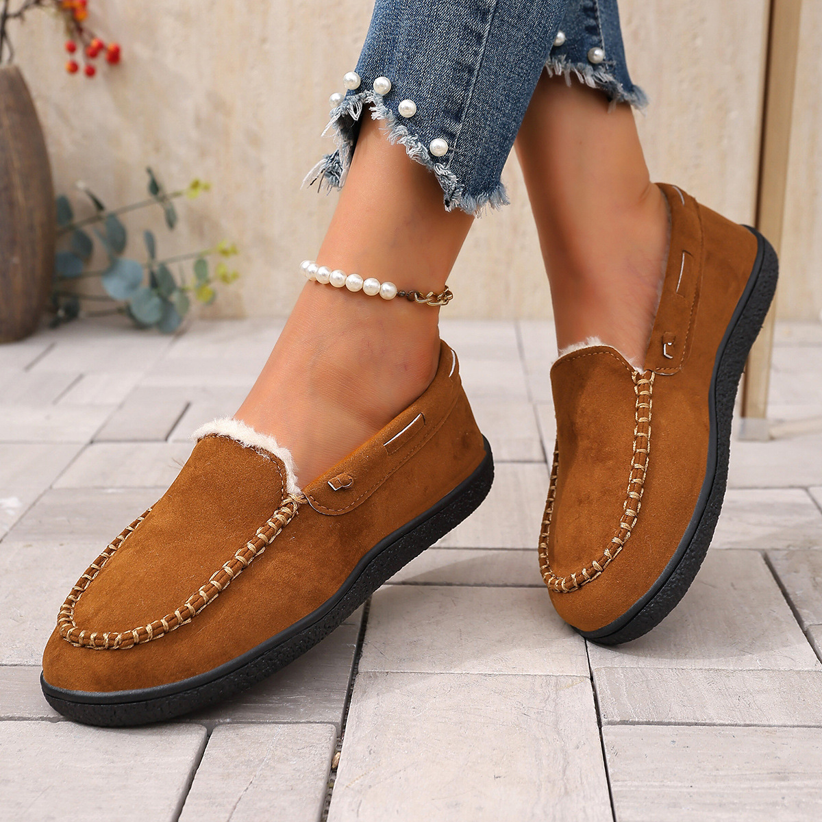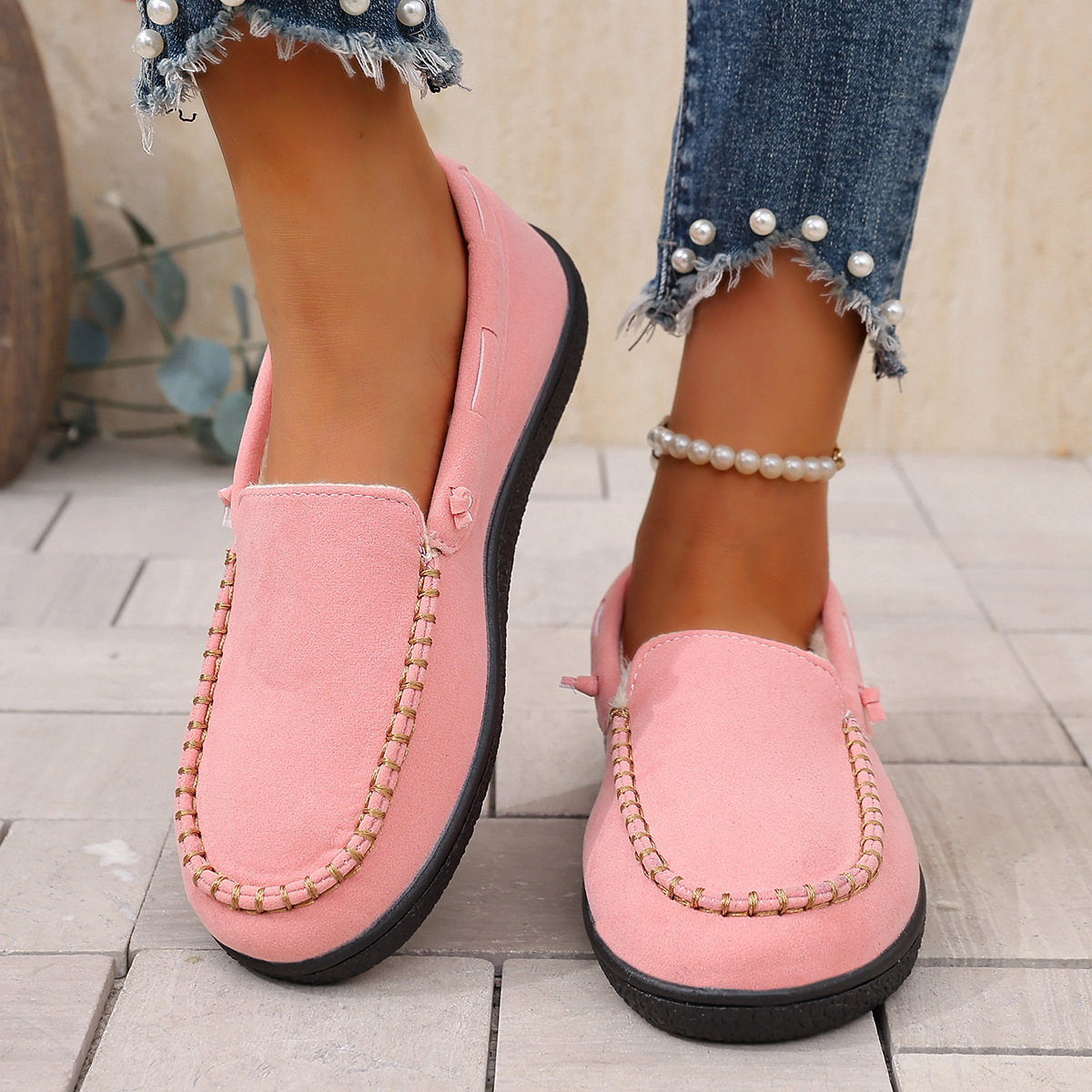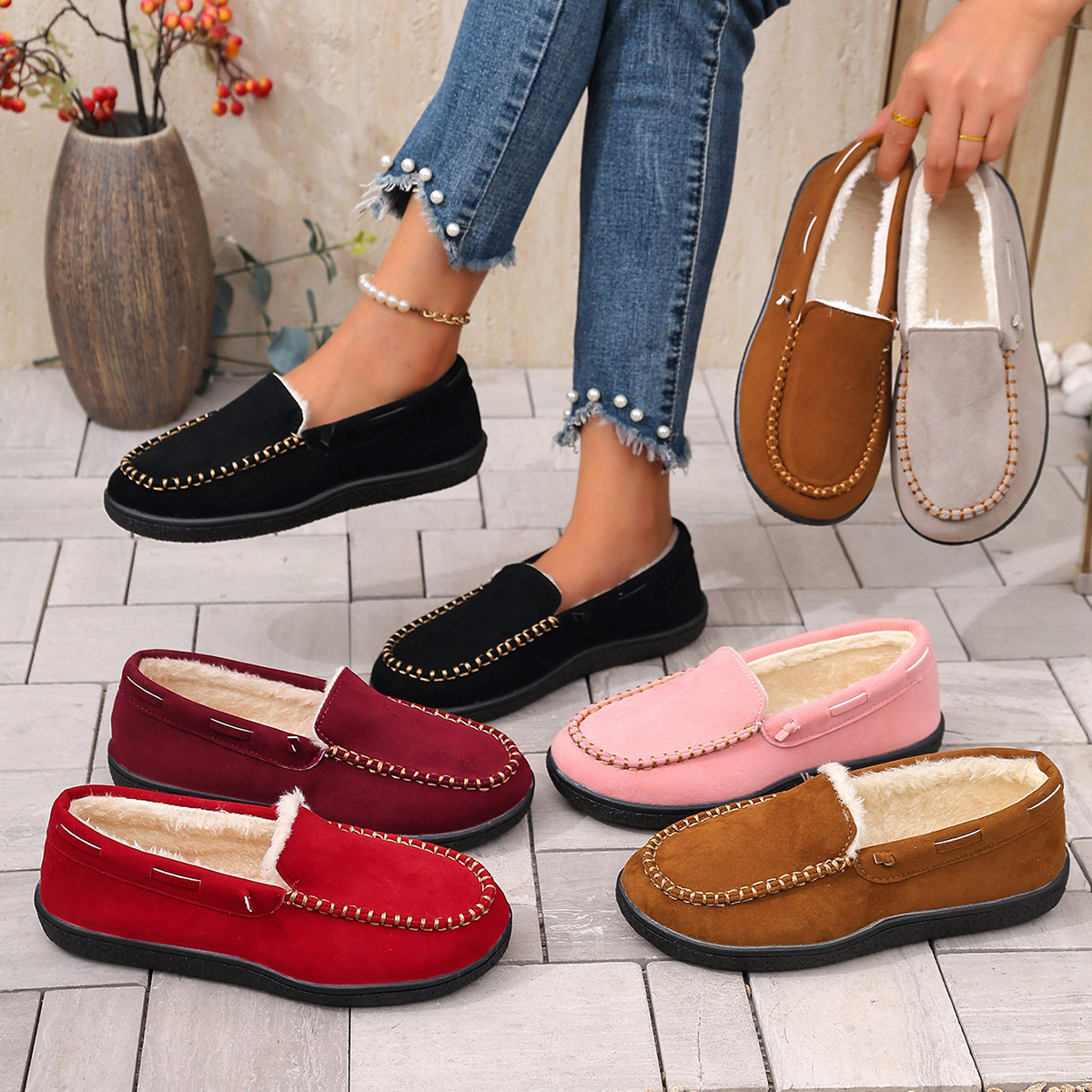 Трансграничные 2024 зимние новые теплые повседневные бобовые ботинки женские мак линии круглые головы все включено для ношения хлопчатобумажной обуви