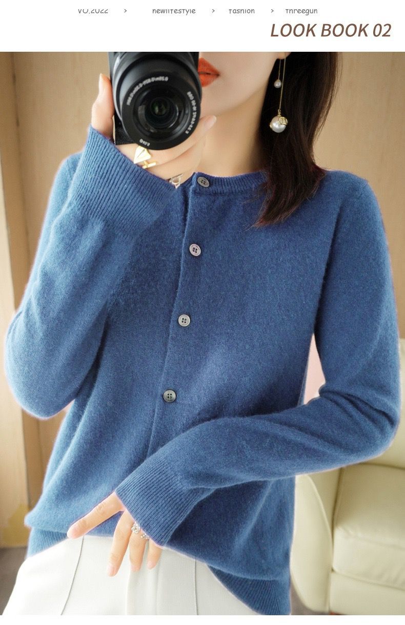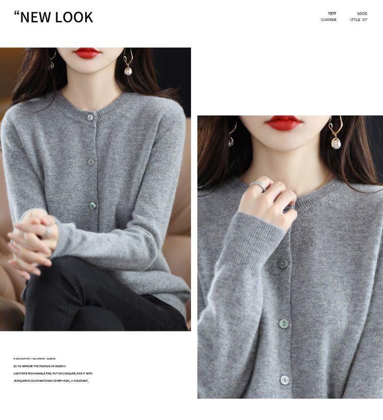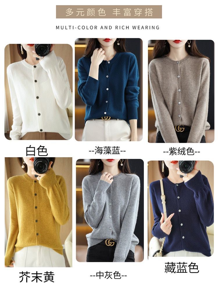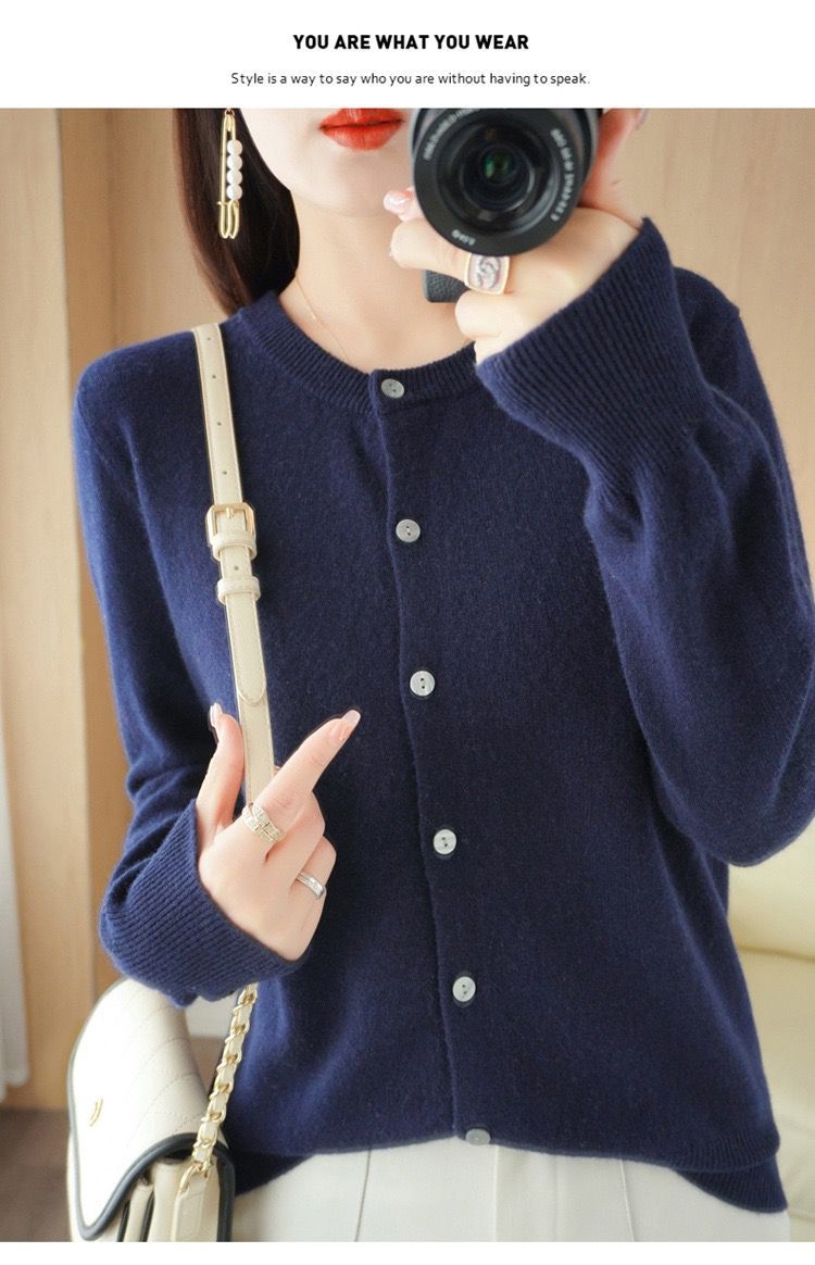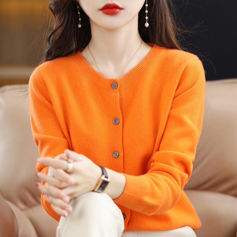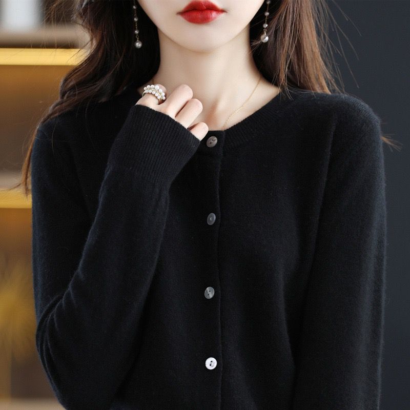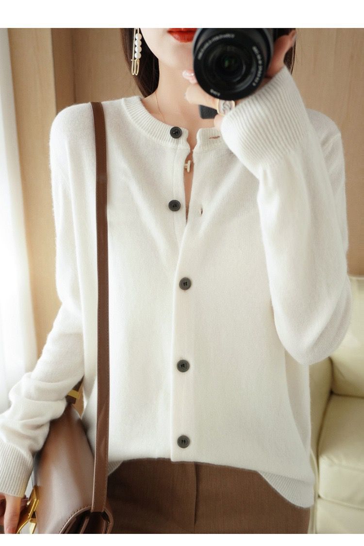 Новый вязаный кардиган 2025 года, весенний свитер с круглым вырезом, женская однотонная универсальная куртка с длинными рукавами, женская одежда, дропшиппинг