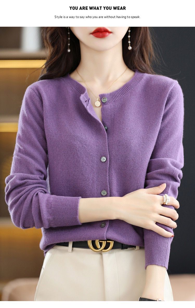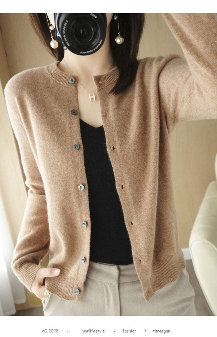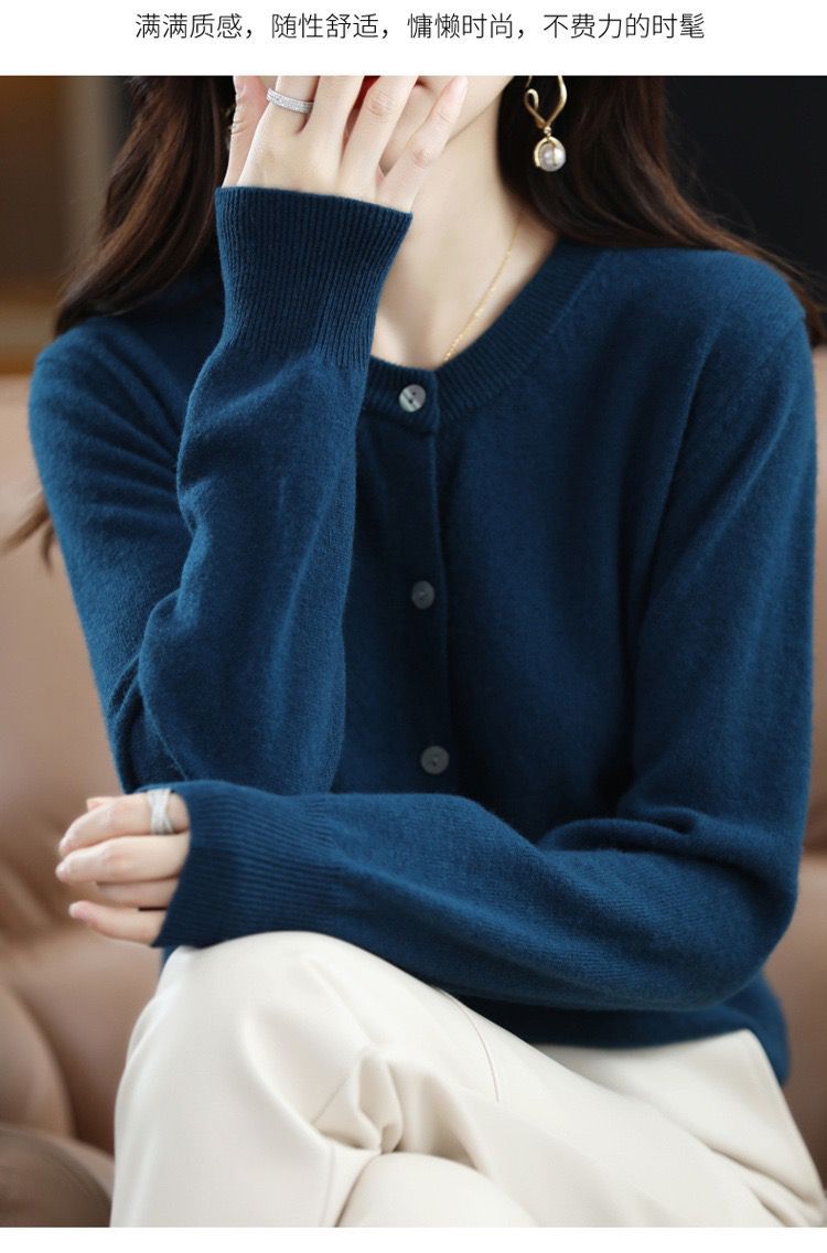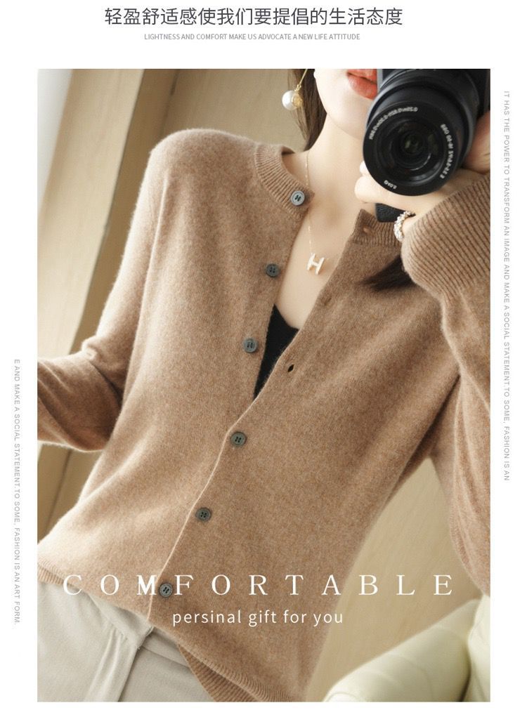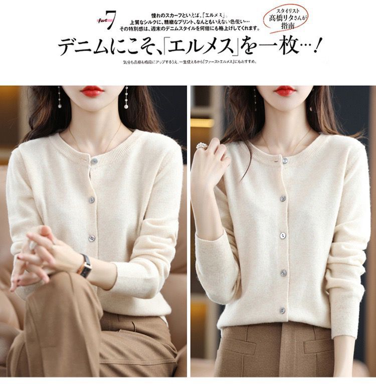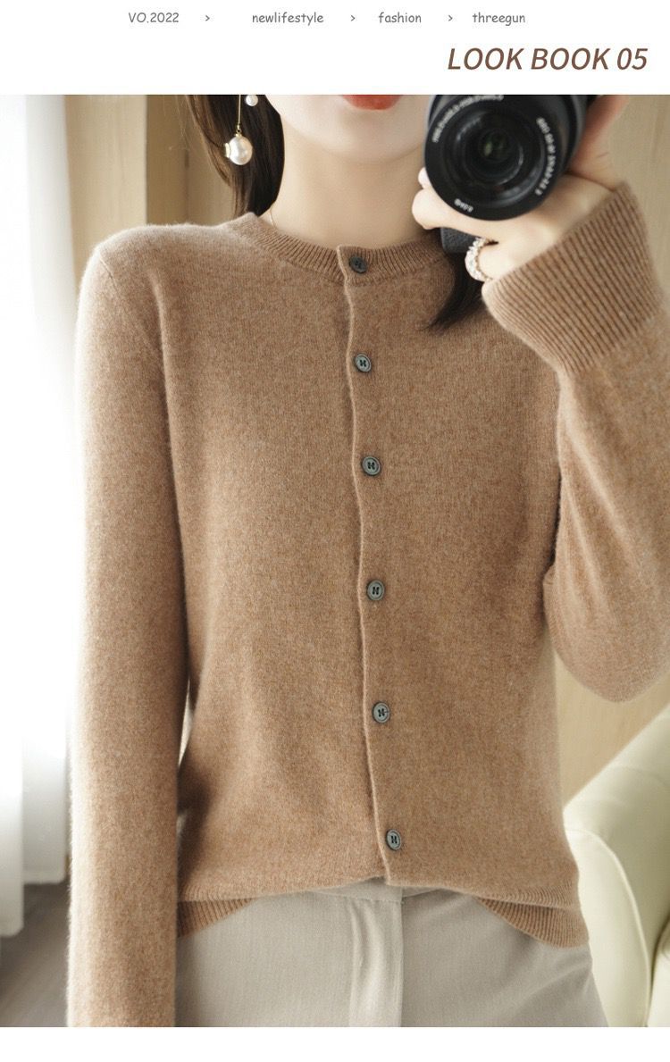 Новый вязаный кардиган 2025 года, весенний свитер с круглым вырезом, женская однотонная универсальная куртка с длинными рукавами, женская одежда, дропшиппинг