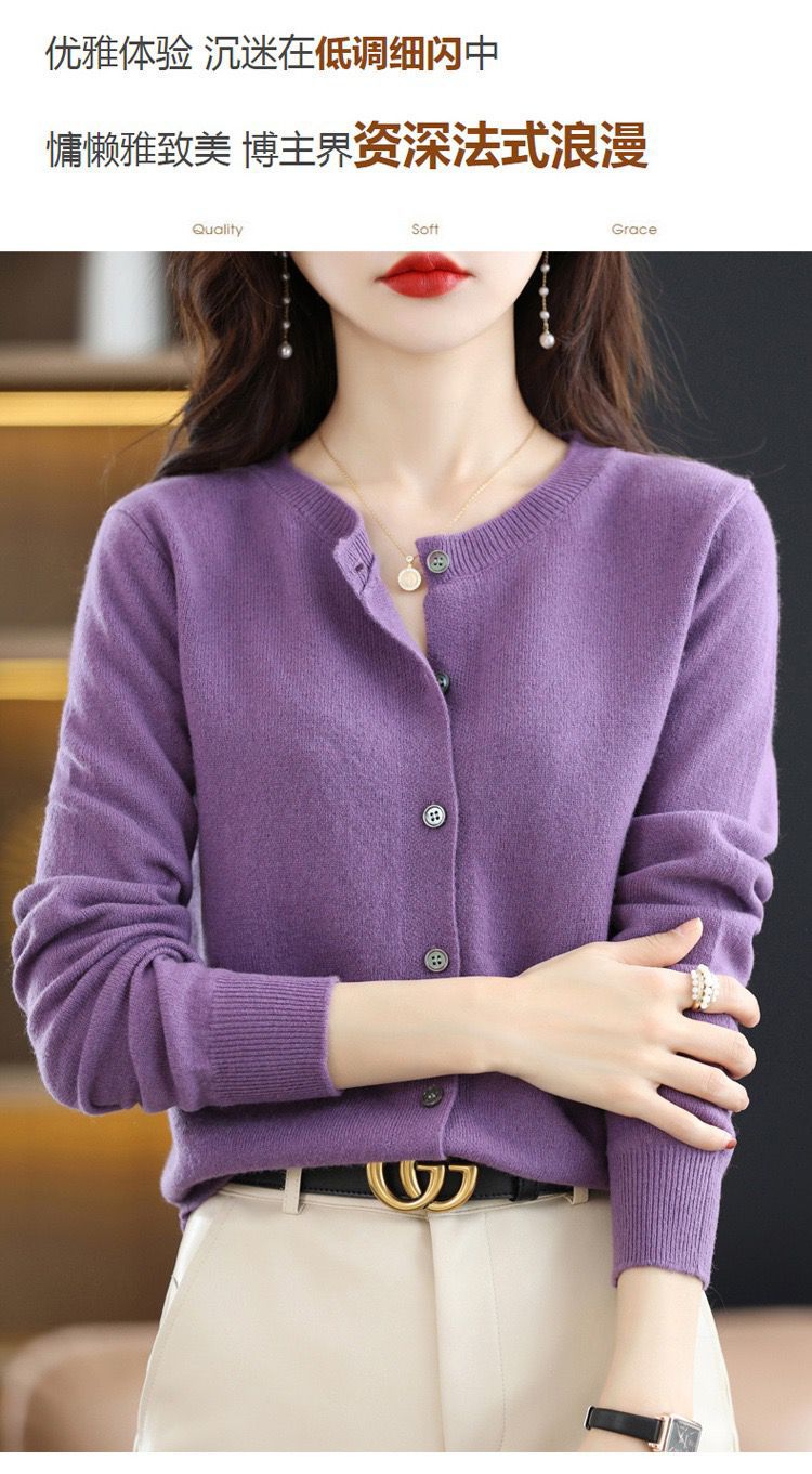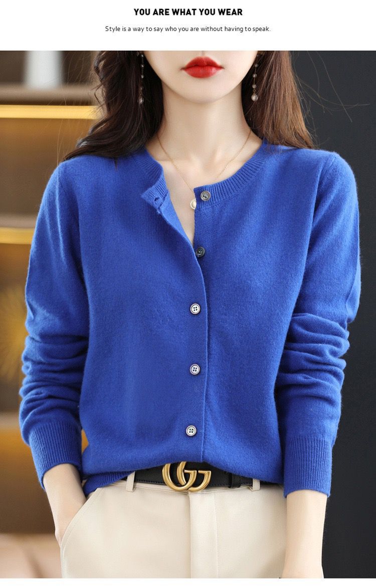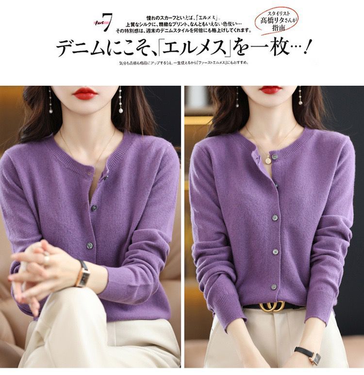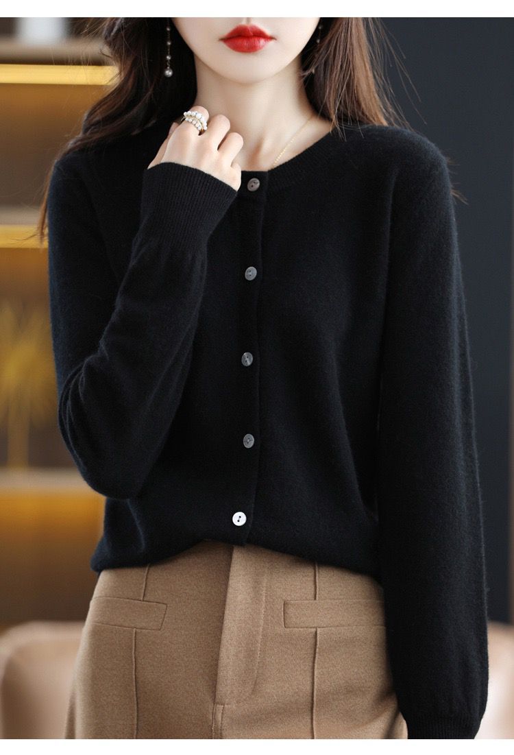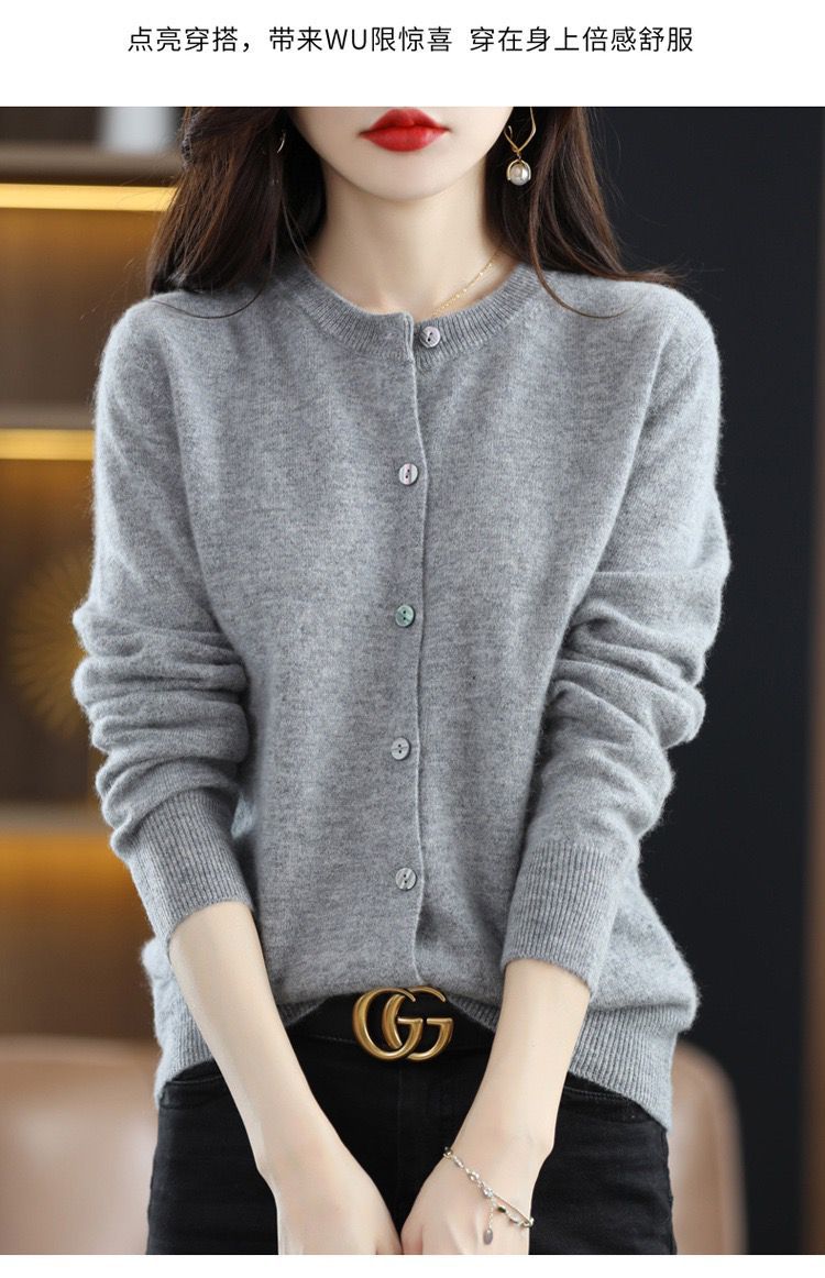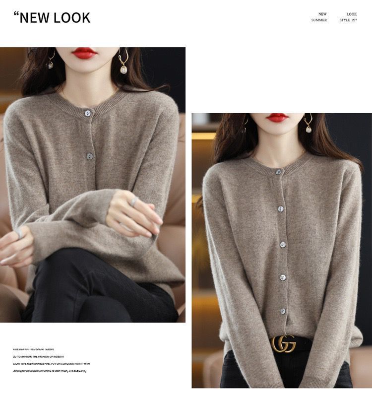 Новый вязаный кардиган 2025 года, весенний свитер с круглым вырезом, женская однотонная универсальная куртка с длинными рукавами, женская одежда, дропшиппинг