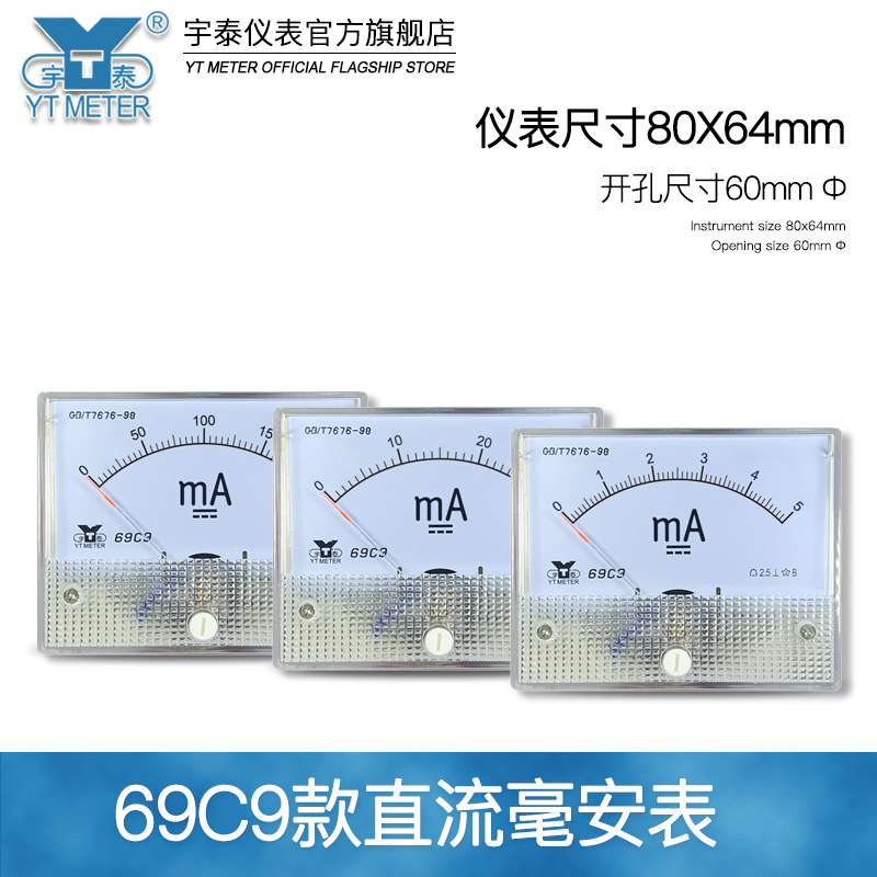 69c9-ma постоянного тока миллиампер 1ma 20ma 30ma 50ma 300ma указатель dc 64*80mm