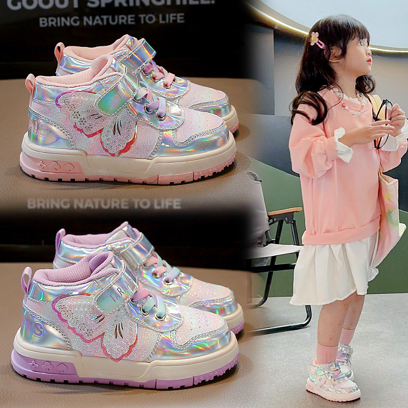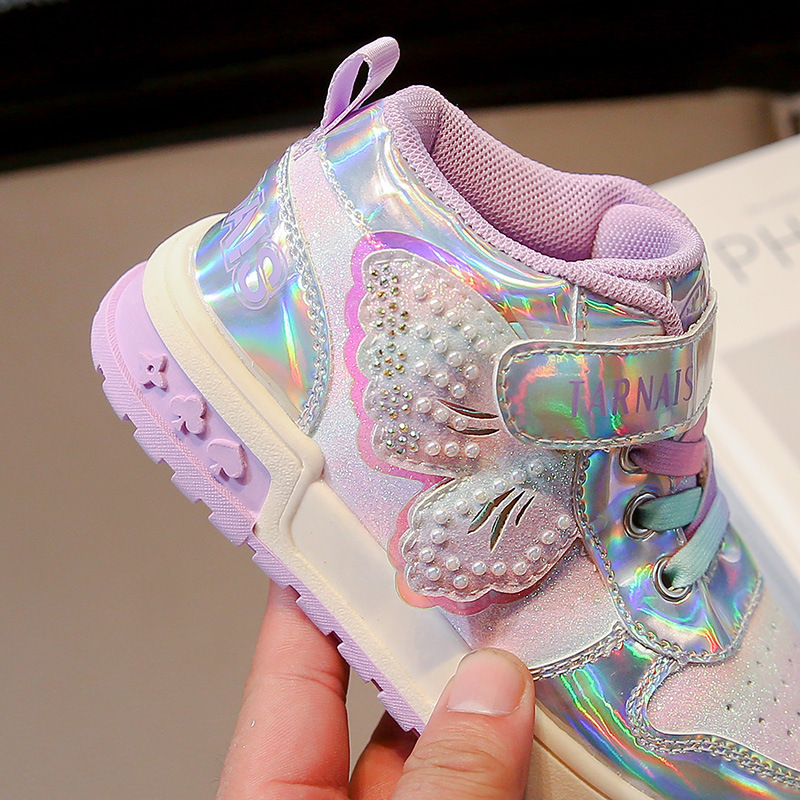 Детская повседневная обувь для девочек со стразами и бабочками 2024 осень новая детская мода