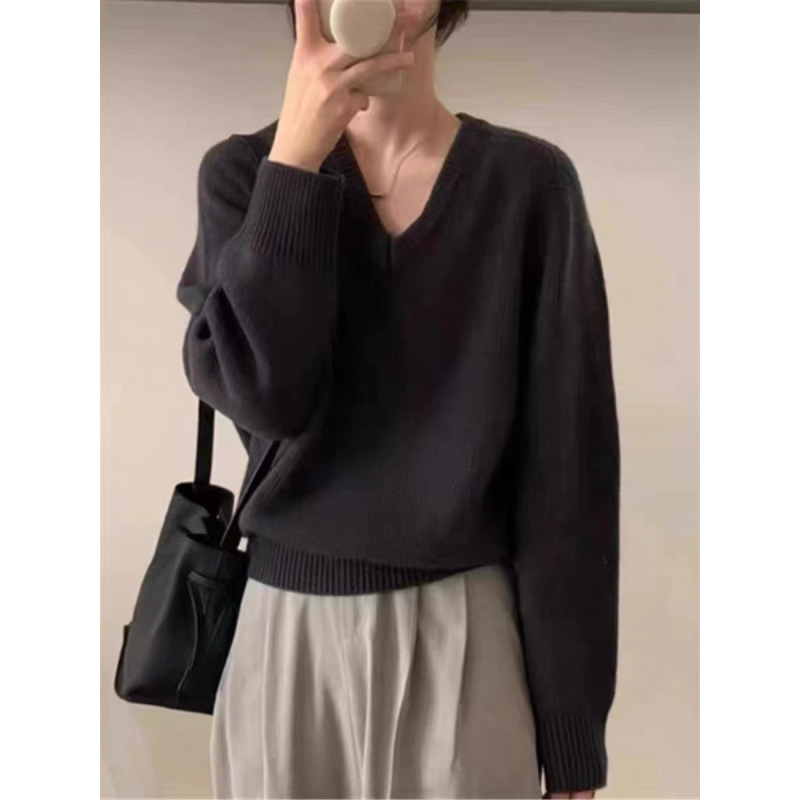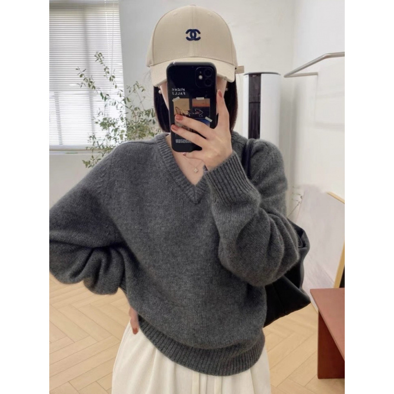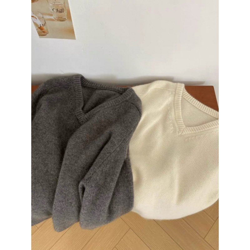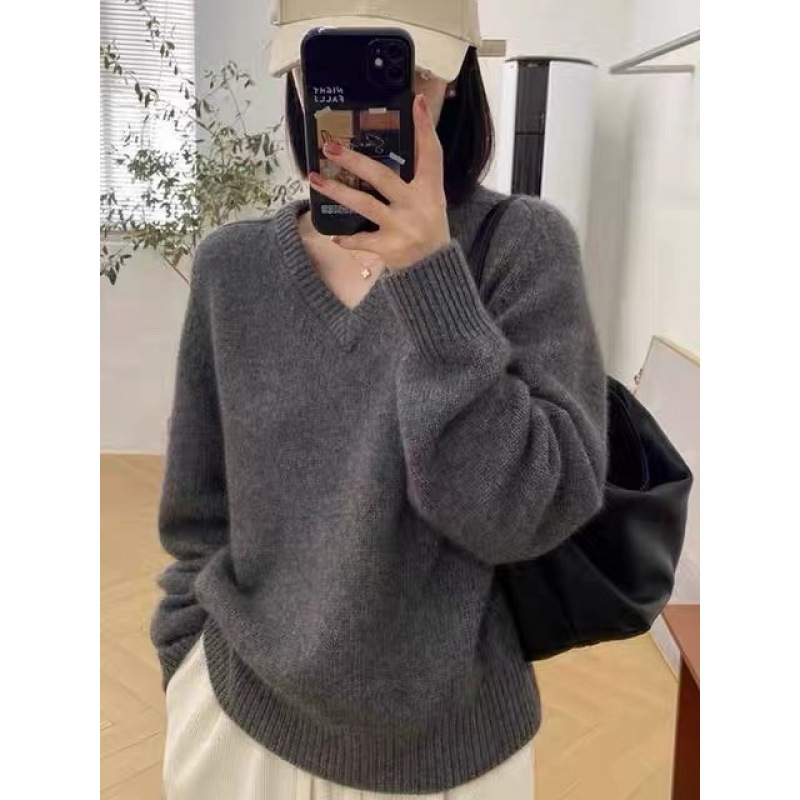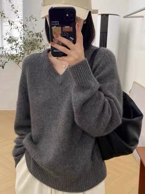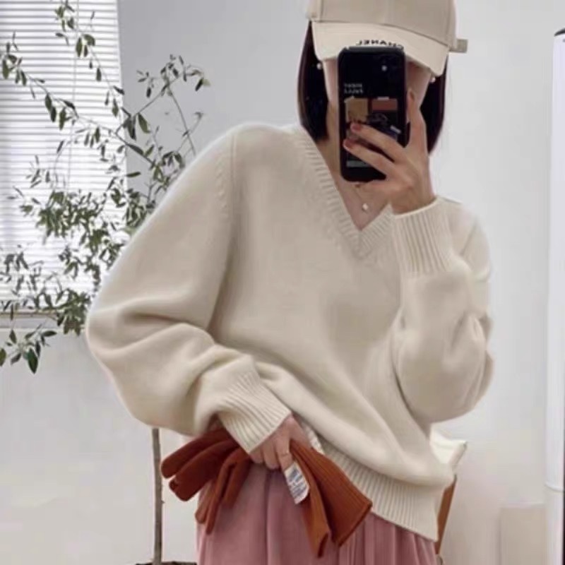 Европейский v-образный воротник 100% чистый шерстяной свитер женский осенний и зимний свободный мягкий клейкий низкий воротник кашемир толстый нижний повседневный свитер