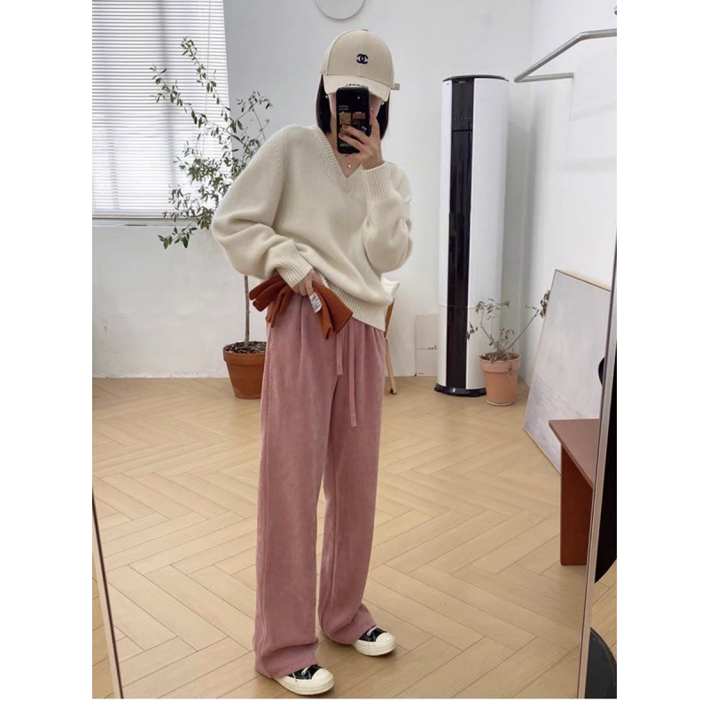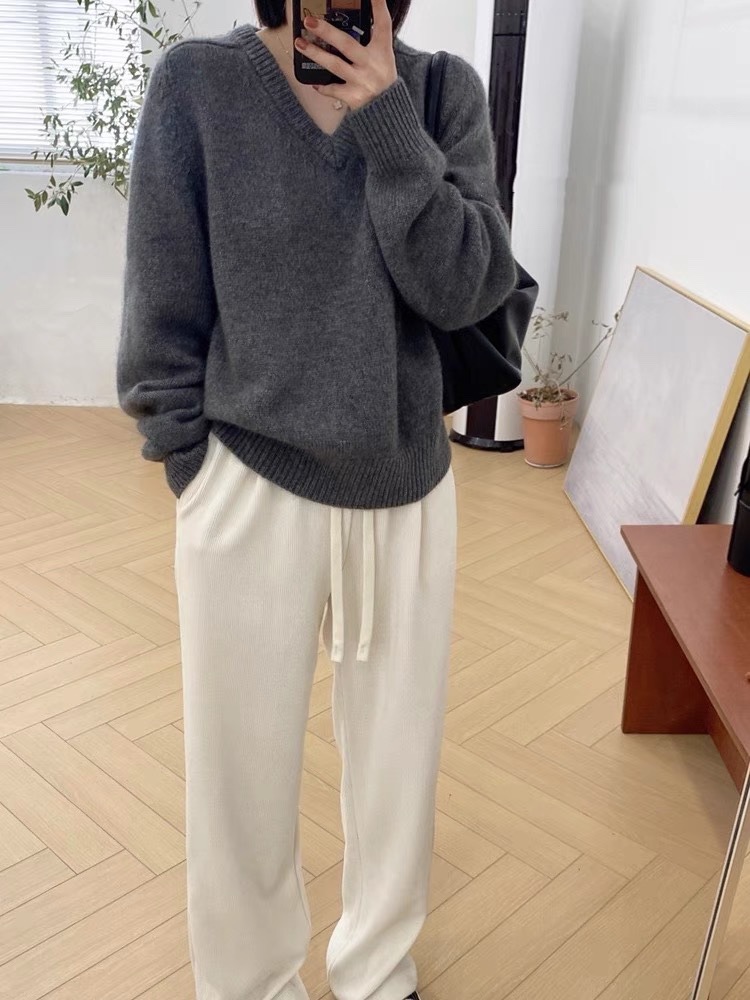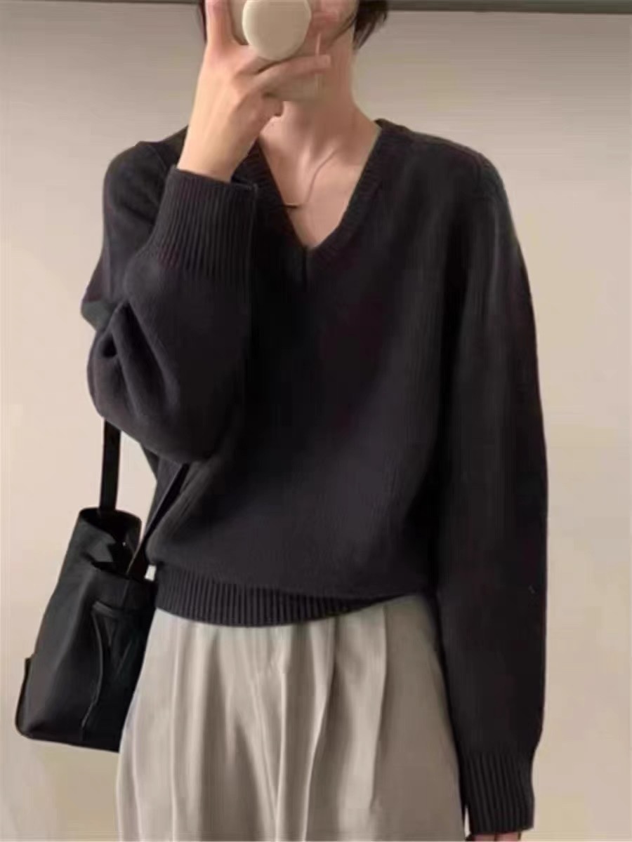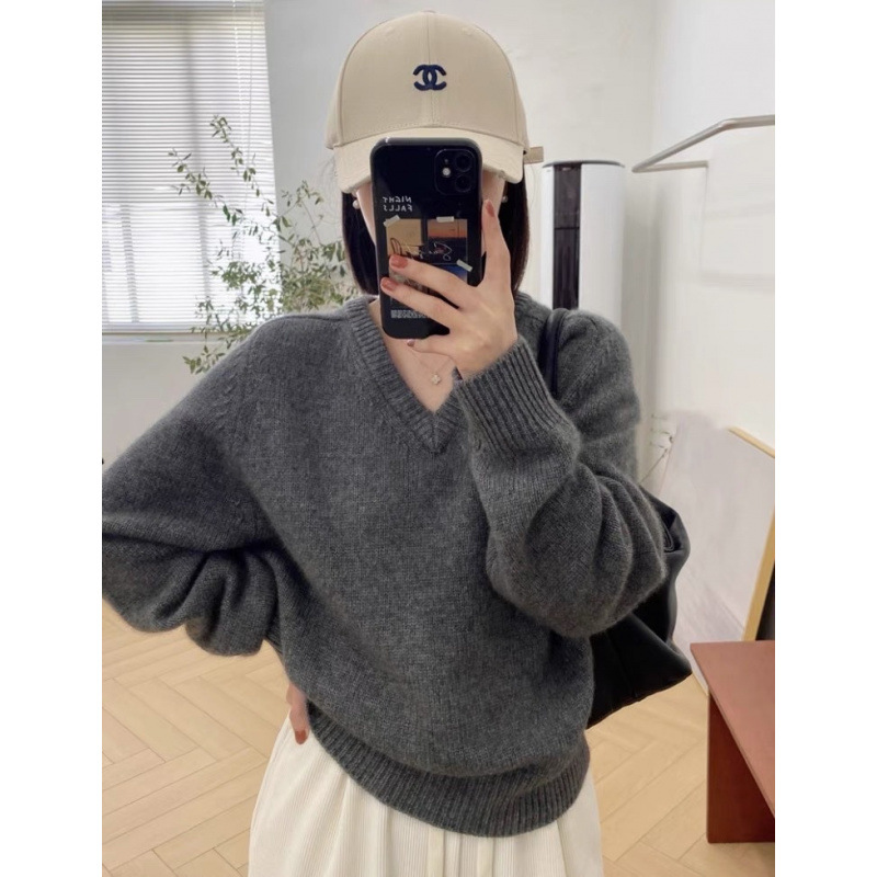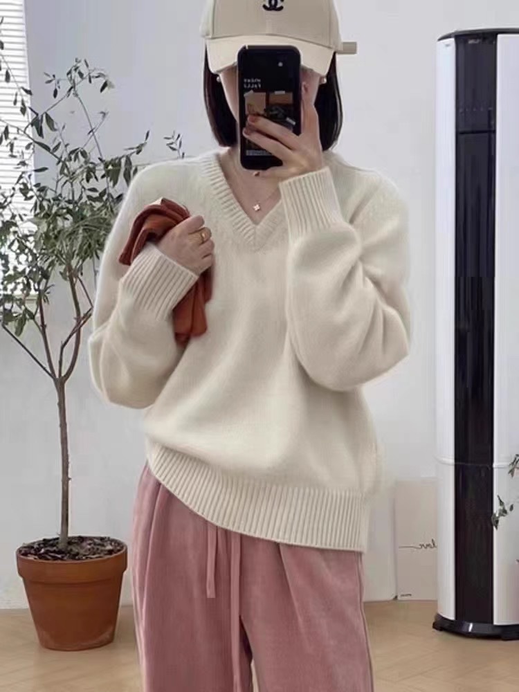 Европейский v-образный воротник 100% чистый шерстяной свитер женский осенний и зимний свободный мягкий клейкий низкий воротник кашемир толстый нижний повседневный свитер