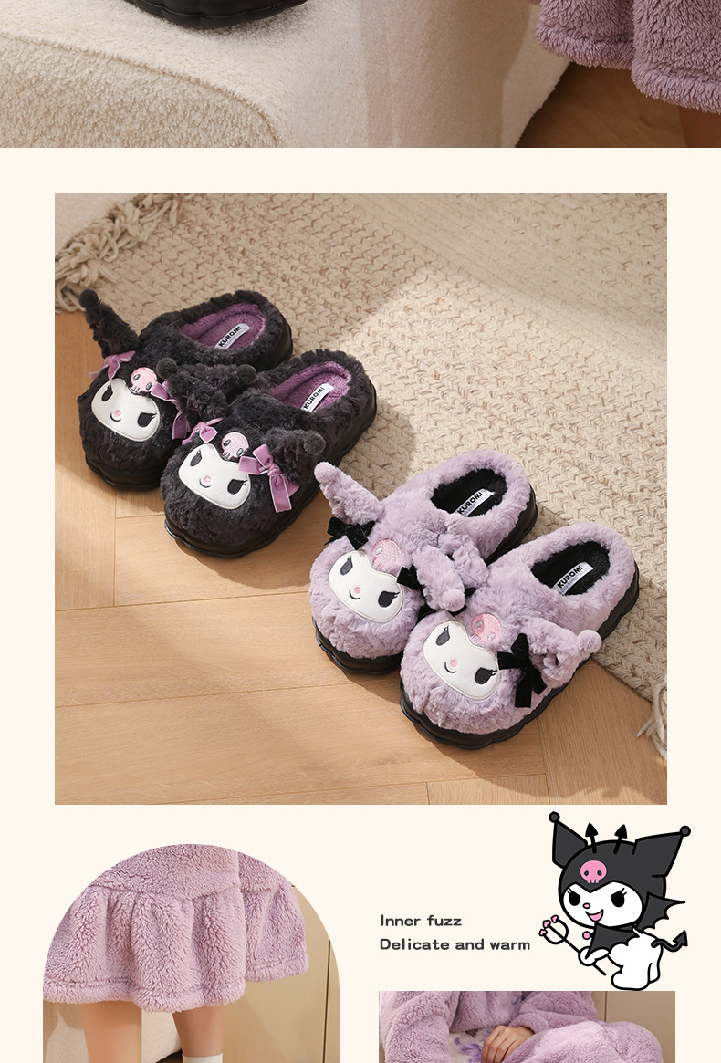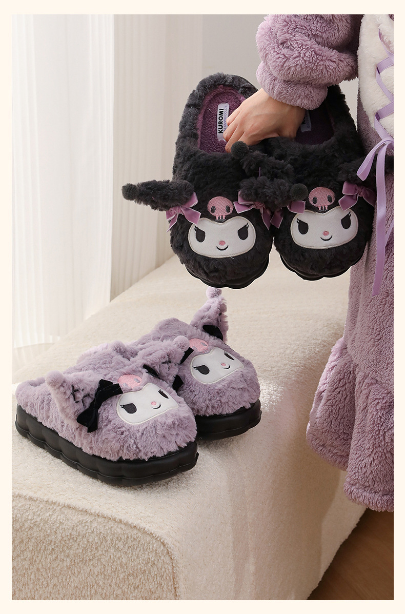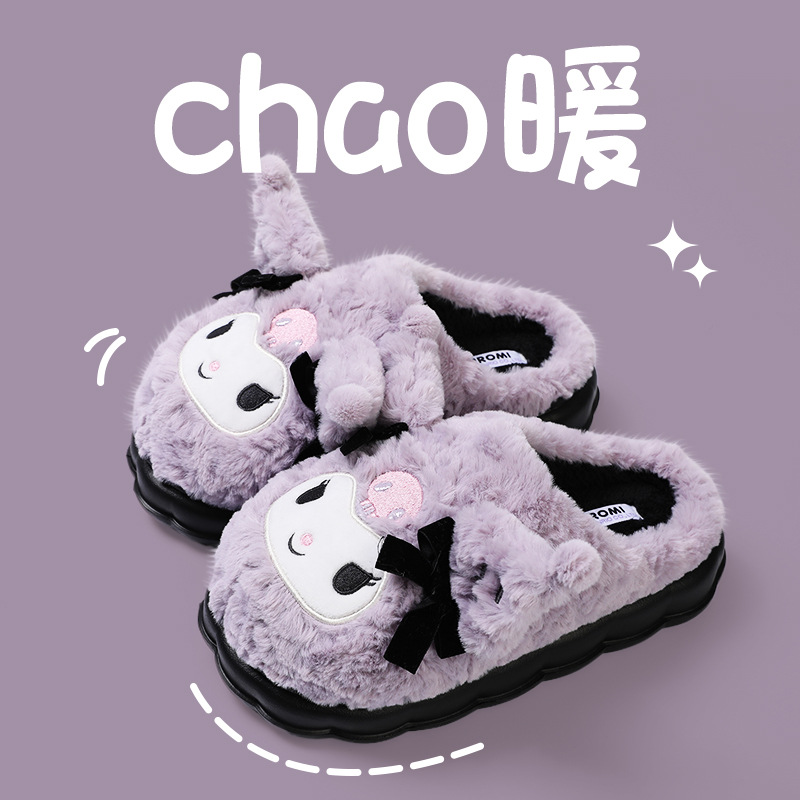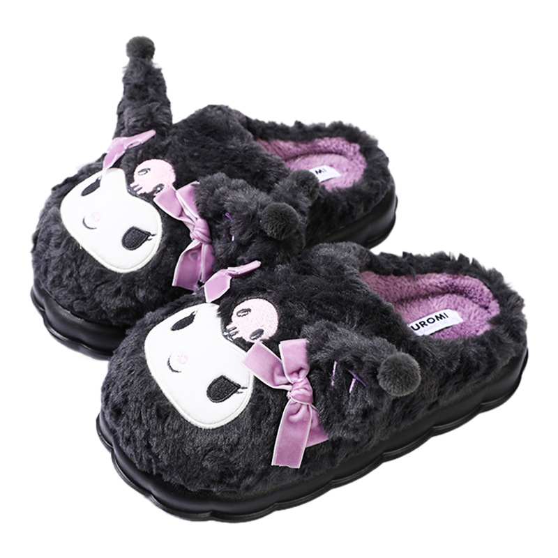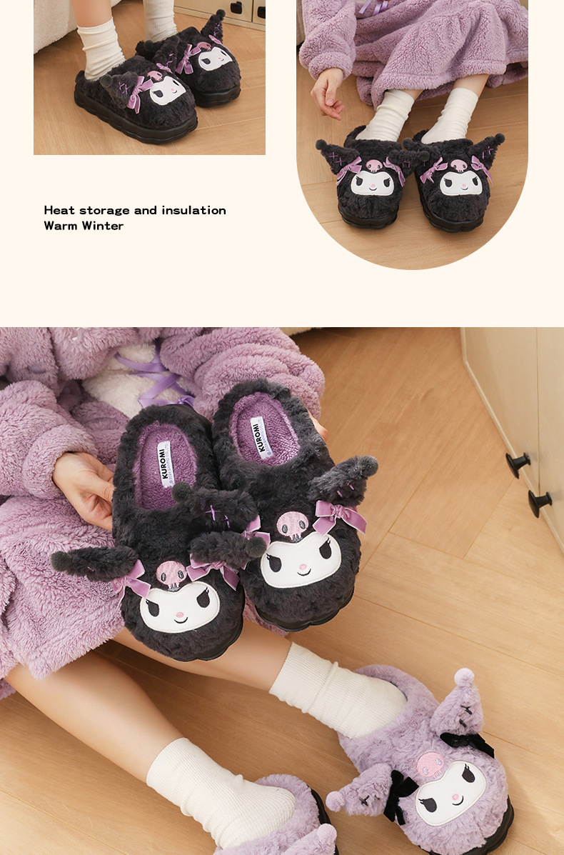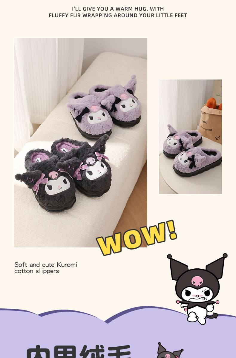 Тапочки Nanbo Wan Kuromi из хлопка для женщин, осенне-зимние домашние милые мультяшные тапочки Sanrio для родителей и детей, пушистые закрытые тапочки