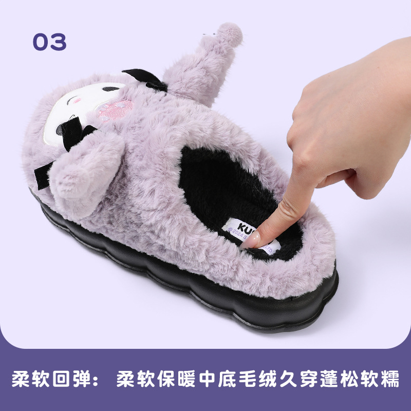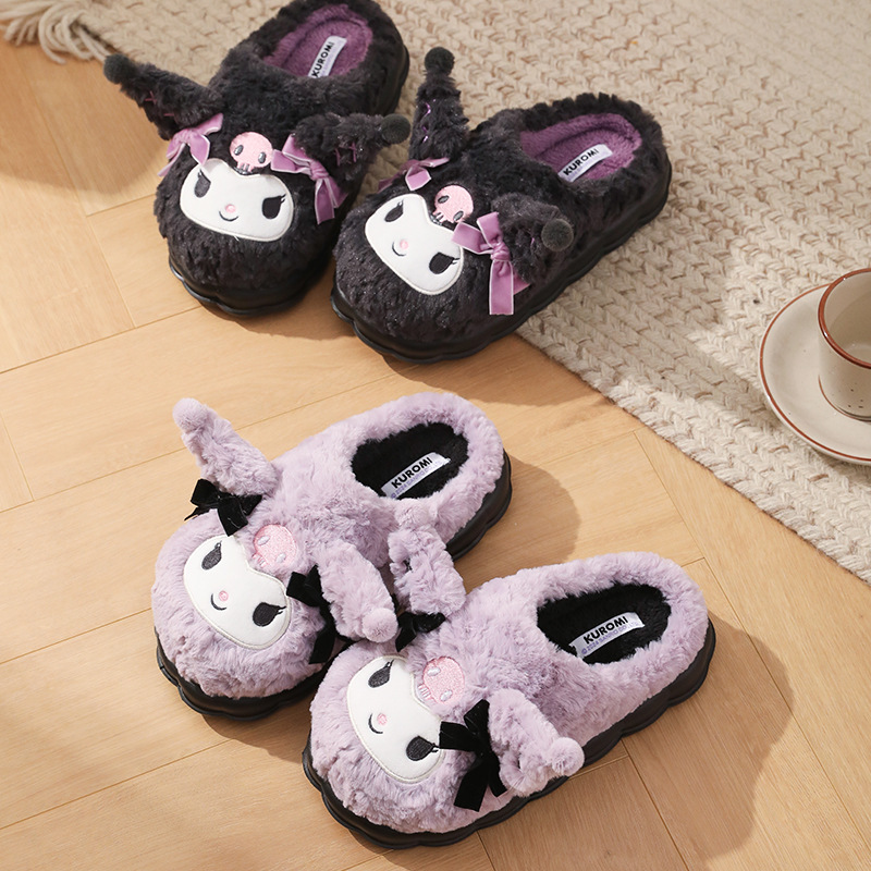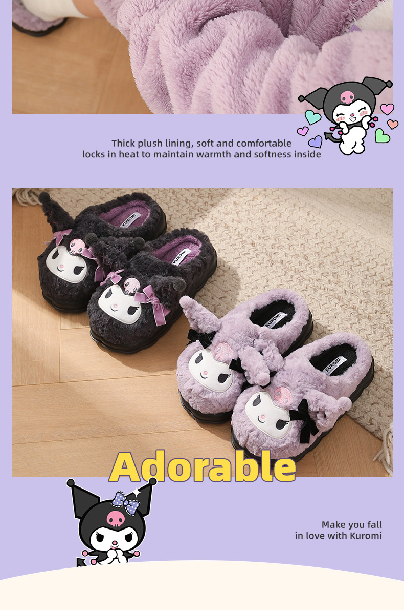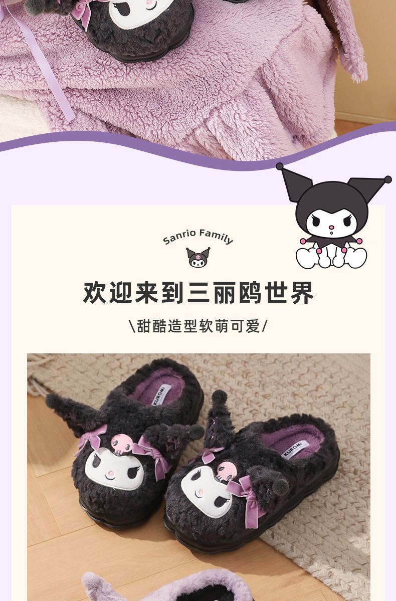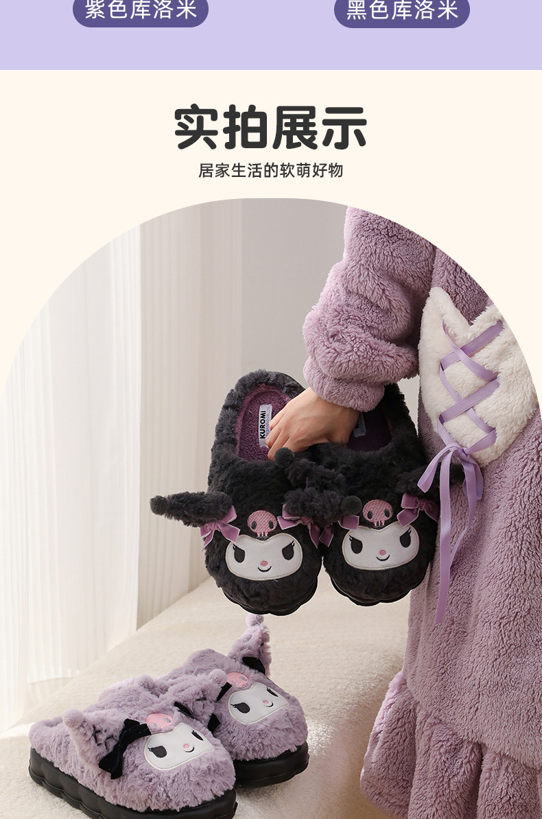 Тапочки Nanbo Wan Kuromi из хлопка для женщин, осенне-зимние домашние милые мультяшные тапочки Sanrio для родителей и детей, пушистые закрытые тапочки