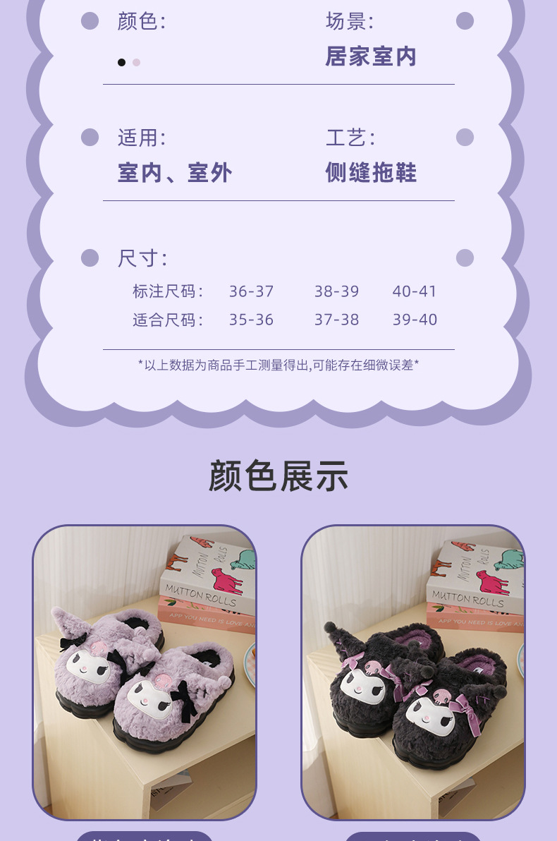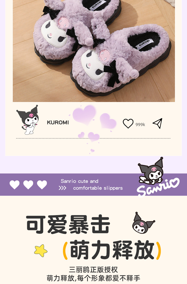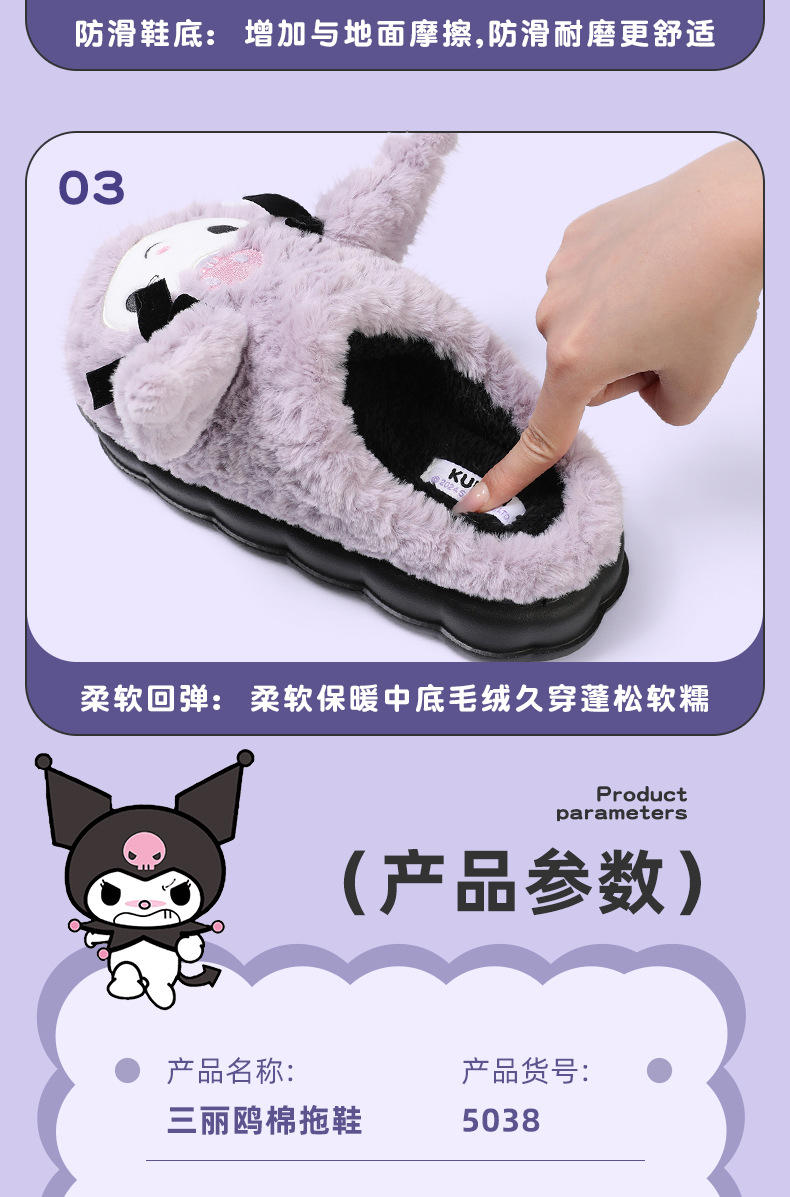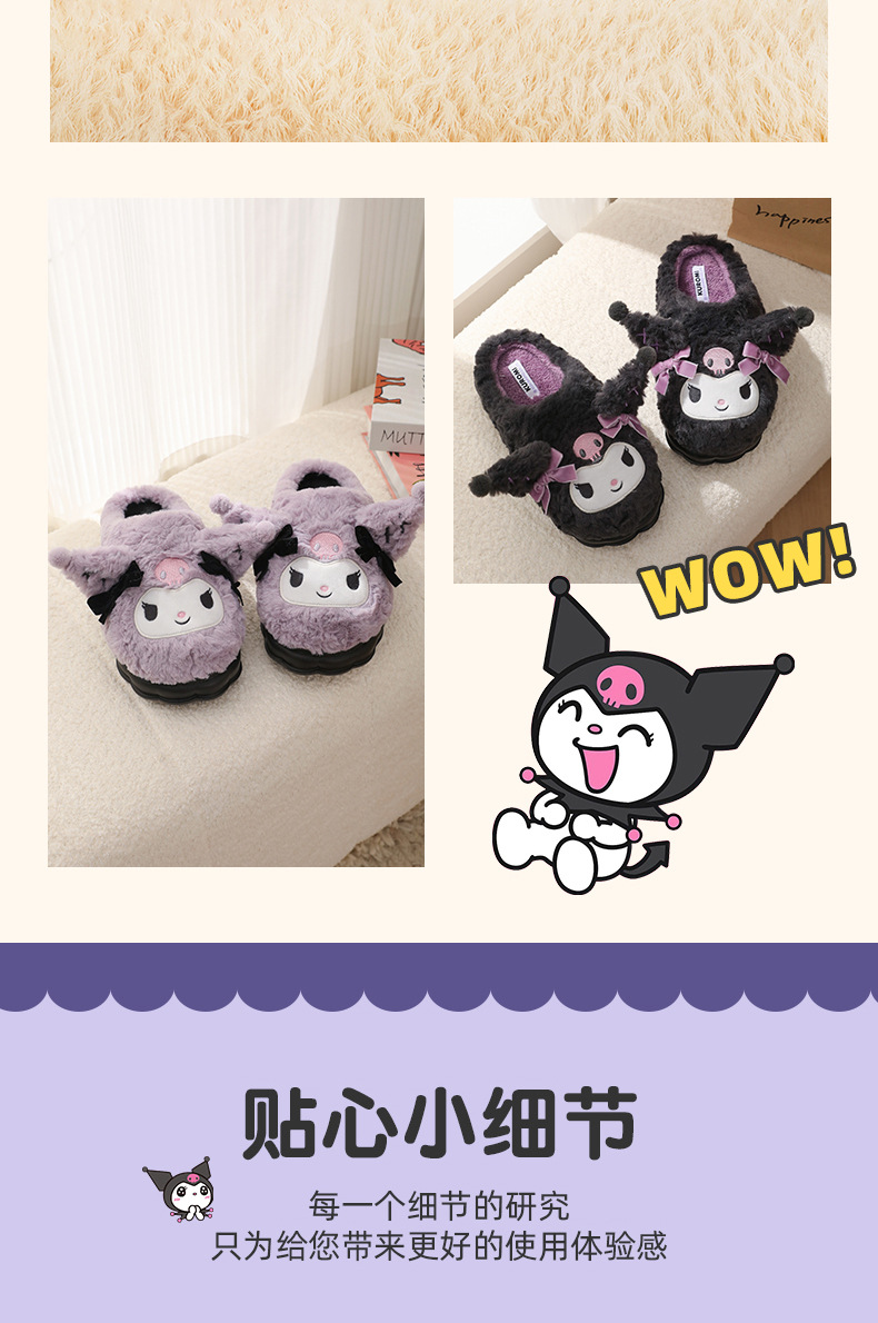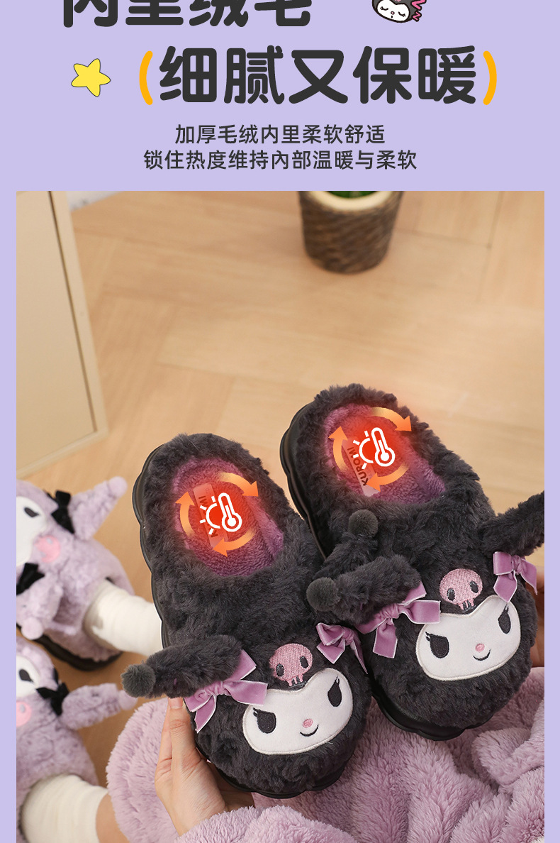 Тапочки Nanbo Wan Kuromi из хлопка для женщин, осенне-зимние домашние милые мультяшные тапочки Sanrio для родителей и детей, пушистые закрытые тапочки