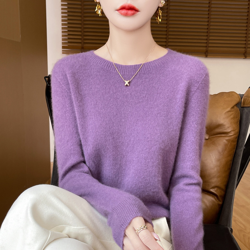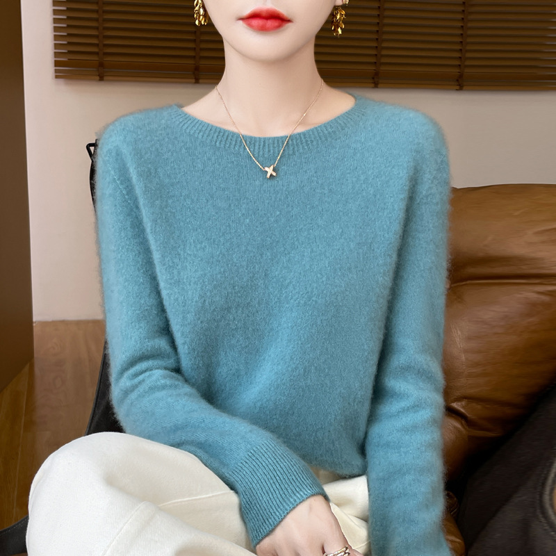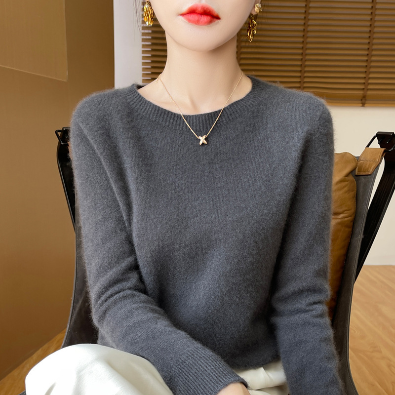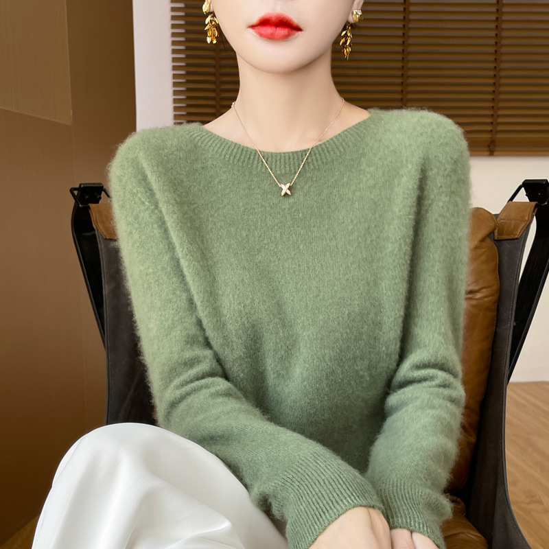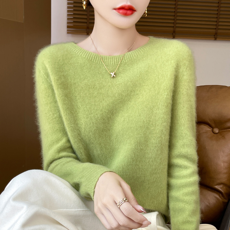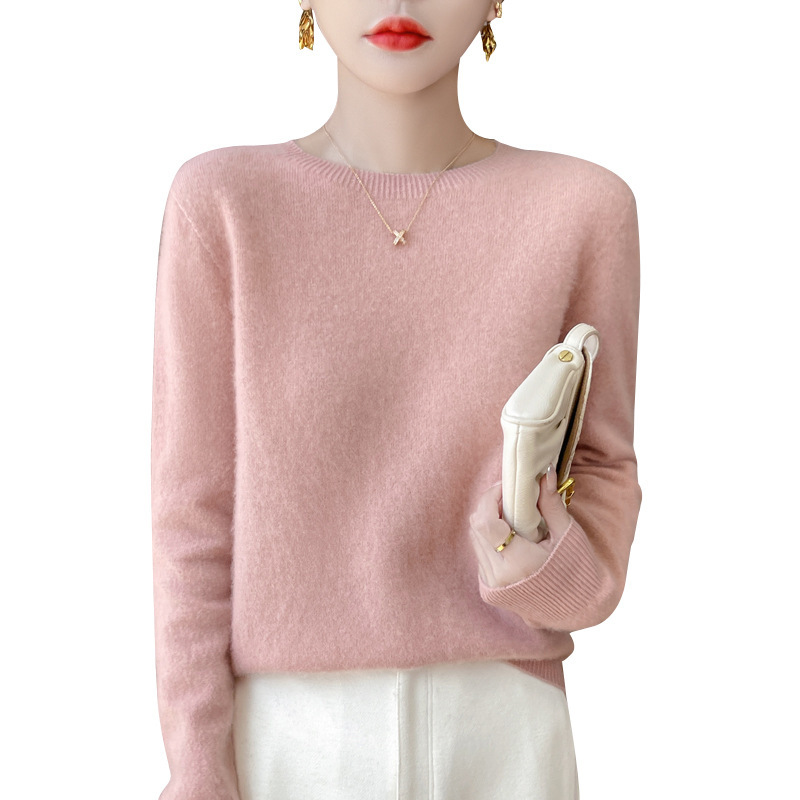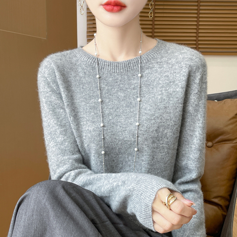 Сезон распродаж: женская одежда 2025, новинка ранней осени, свитер из мягкой чистой шерсти цвета крем, с круглым вырезом, трикотаж