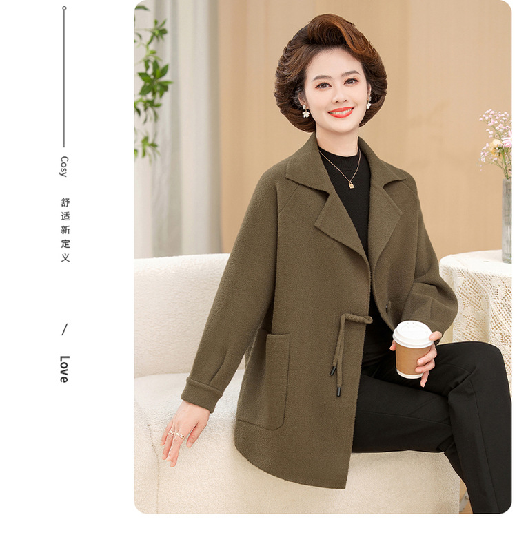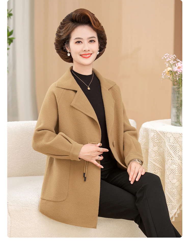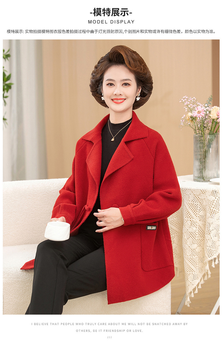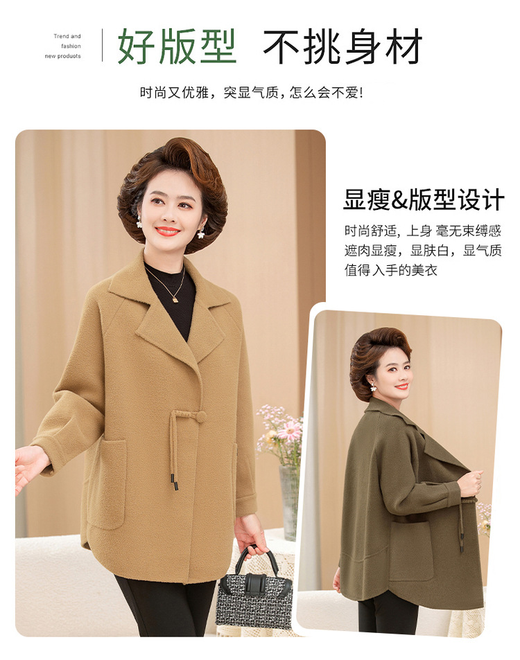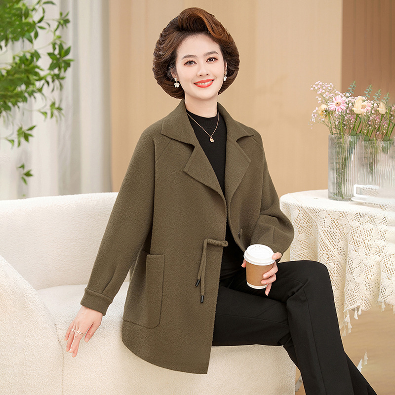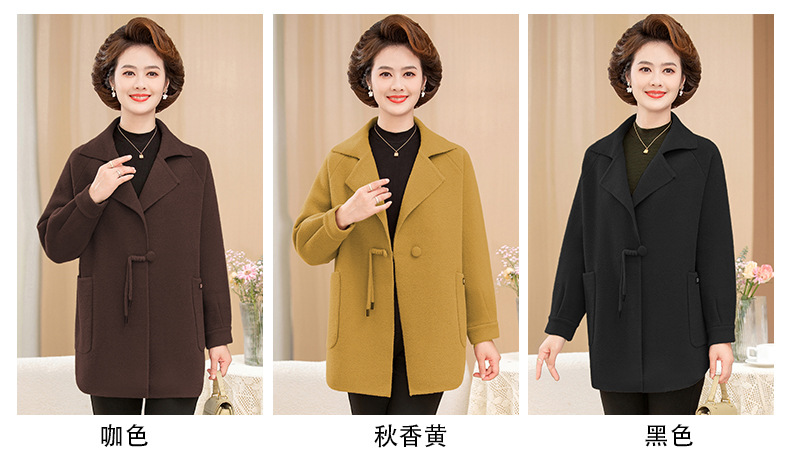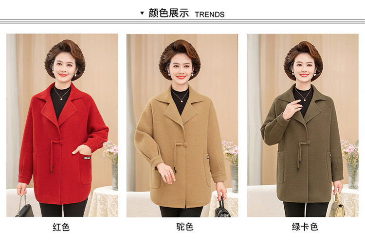 Мама осенняя двухсторонняя шерстяная куртка плюс размер 2024 новый костюм воротник средняя и пожилая женщина осень-зима модное шерстяное пальто