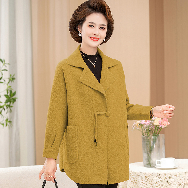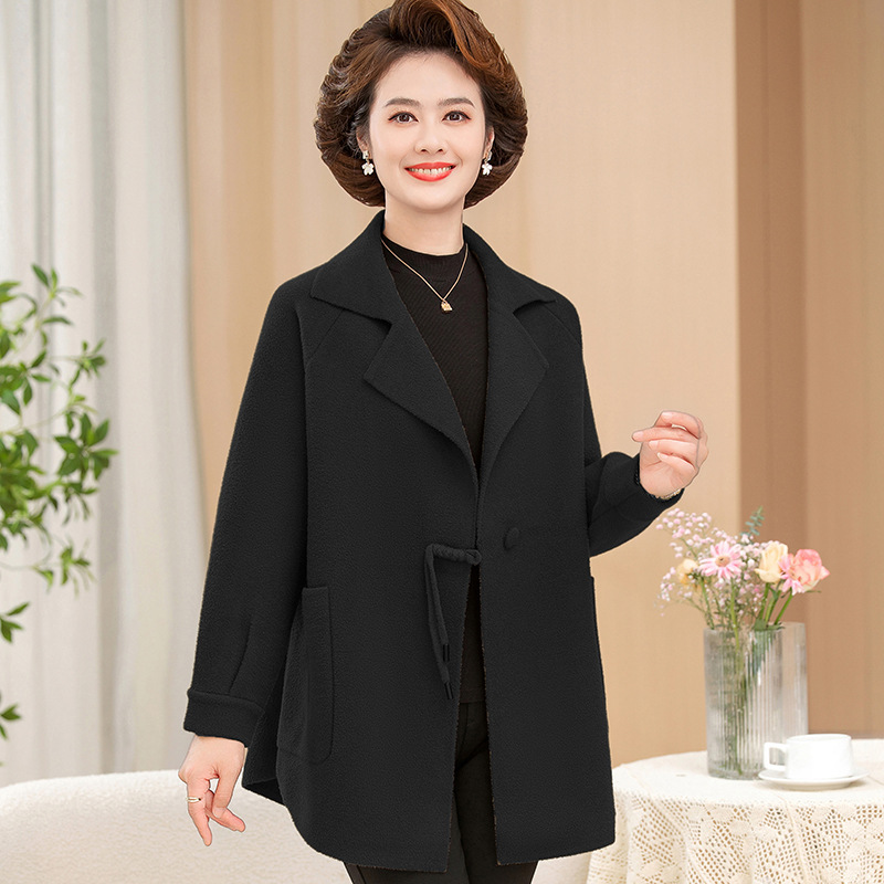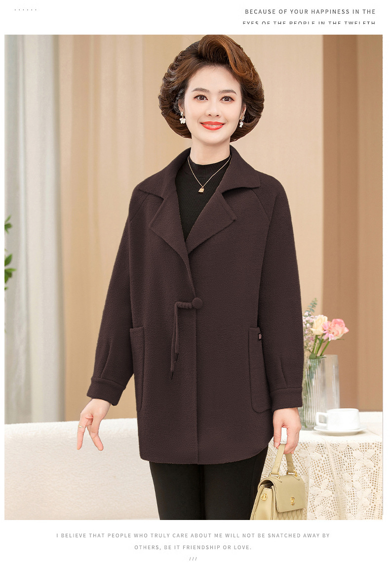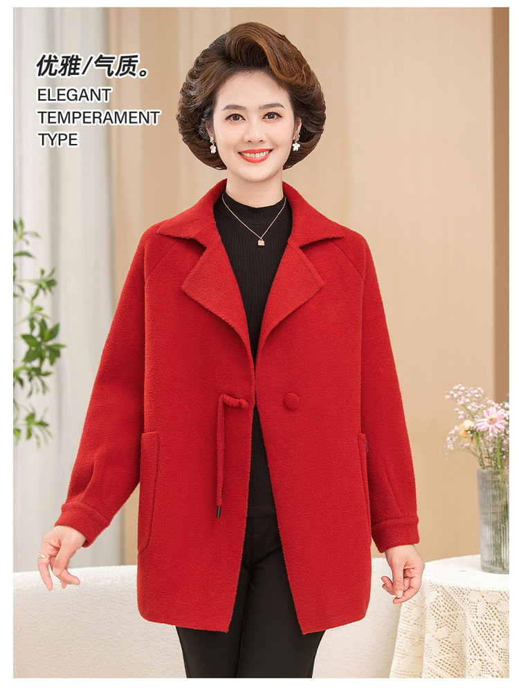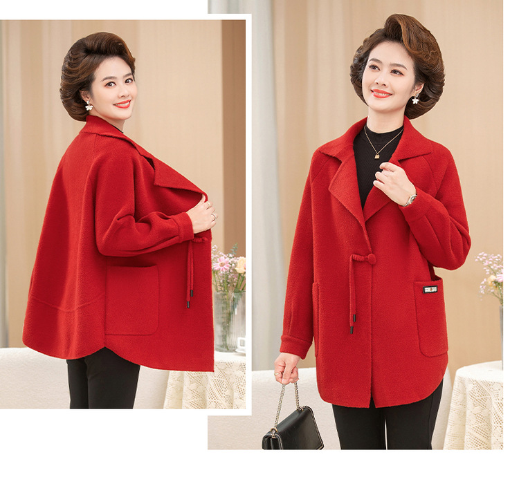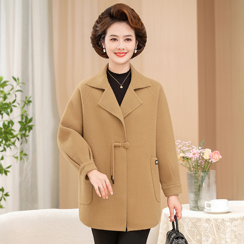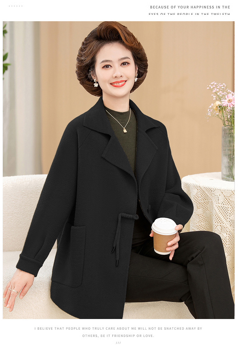 Мама осенняя двухсторонняя шерстяная куртка плюс размер 2024 новый костюм воротник средняя и пожилая женщина осень-зима модное шерстяное пальто